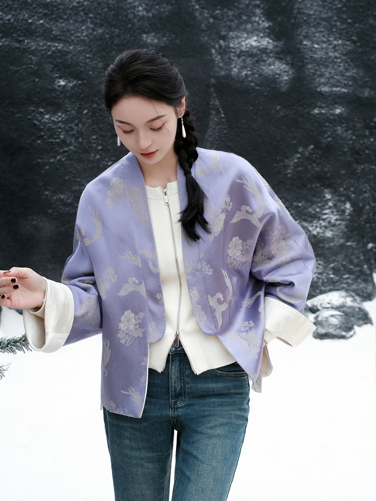 盛唐牡丹| 珍珠白真丝竹子纹偏襟上衣