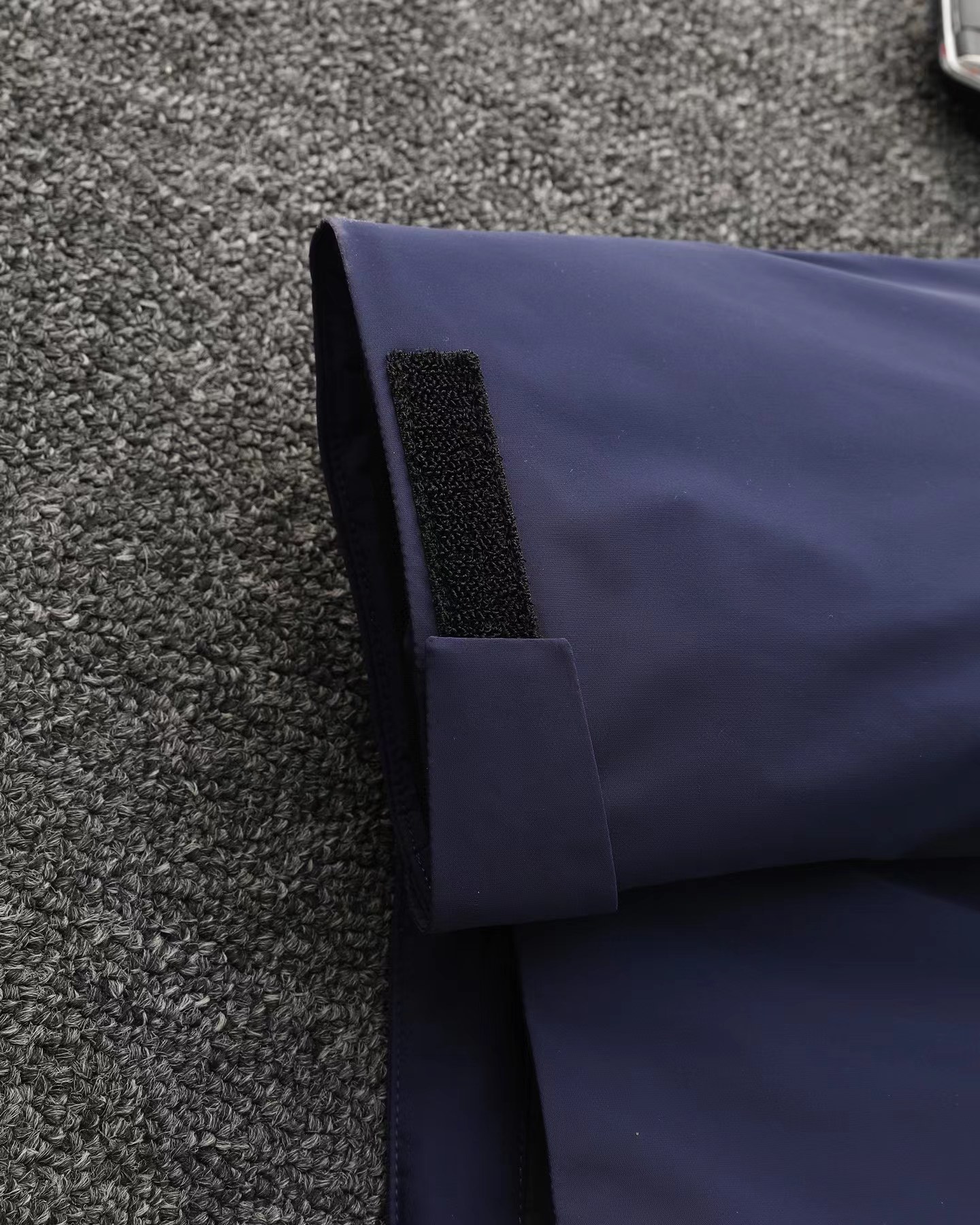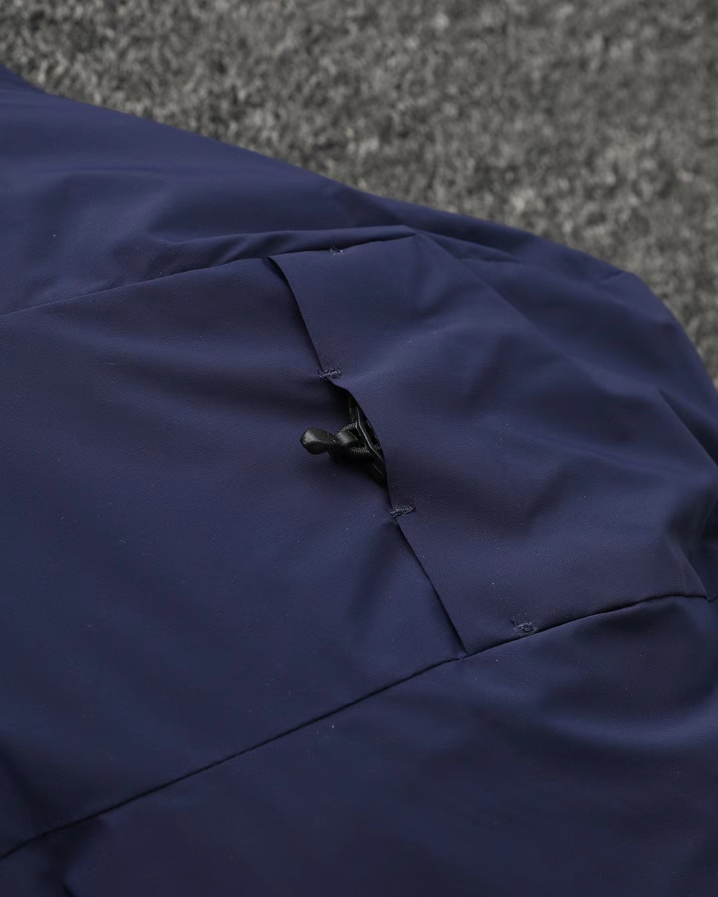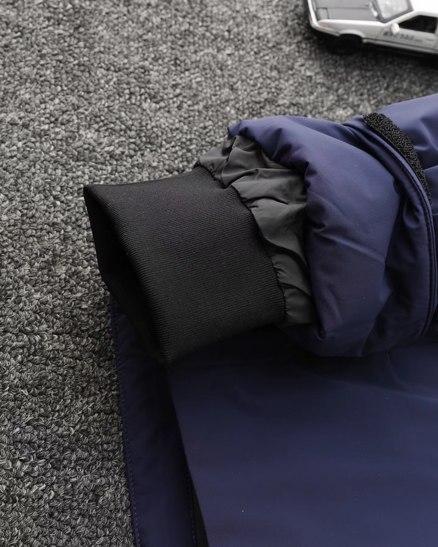 连帽+拉链全封闭设计,袖口有调节扣,版型是宽松休闲款,不挑身材,灰/藏青两个颜色都很百搭耐脏。防水防风面料+ 90%鹅绒子含量 饱满填充,面料防泼水,透气的性能!羽绒服先航线后充绒,里料做防静电处理,面料做防绒处理,让身体核 心部位保持温暖!保暖抗造!,其防水透气指数较高,通常能超过10000+,可有效阻挡雨水的侵入,即使在恶劣的雨雪天气下,也能保持身体的干爽魔术贴袖口可以有效防风保暖,可调节帽和下摆内置绳扣,能够自如收放,更好地抵御寒风的侵袭,提全方位的保护。万道袖设计采用专业的立体剪裁,更加贴合手机活动曲线,穿着时没有拘束感,便于进行各种户外活动。宽松版型不挑人,都是低调耐看的颜色,日常/轻户外都能穿~
