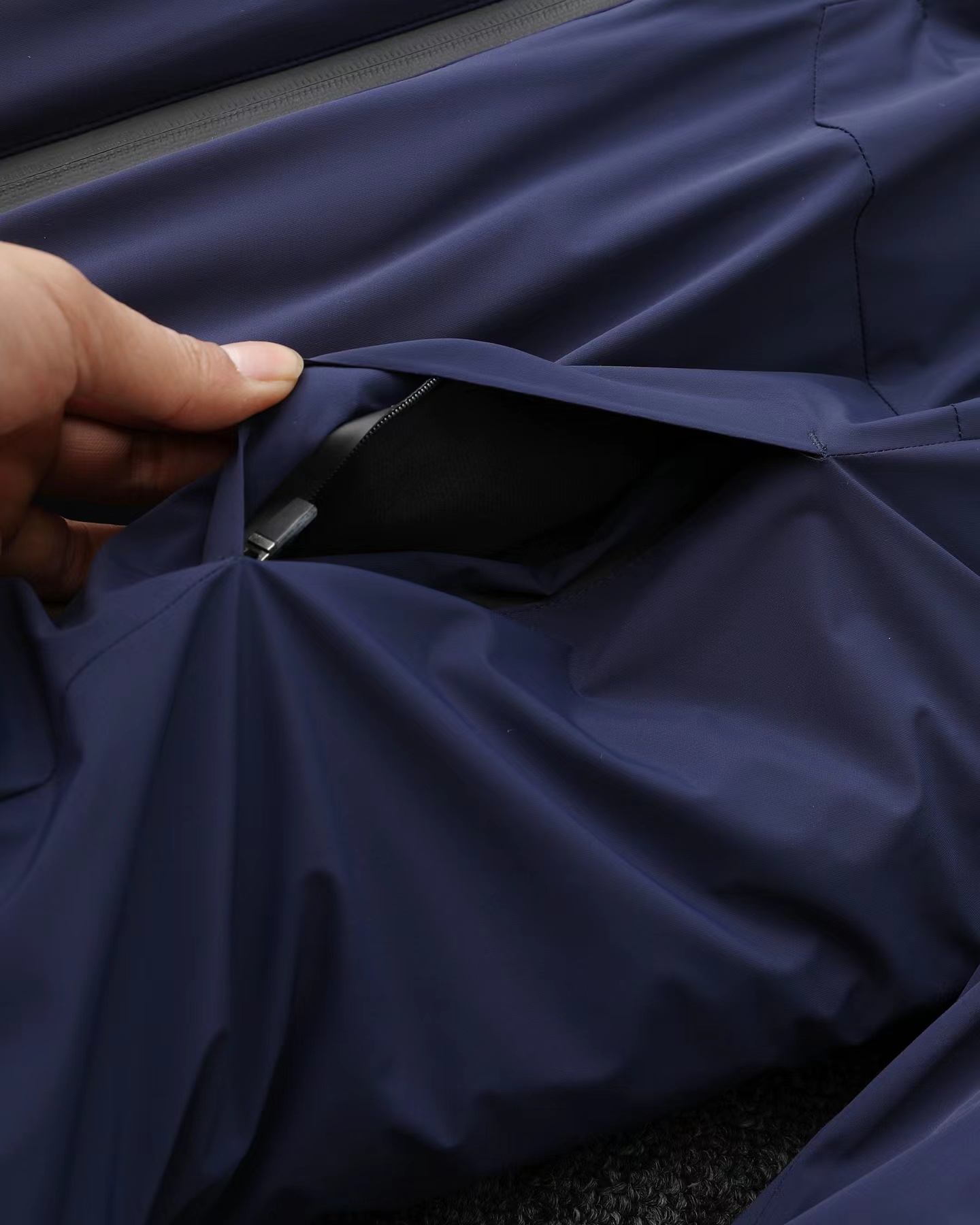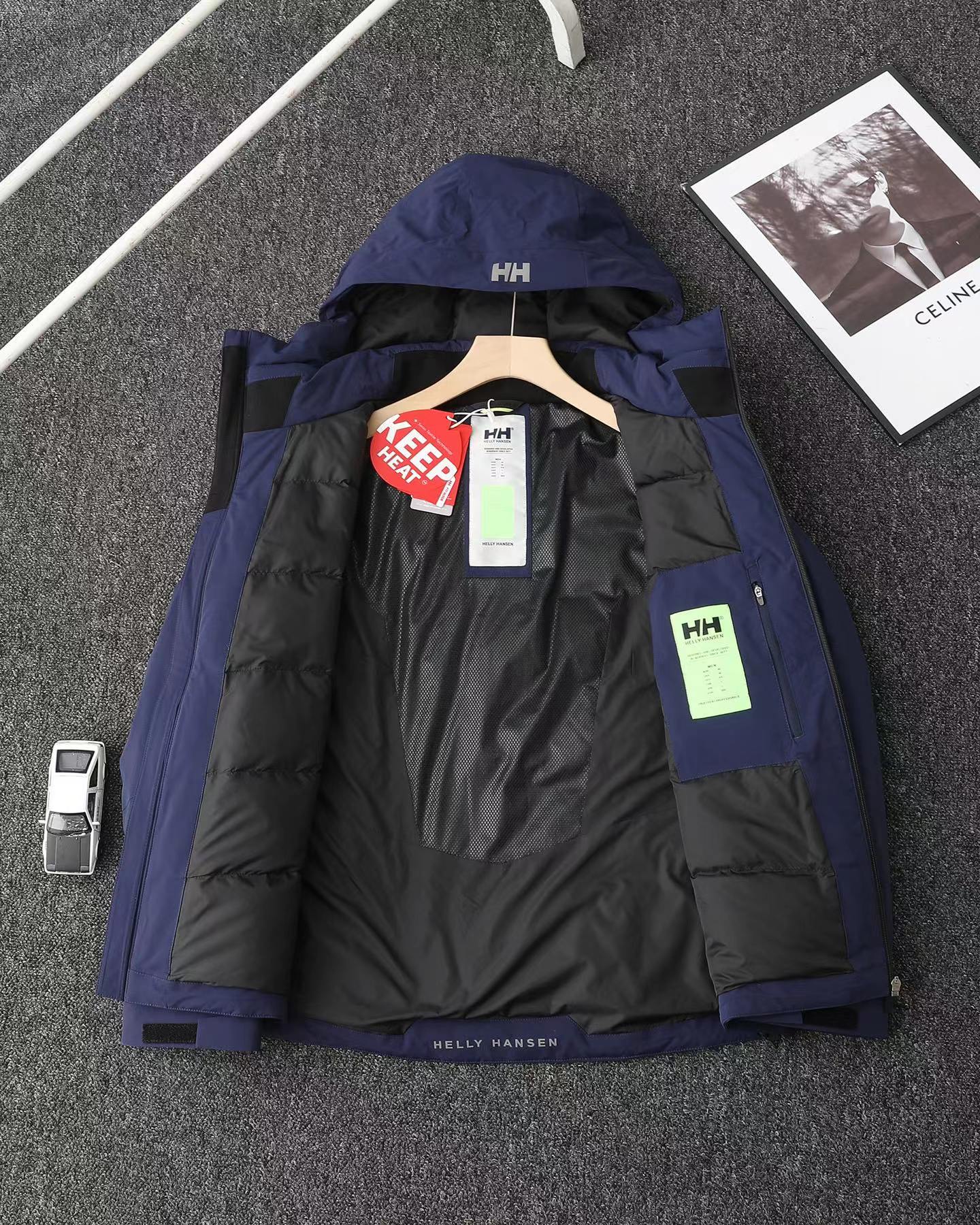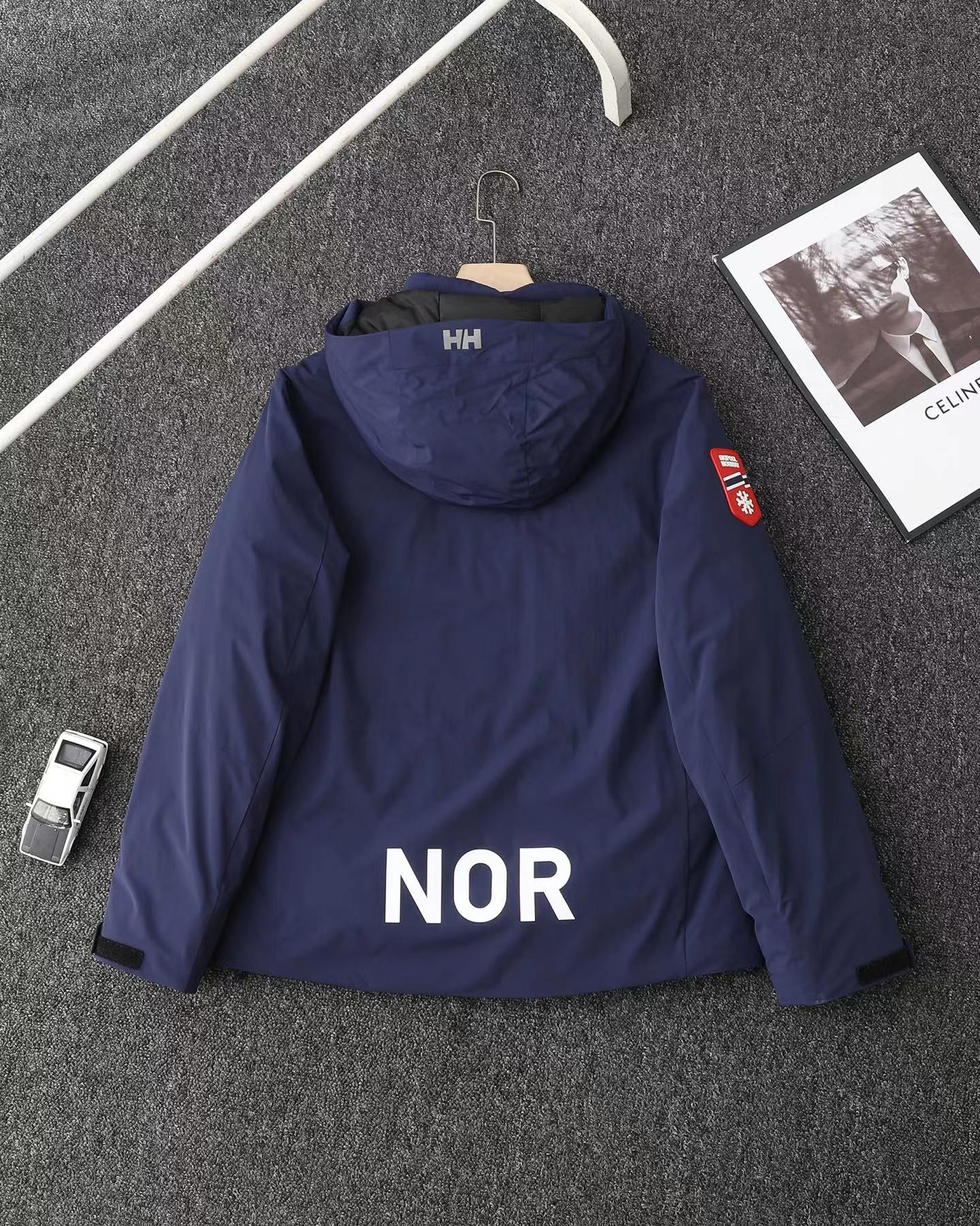 连帽+拉链全封闭设计,袖口有调节扣,版型是宽松休闲款,不挑身材,灰/藏青两个颜色都很百搭耐脏。防水防风面料+ 90%鹅绒子含量 饱满填充,面料防泼水,透气的性能!羽绒服先航线后充绒,里料做防静电处理,面料做防绒处理,让身体核 心部位保持温暖!保暖抗造!,其防水透气指数较高,通常能超过10000+,可有效阻挡雨水的侵入,即使在恶劣的雨雪天气下,也能保持身体的干爽魔术贴袖口可以有效防风保暖,可调节帽和下摆内置绳扣,能够自如收放,更好地抵御寒风的侵袭,提全方位的保护。万道袖设计采用专业的立体剪裁,更加贴合手机活动曲线,穿着时没有拘束感,便于进行各种户外活动。宽松版型不挑人,都是低调耐看的颜色,日常/轻户外都能穿~