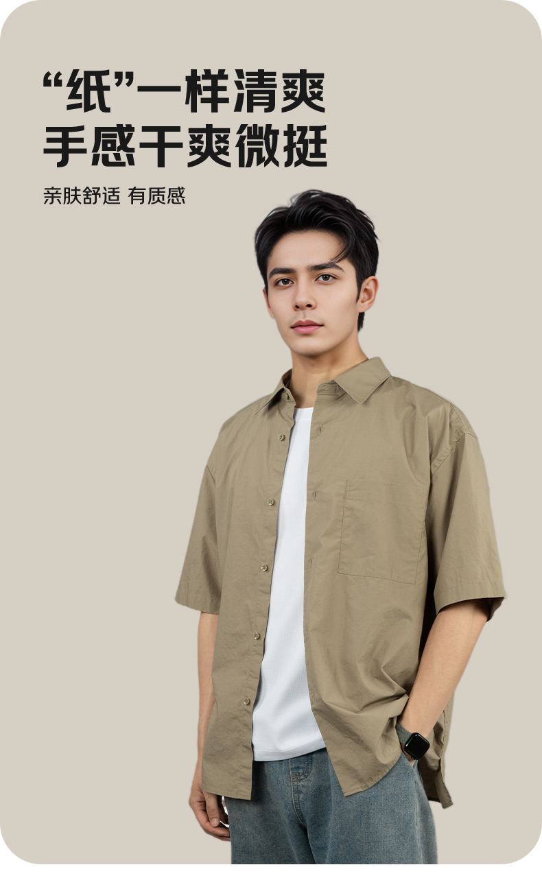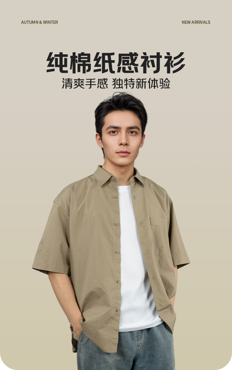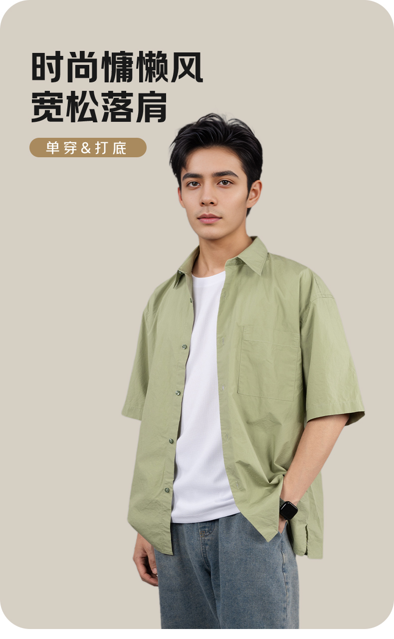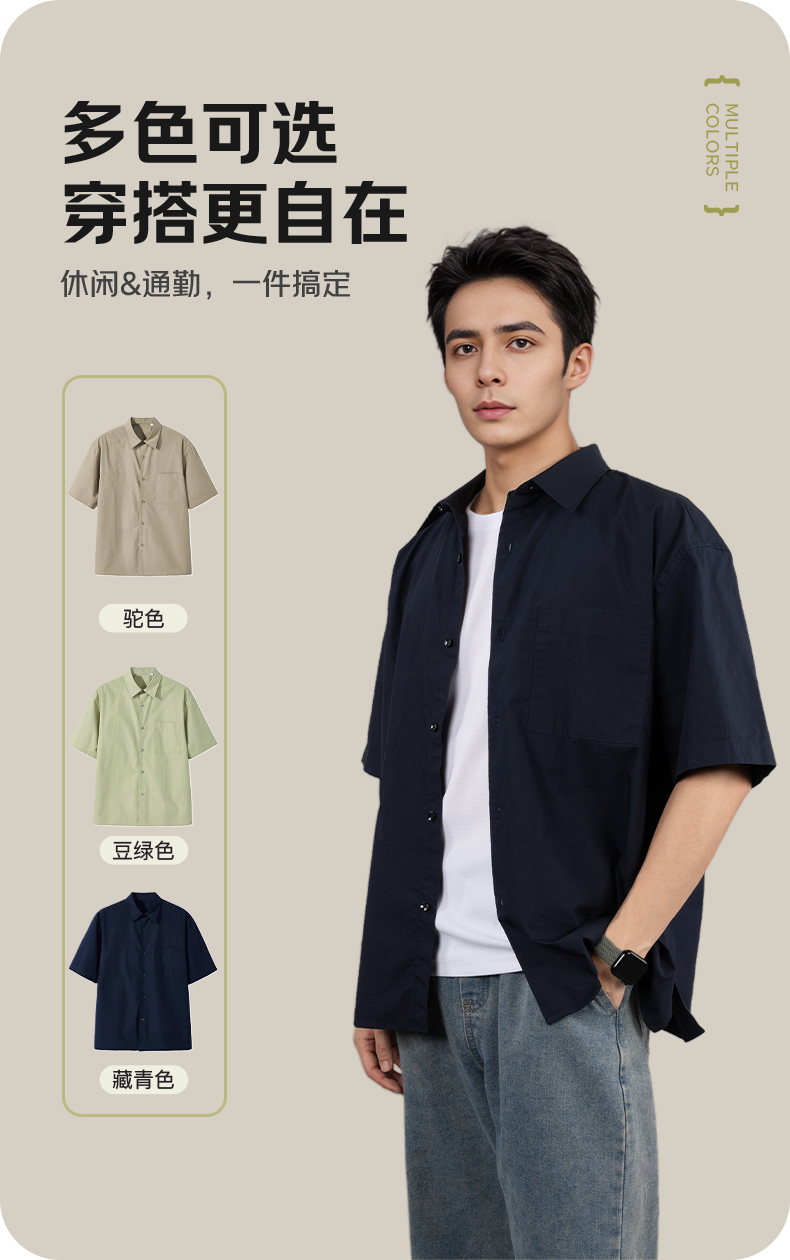 【100%纯棉】占姆士男女同款2025夏季新品短袖衬衫夏装大码宽松休闲 口袋款衬衣
