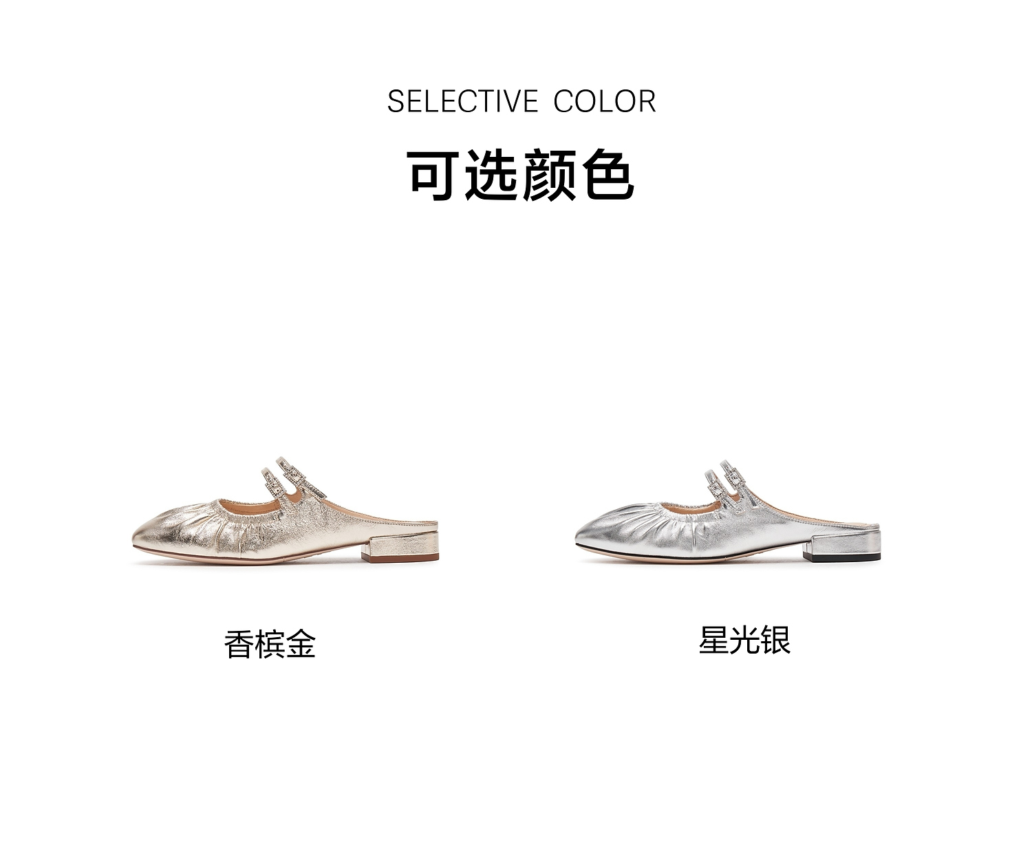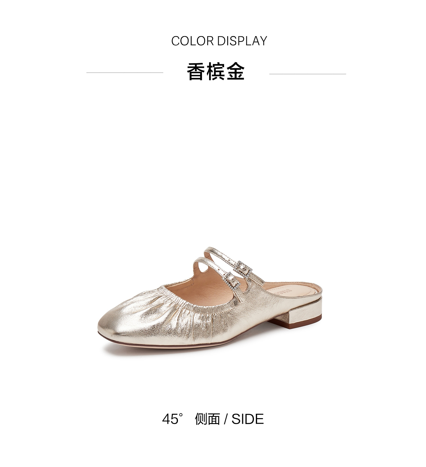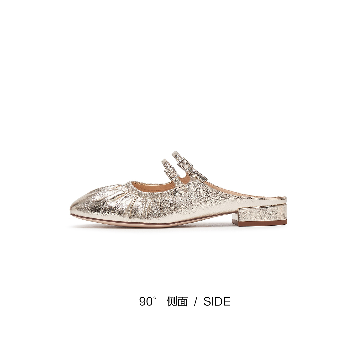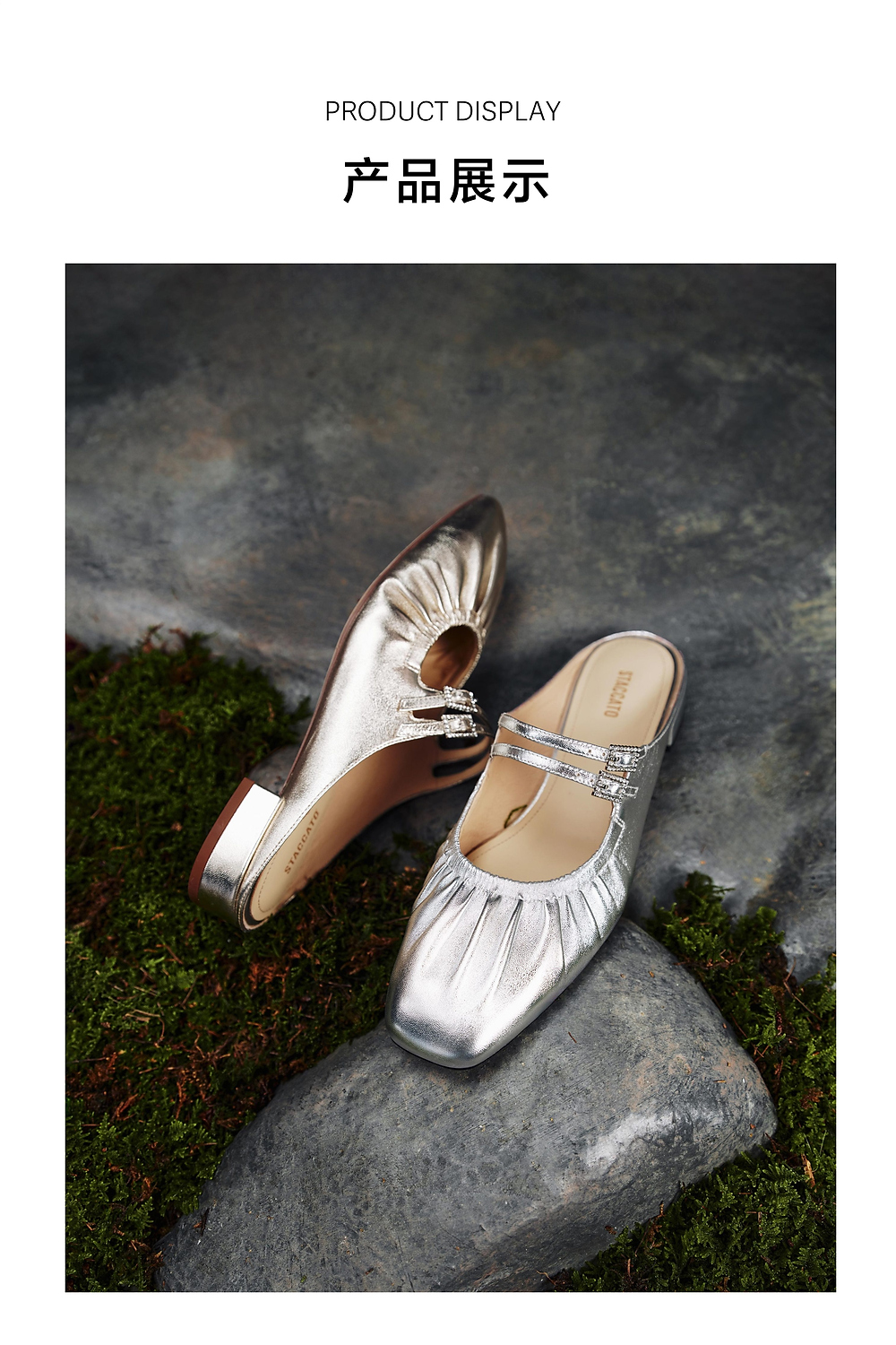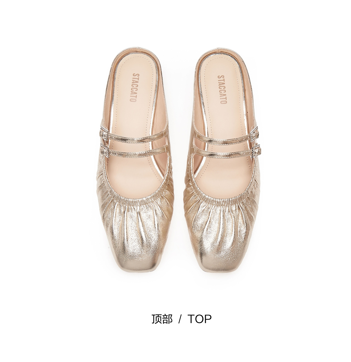 【云粉节】【思加图】BF思加图2025春季新款褶金鞋复古穆勒拖鞋EUE18, 吊牌价1290