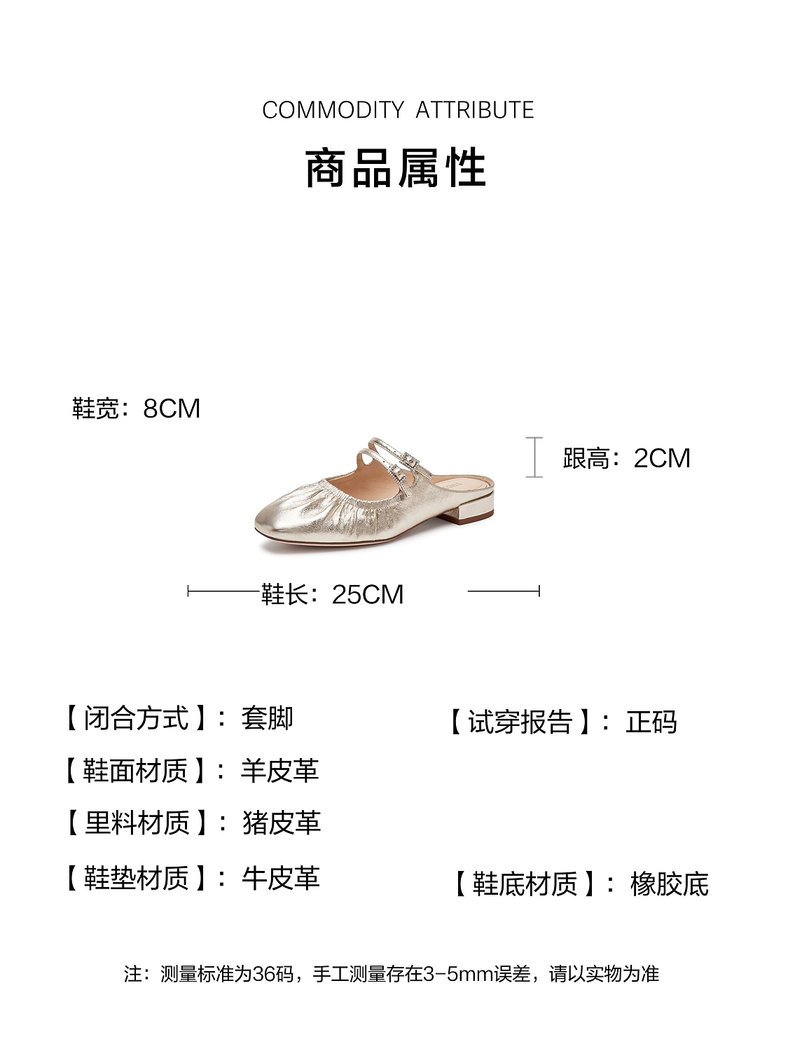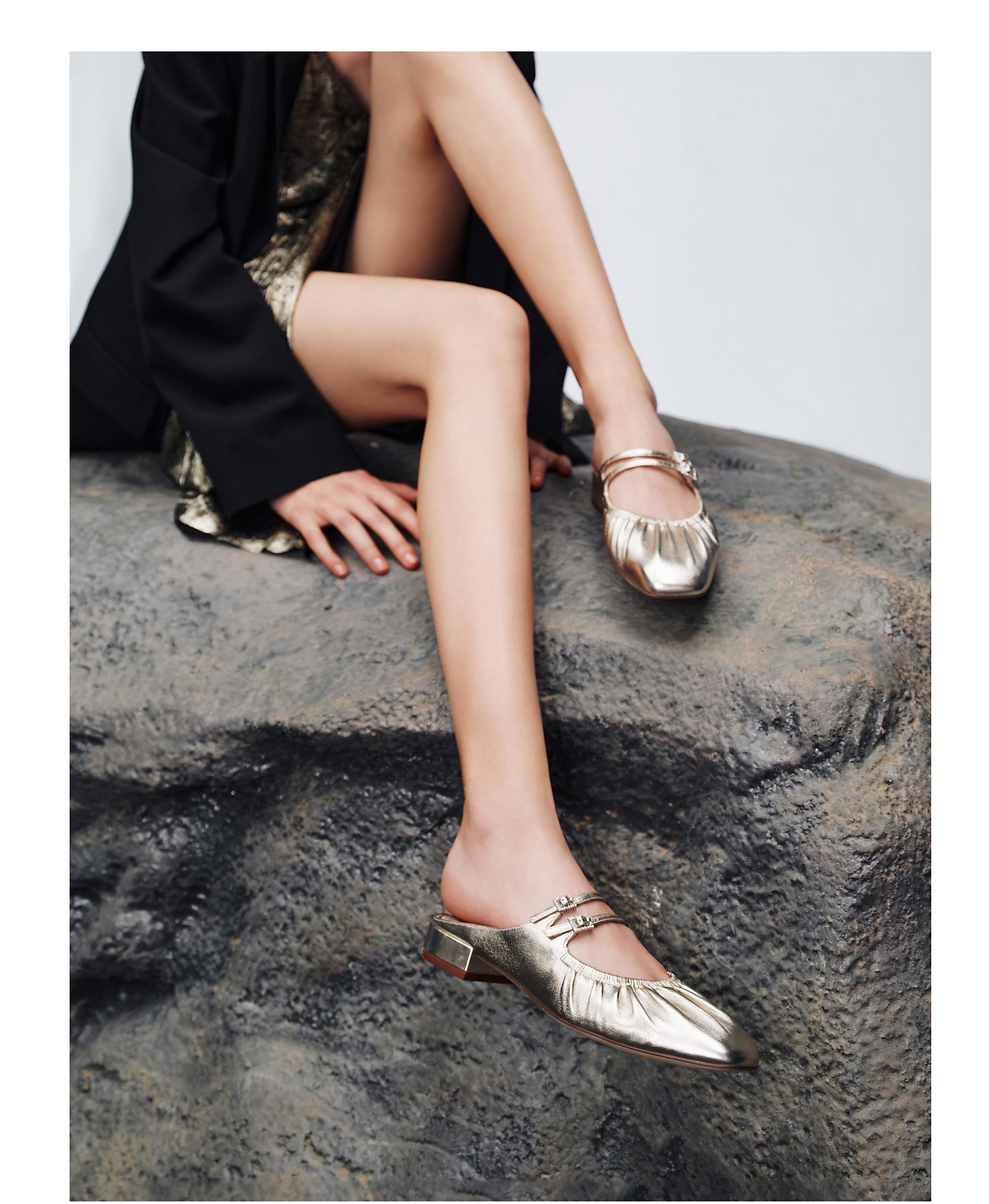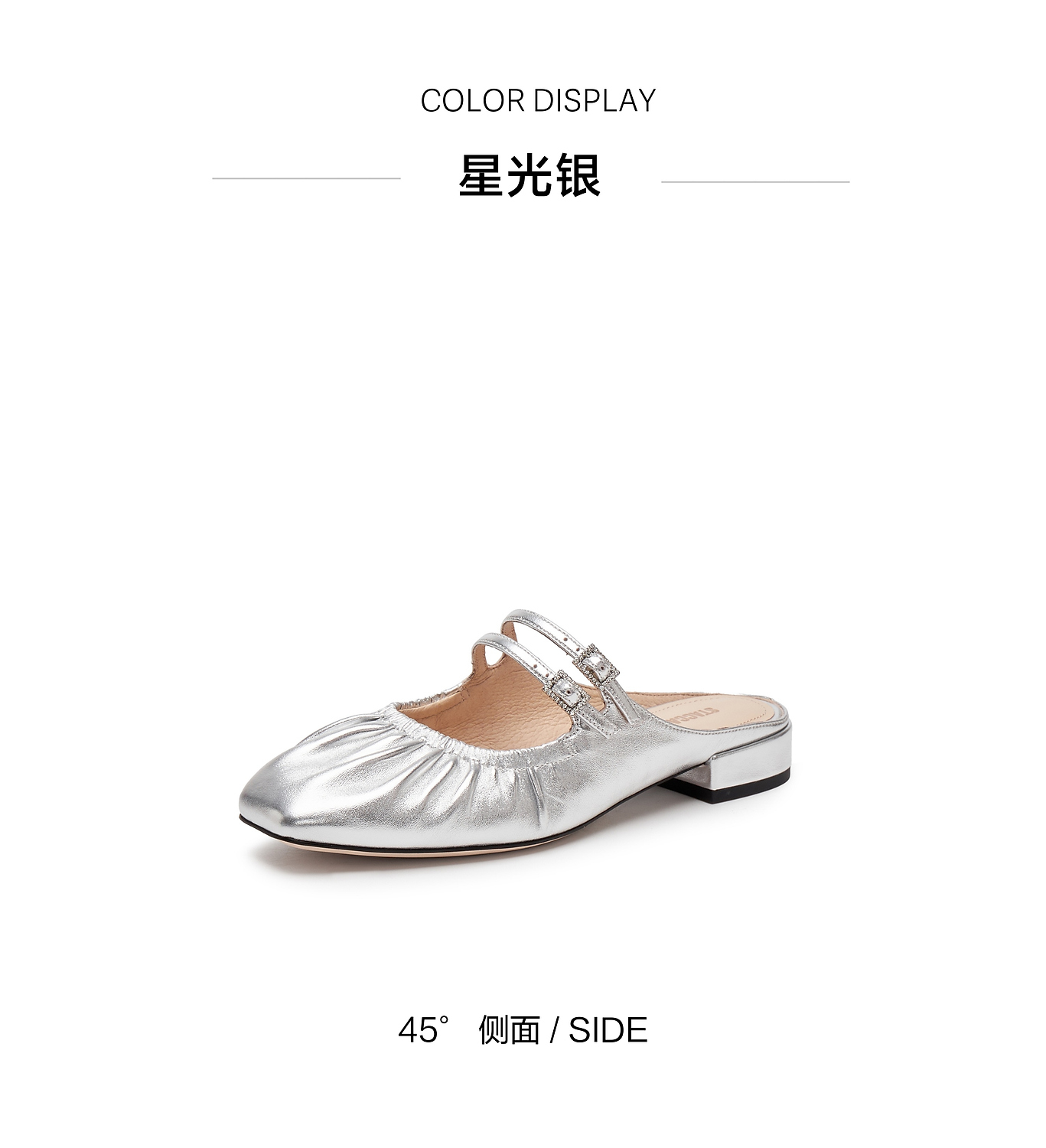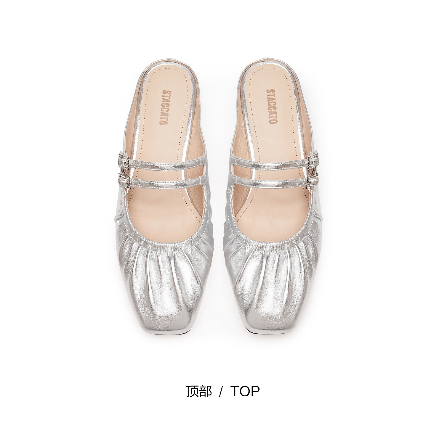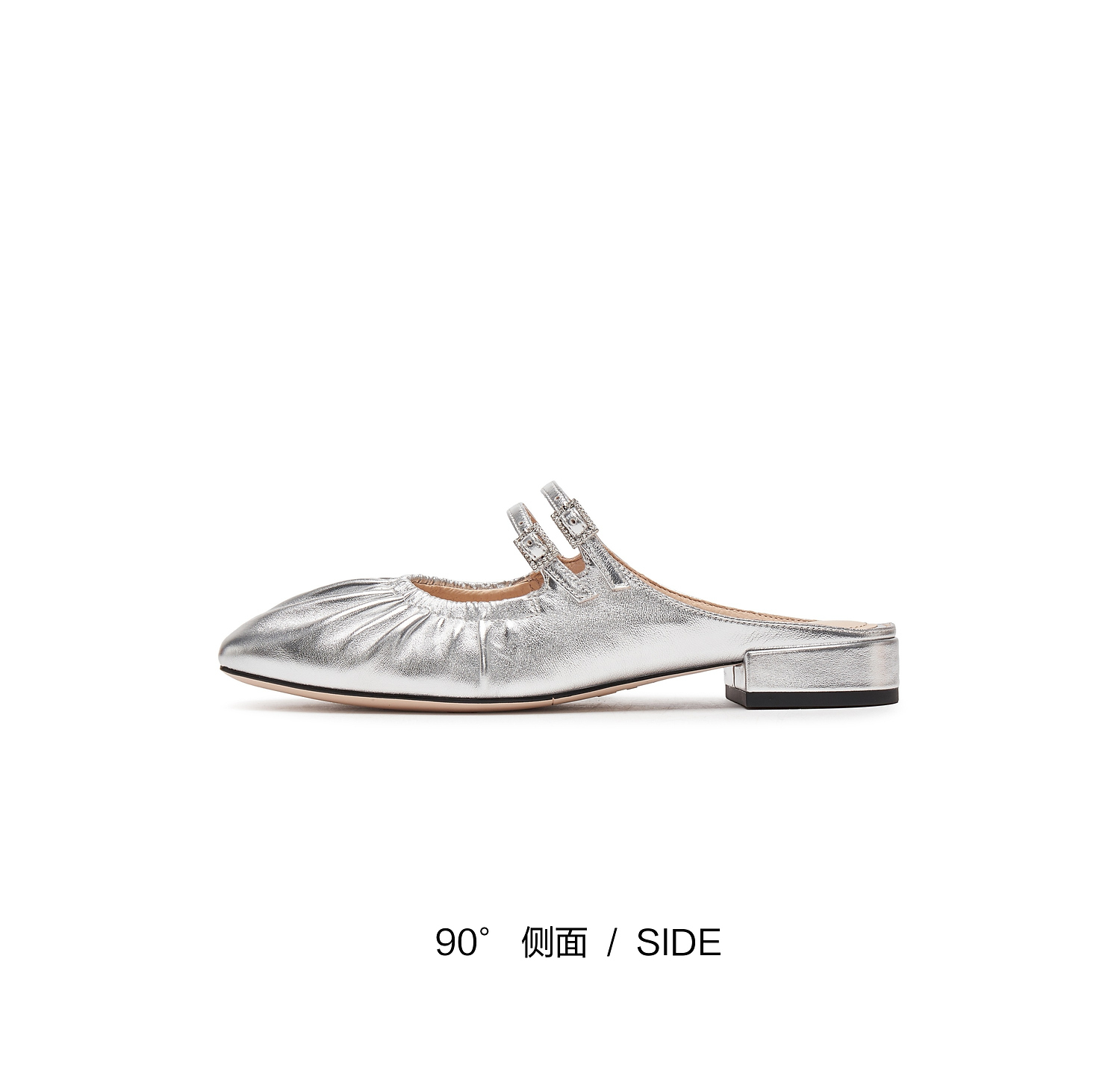 【云粉节】【思加图】BF思加图2025春季新款褶金鞋复古穆勒拖鞋EUE18, 吊牌价1290