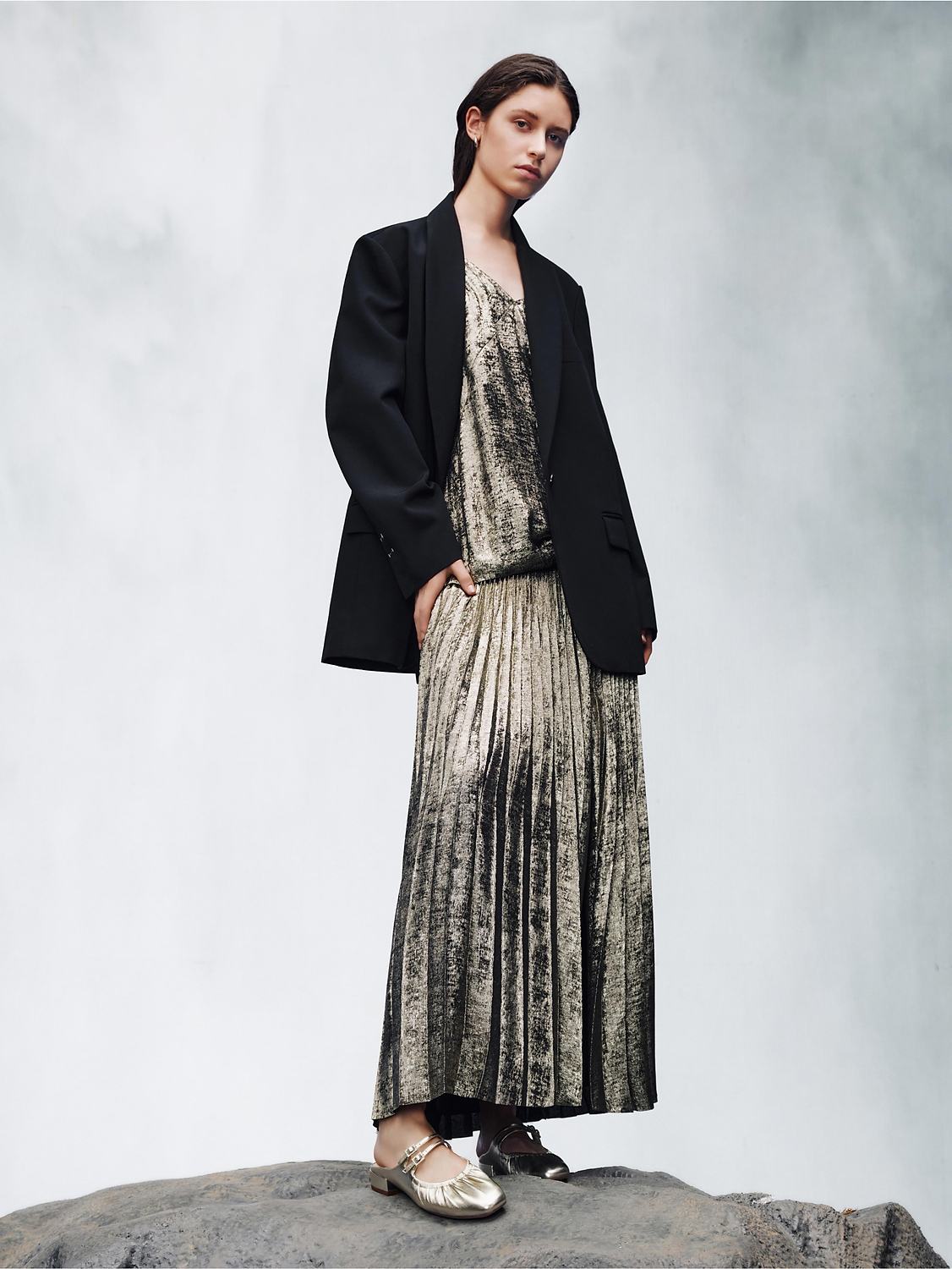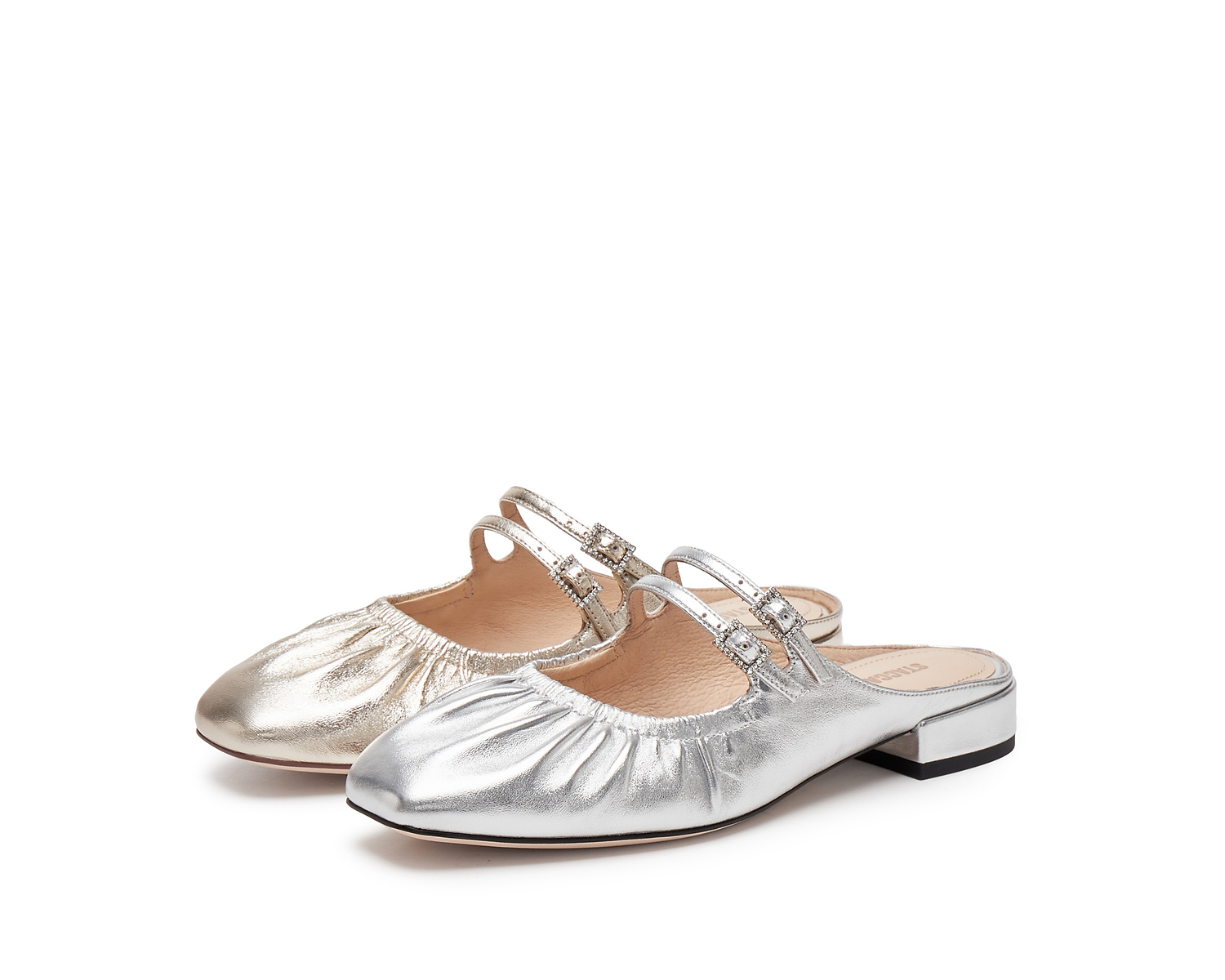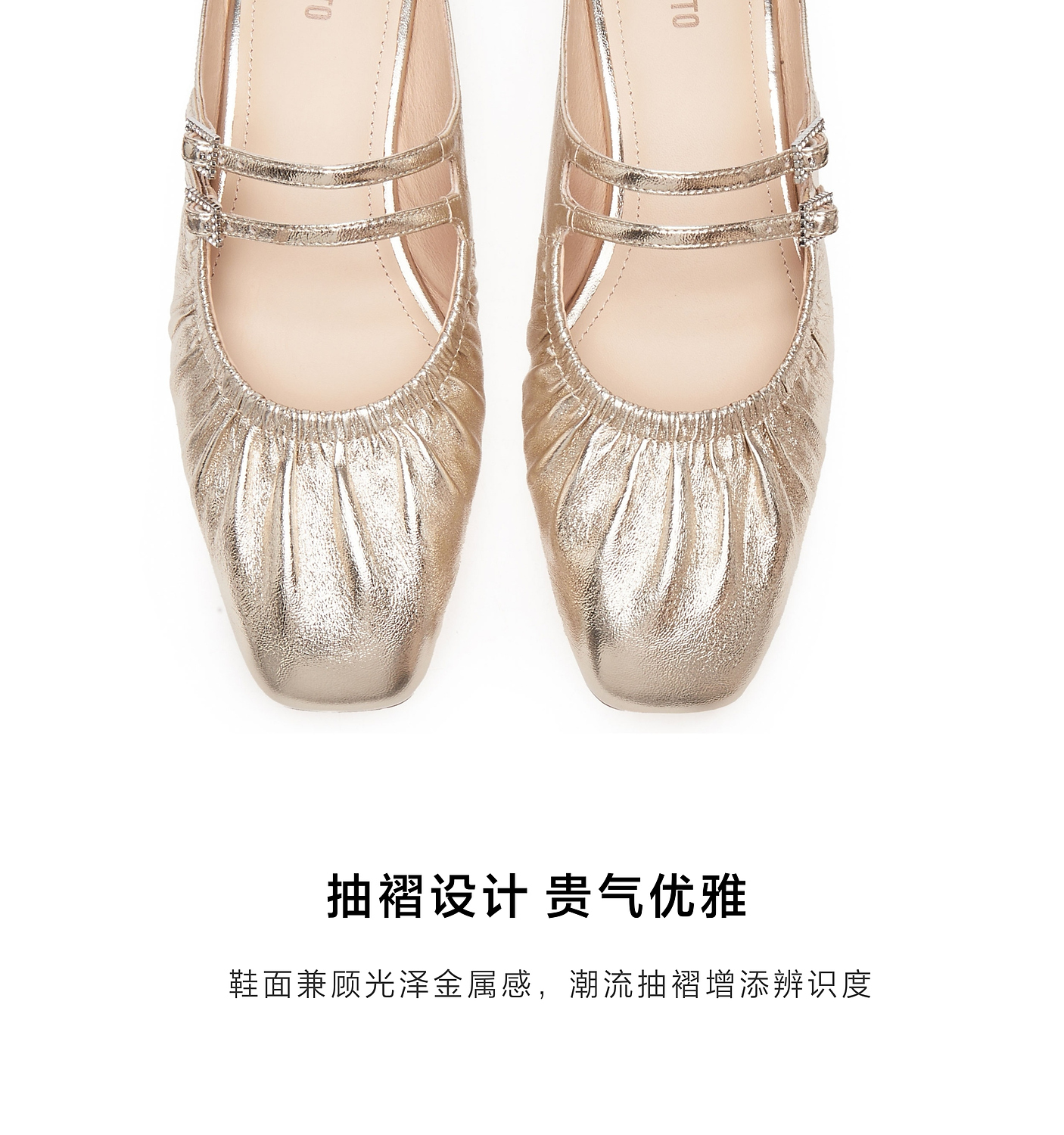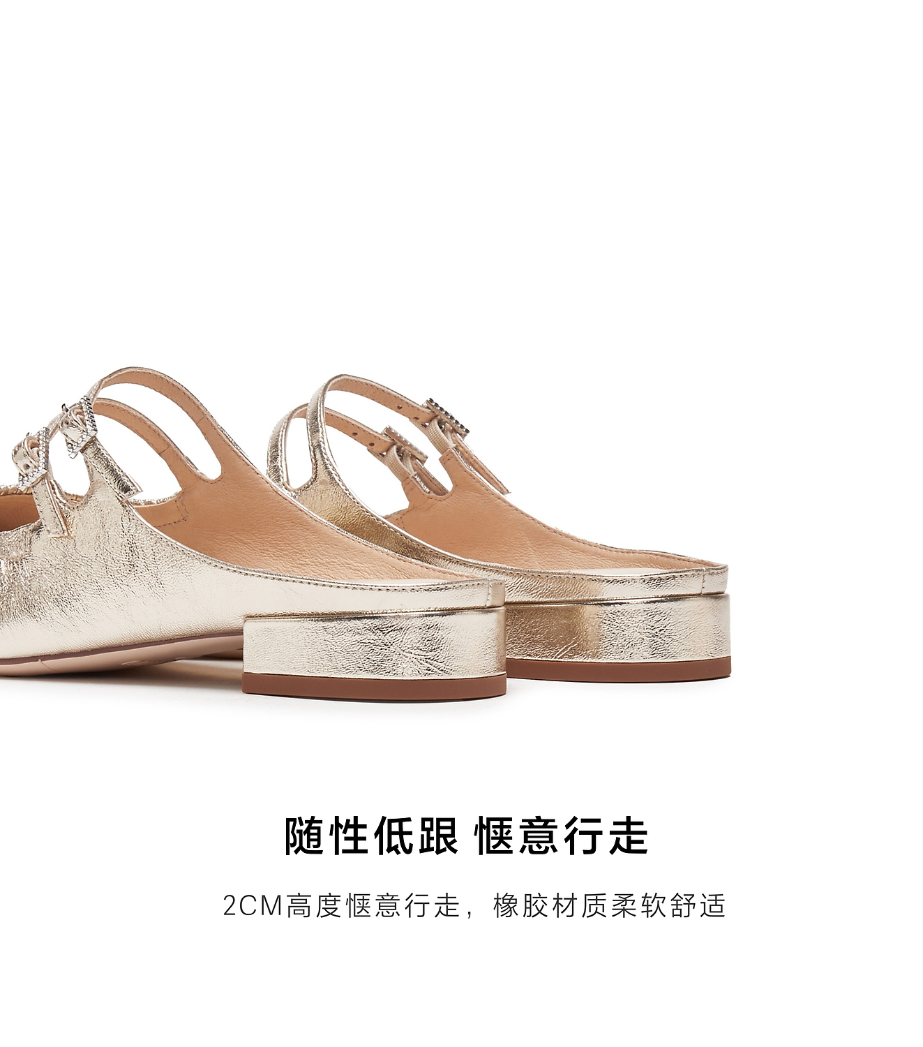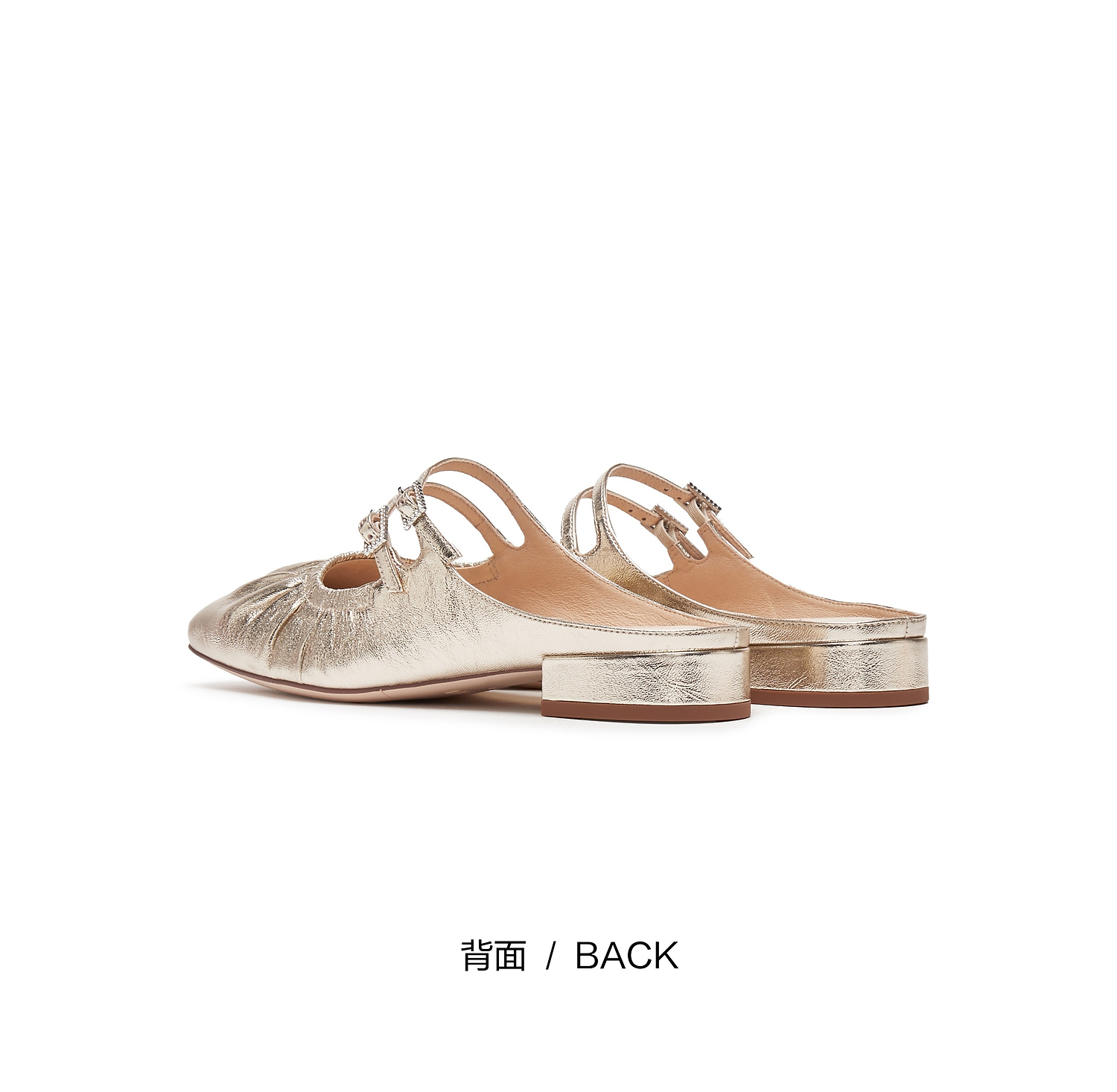 【云粉节】【思加图】BF思加图2025春季新款褶金鞋复古穆勒拖鞋EUE18, 吊牌价1290
