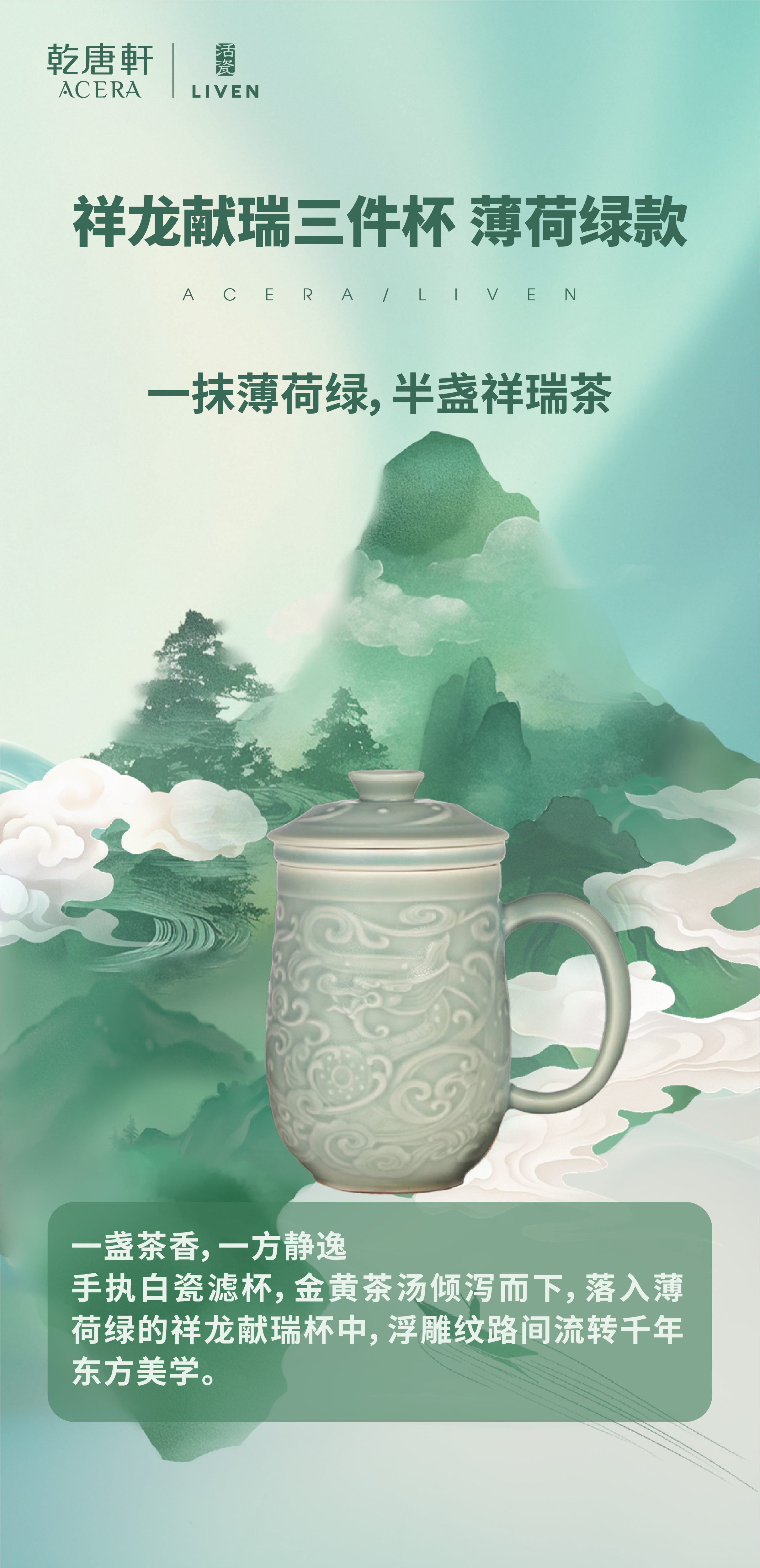 乾唐轩祥龙献瑞三件杯 薄荷绿款