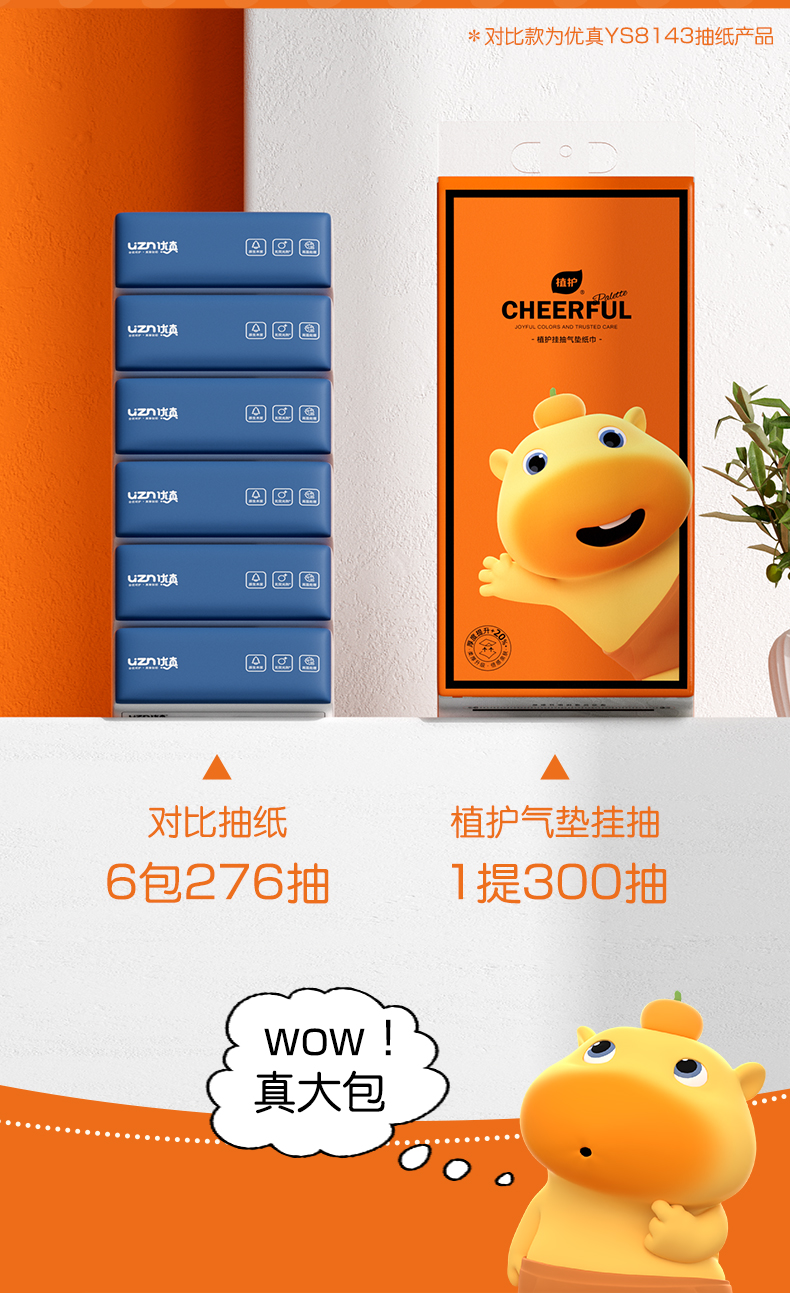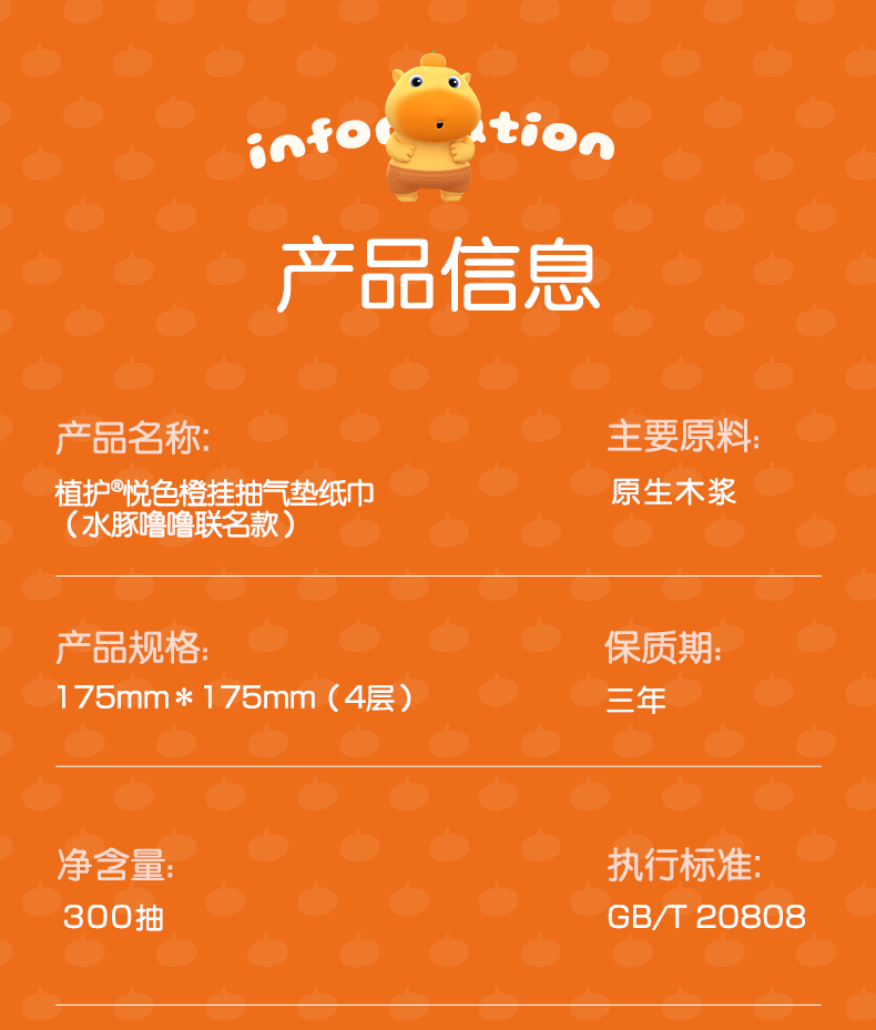 植护悦色橙悬挂式抽纸水豚噜噜挂抽大包整箱批家用卫生纸巾实惠装