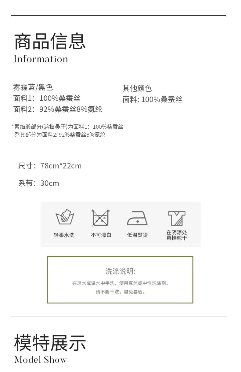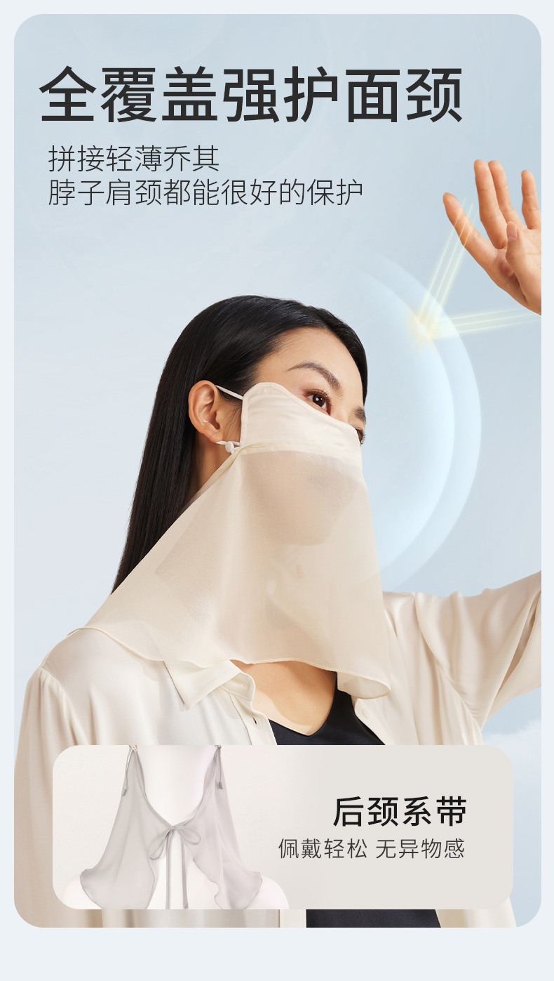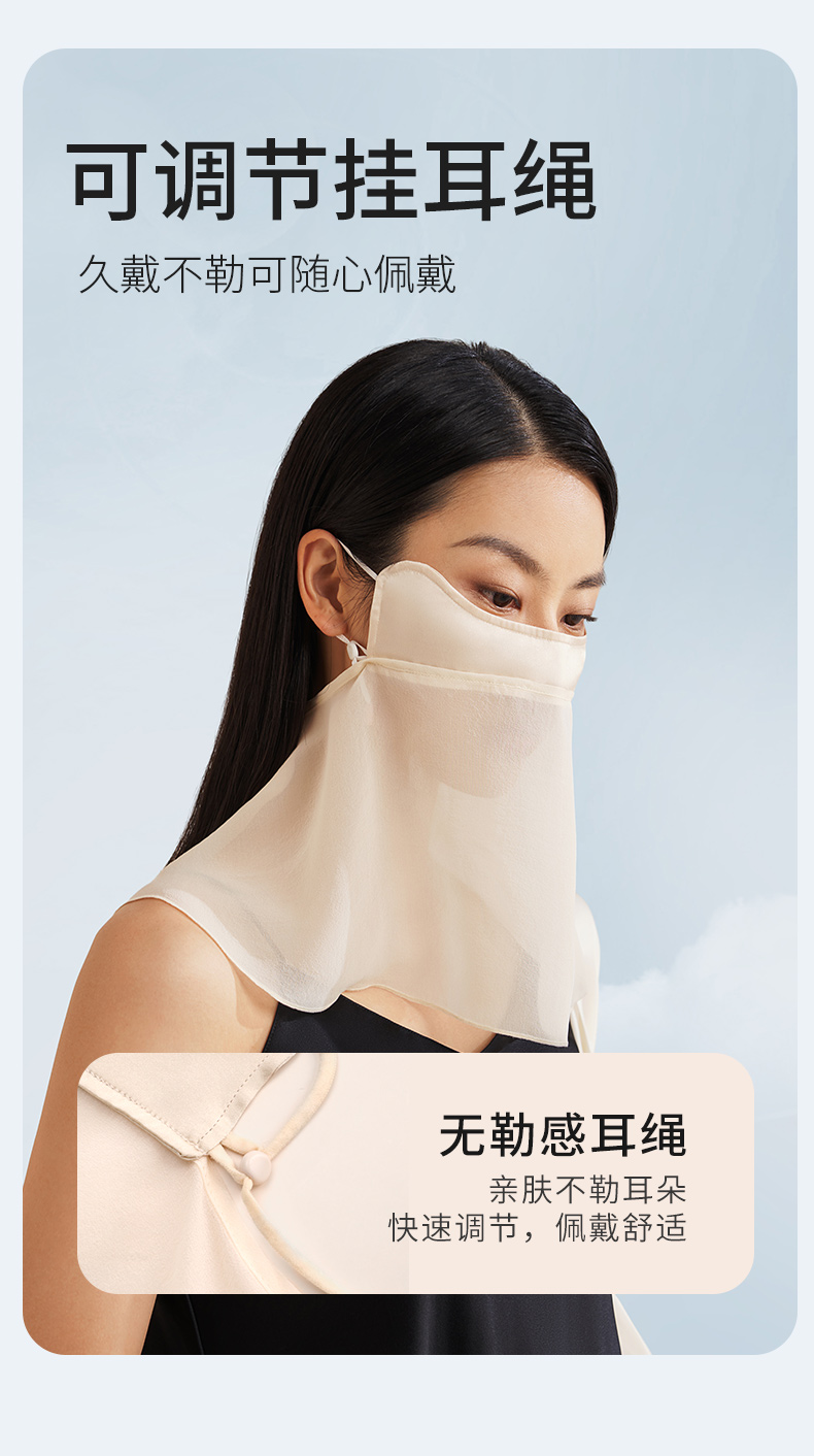 金三塔真丝面罩女100%桑蚕丝凉感丝滑透气面纱春夏新品 JXQ284