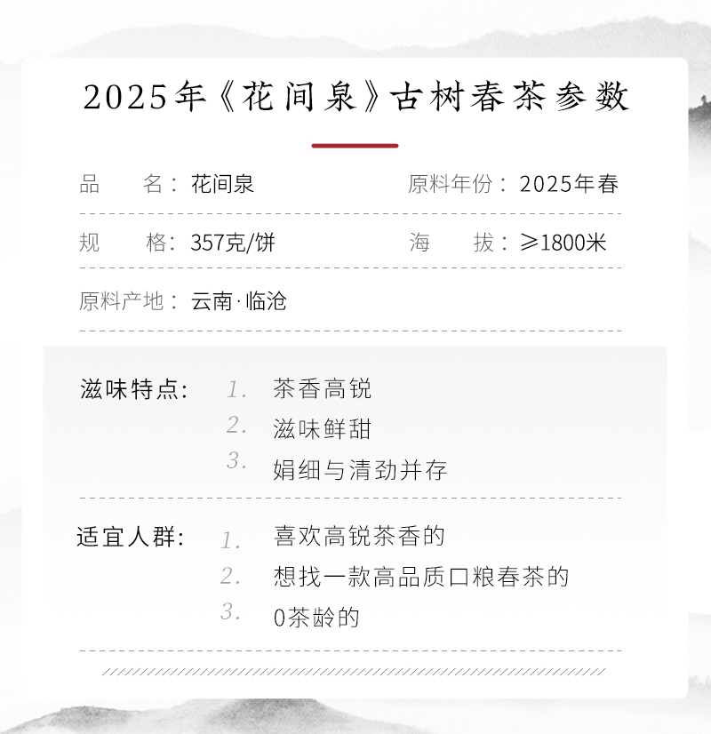 【买7送1】2025《花间泉》古树春茶 357克*1饼 生茶