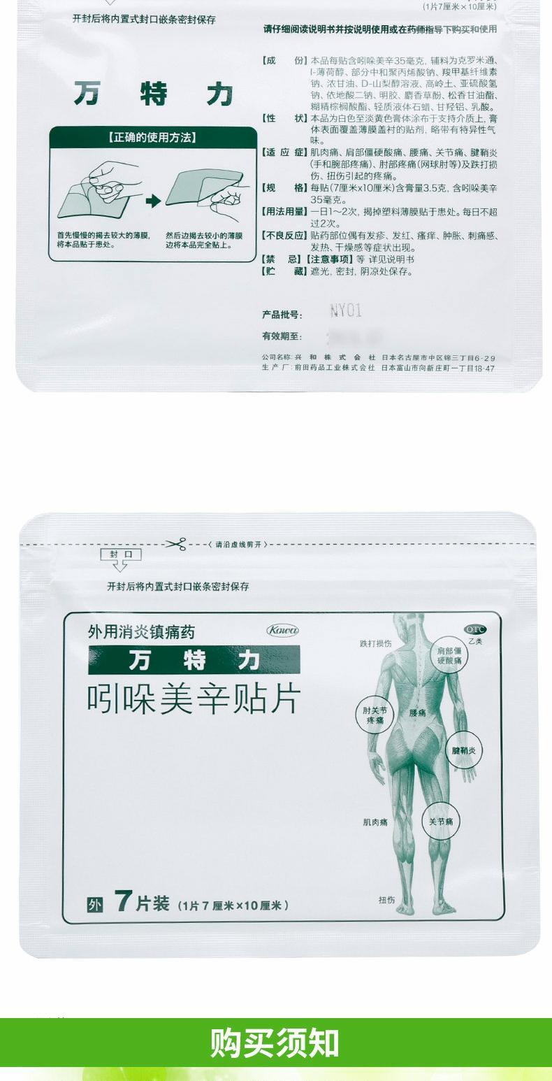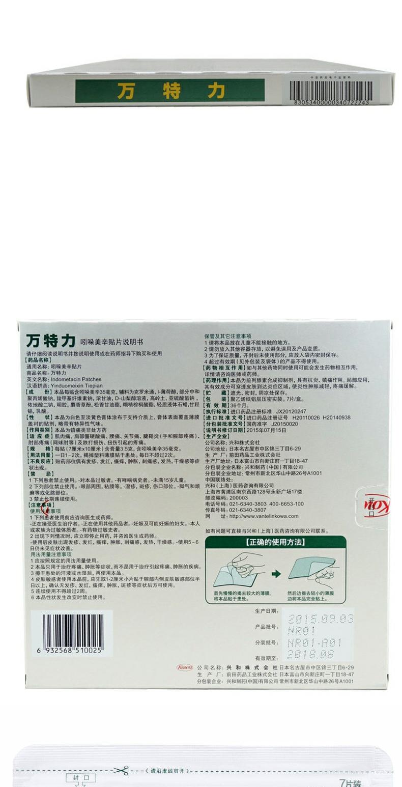 万特力*贴片7贴肌肉关节痛腰痛腱鞘炎 跌打损伤 扭伤