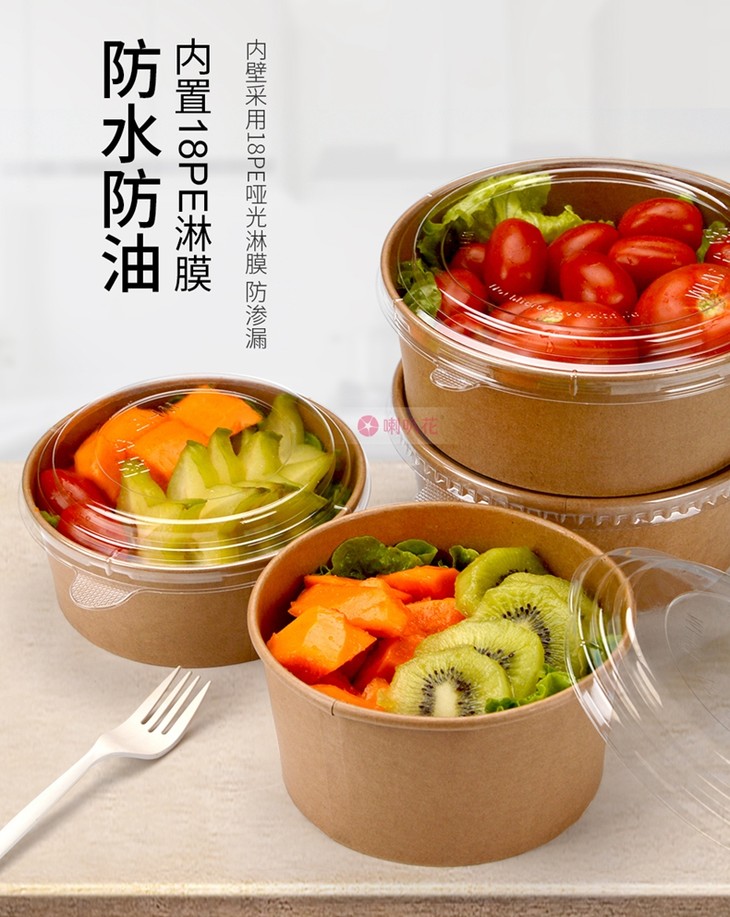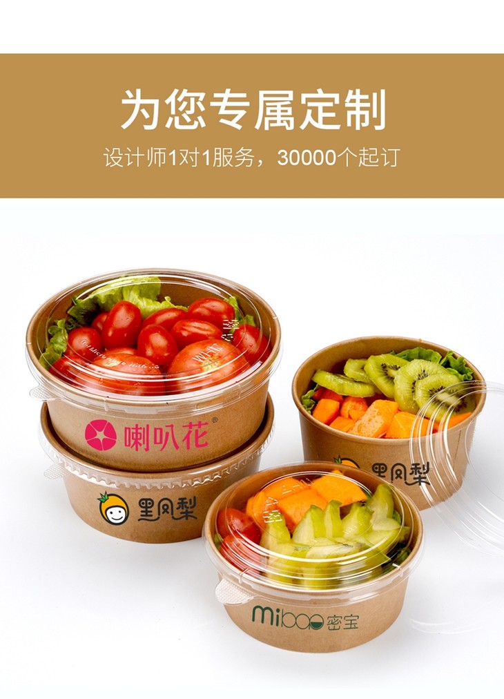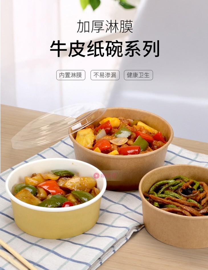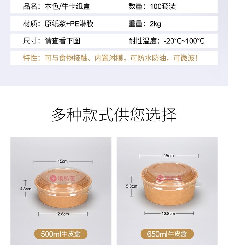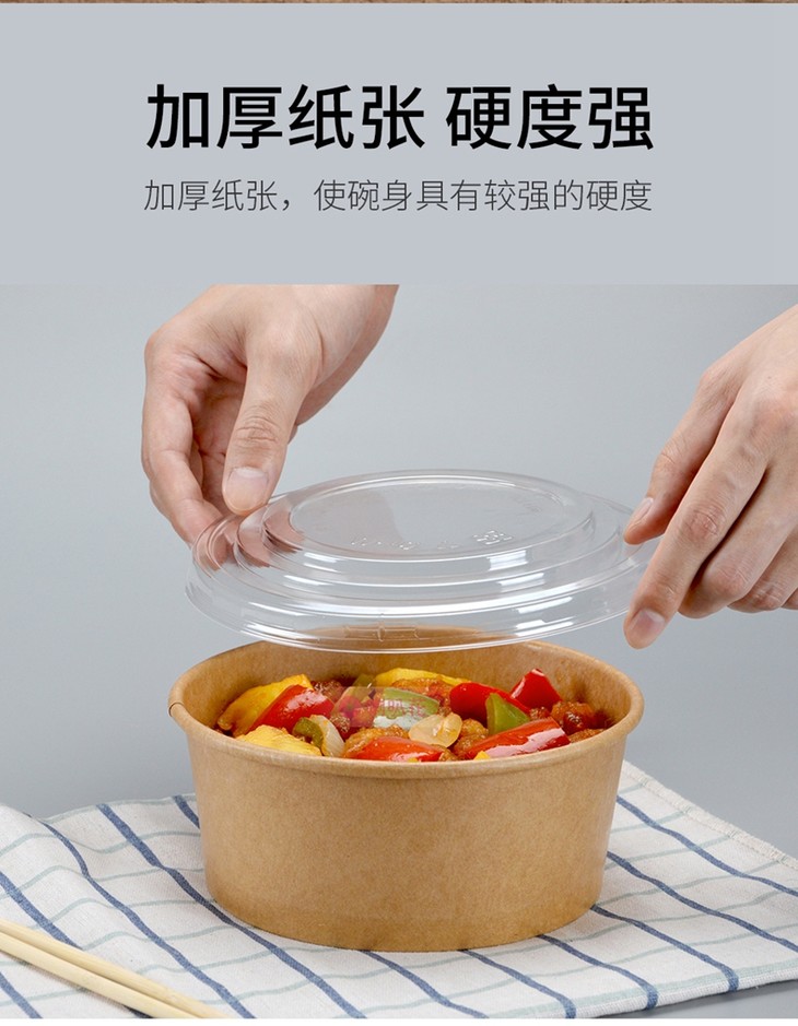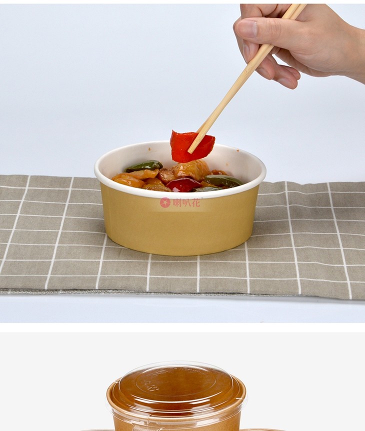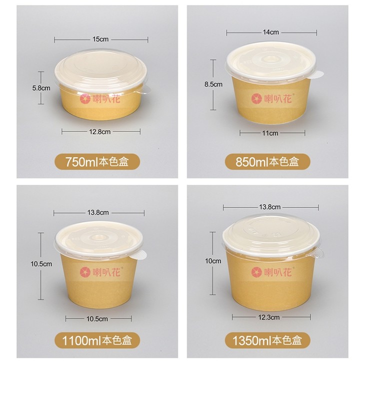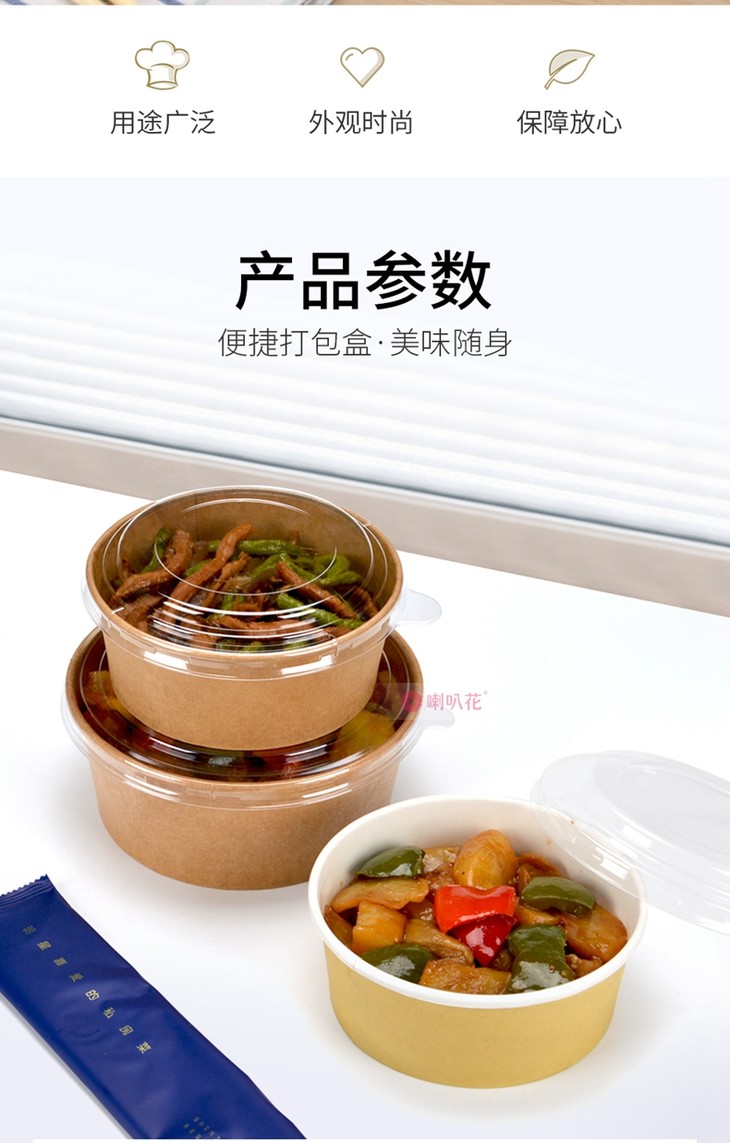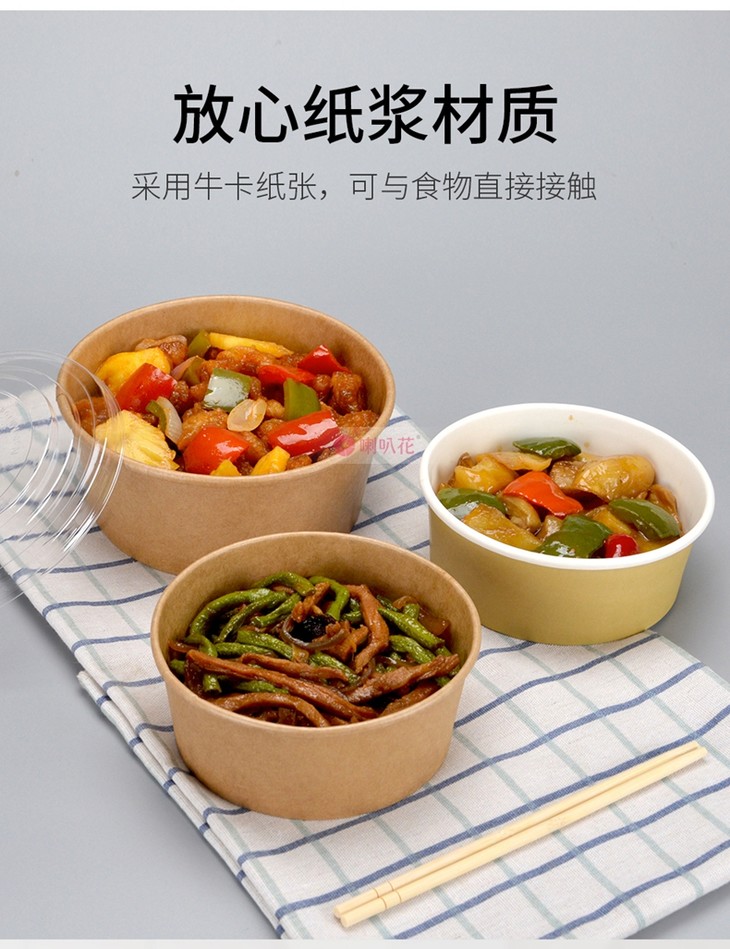喇叭花750ml1300ml一次性餐盒打包盒牛皮纸碗带盖圆形便当盒200套