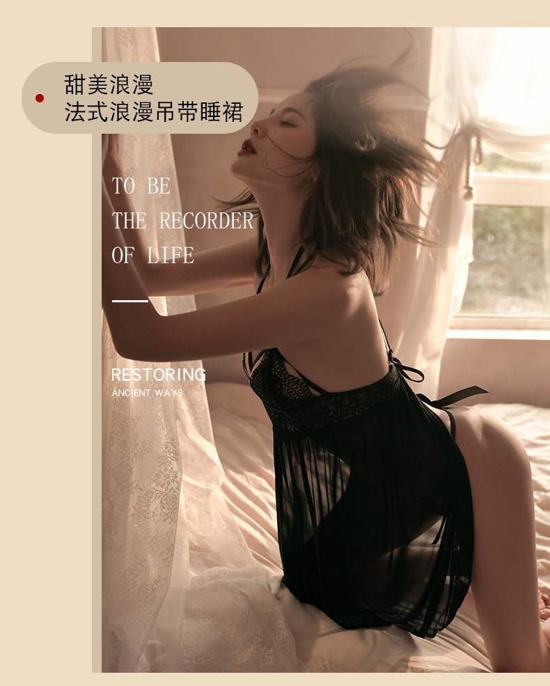 【性感睡裙】法式浪漫吊带绑带睡裙 纯欲诱惑性感甜美情趣内衣睡衣6014 商品图12