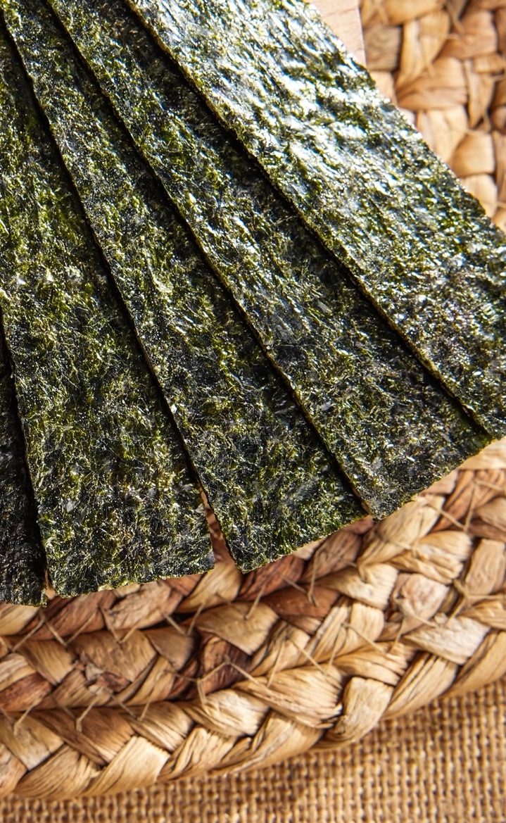 双A品级——只用100%头水条斑紫菜 ,一年只收第一茬,鲜香脆嫩
