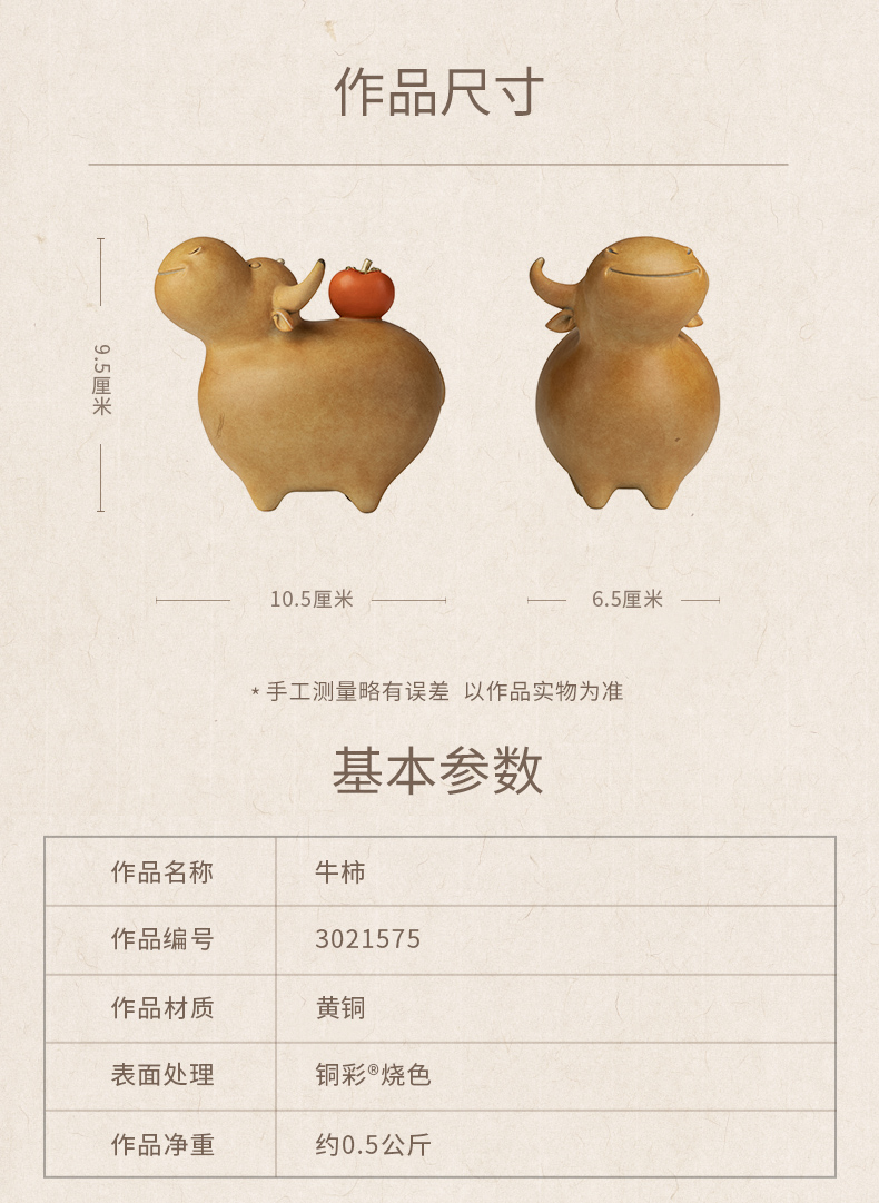 铜师傅 摆件《牛柿》客厅桌面玄关酒柜办公桌家居乔迁装饰品礼品