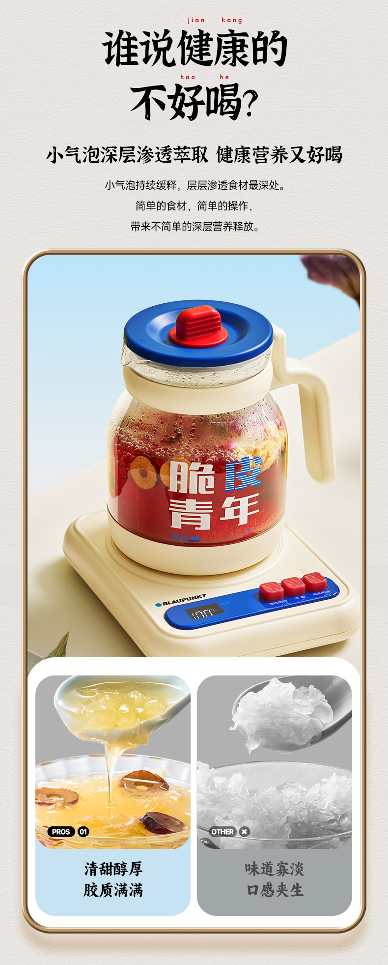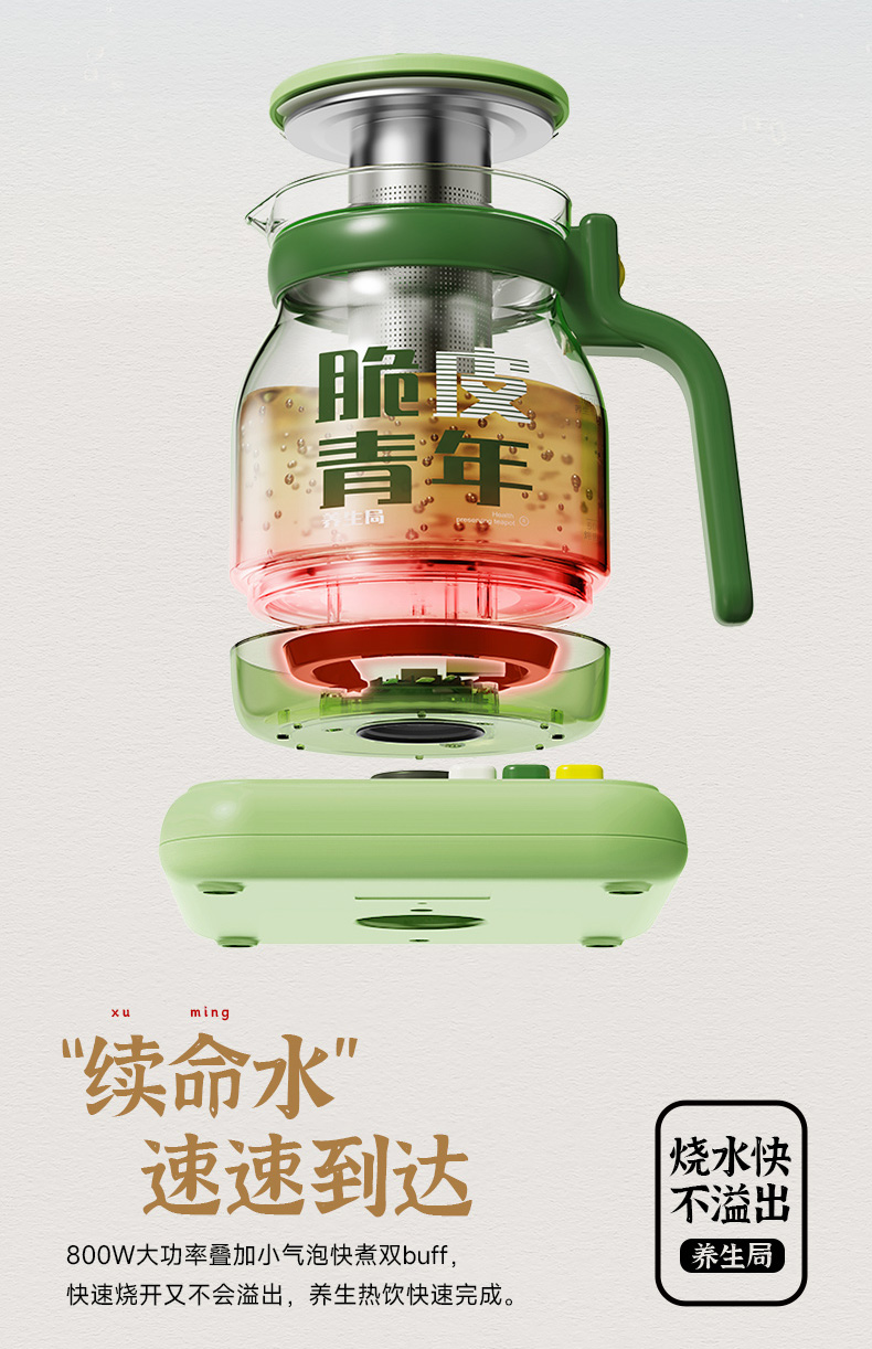 蓝宝养身壶+炖盅 | 激发营养、柔音炖煮、不易糊底、快速烧水