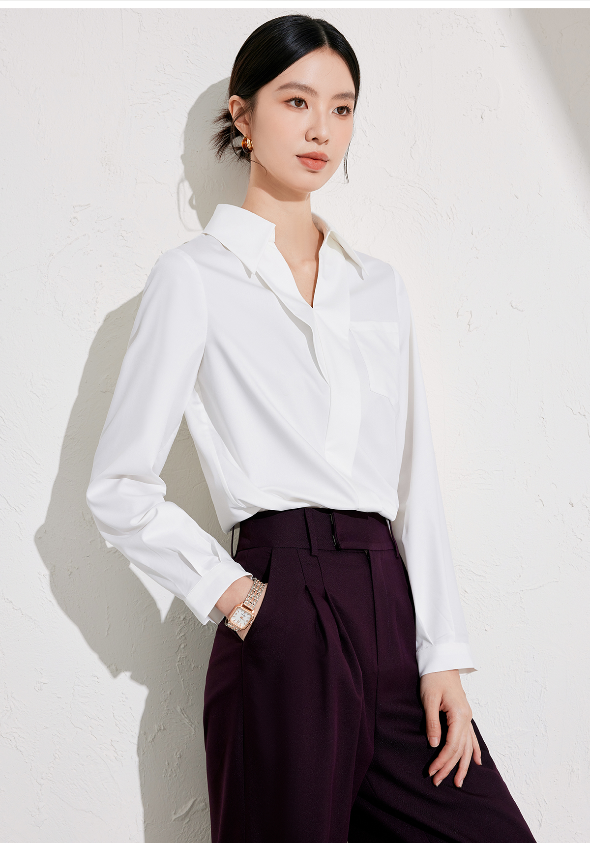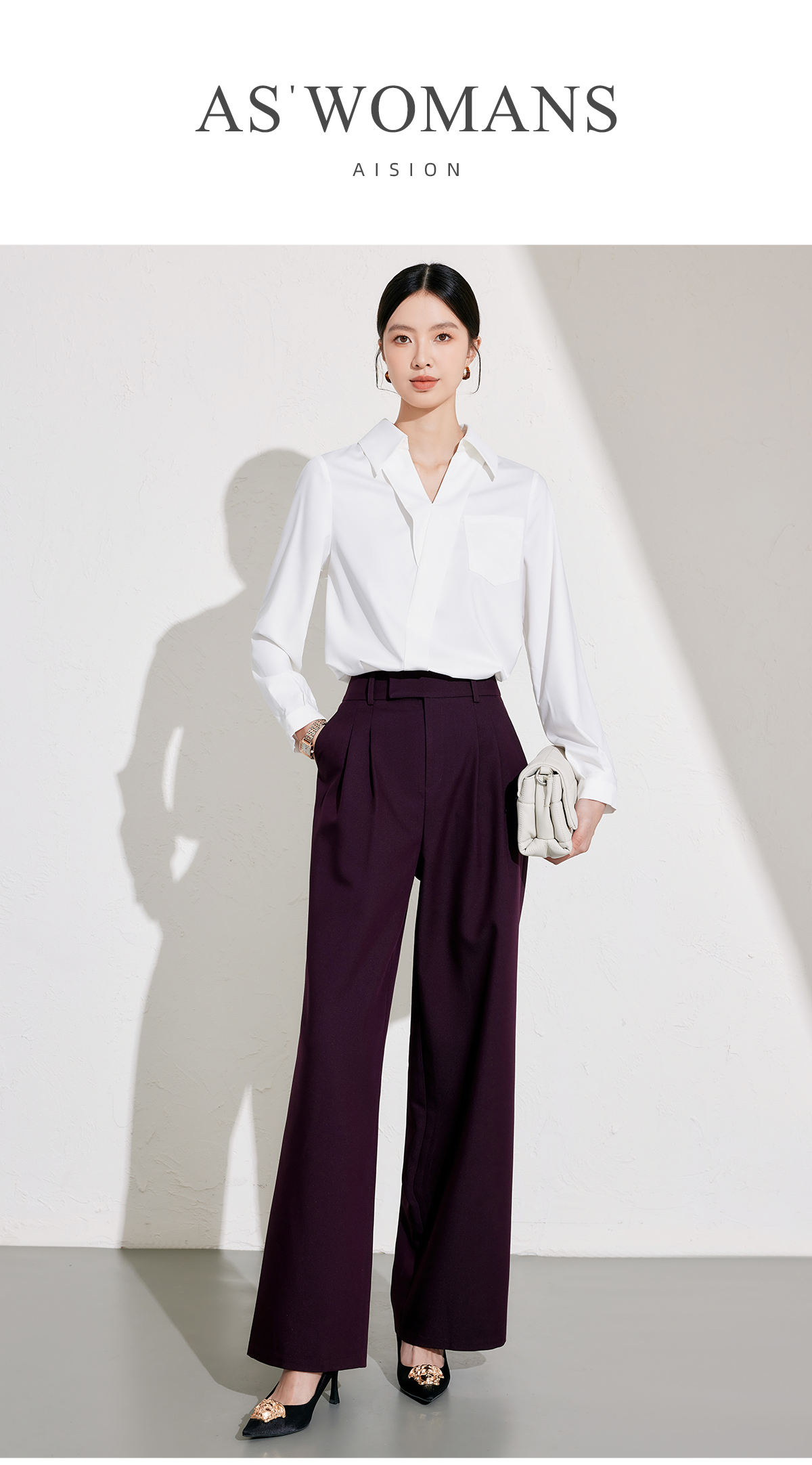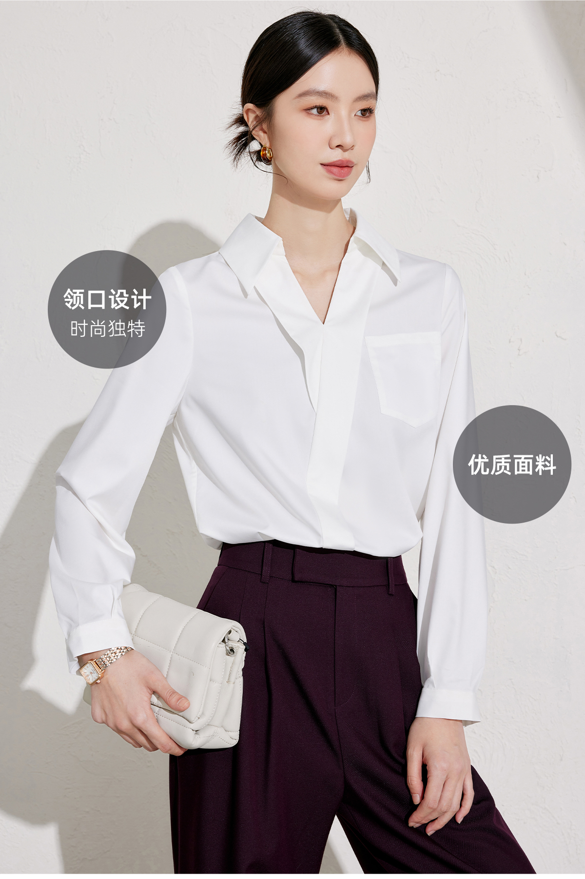 艾尚臣设计感衬衫女2025新款通勤白色衬衣长袖时尚简约挺括上衣春