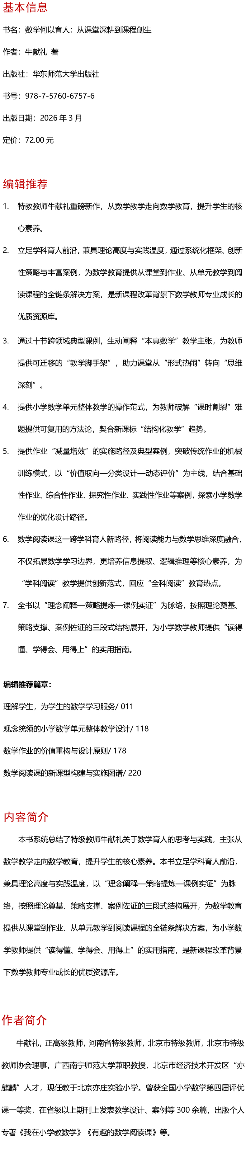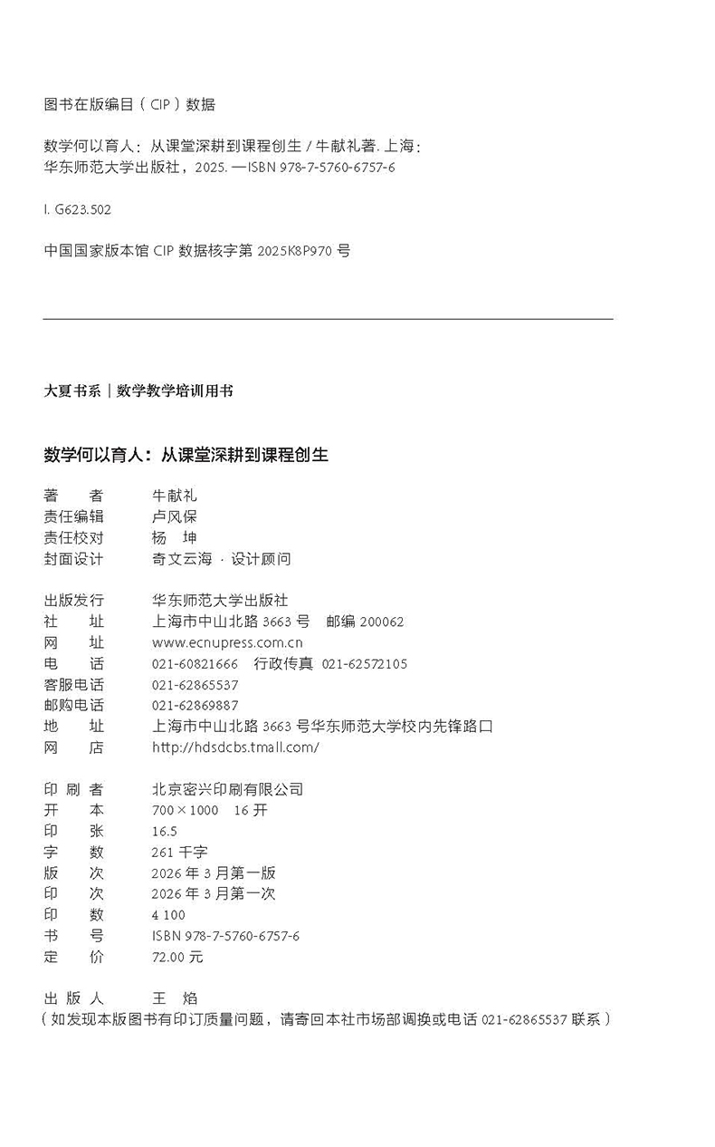 数学何以育人 从课堂深耕到课程创生 大夏书系 数学教学培训用书 特教教师牛献礼