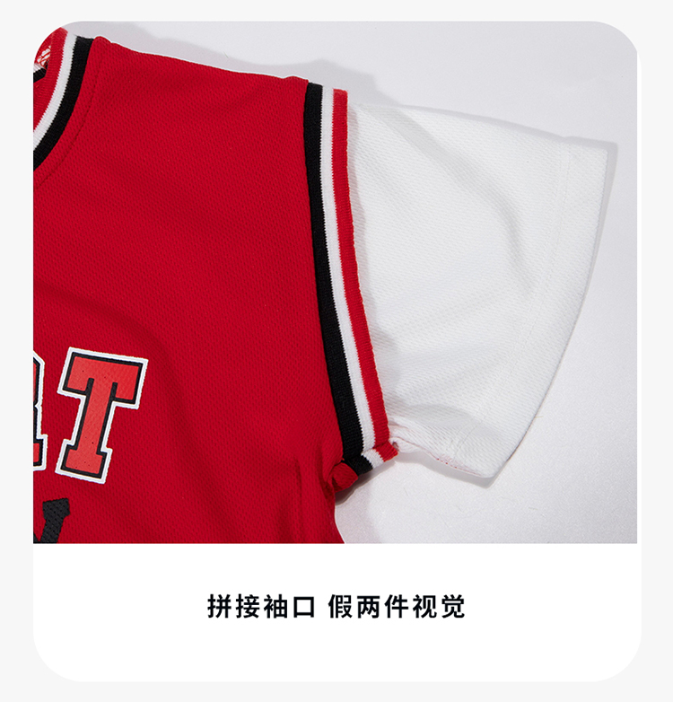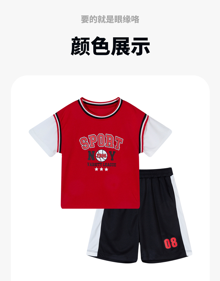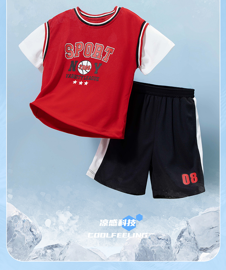 贝贝怡童装男童运动球服套装2024夏季儿童假两件网眼透气凉感速干ZB2DT003