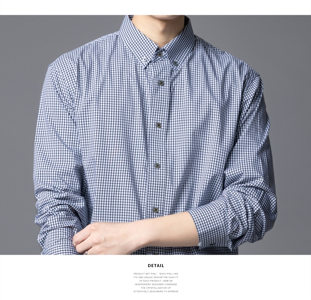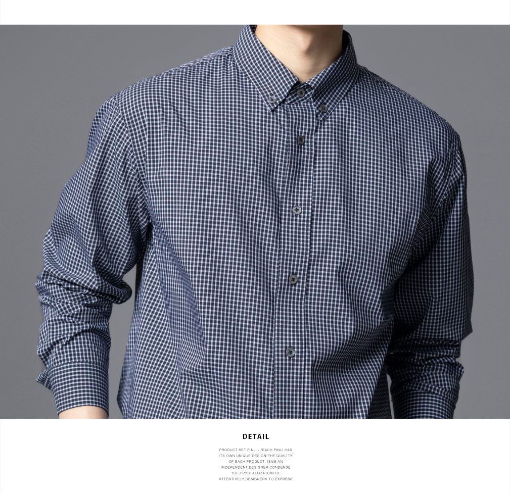 PINLI品立春季新款商务休闲长袖衬衫男扣领尖领格子宽松衬衣GD253113062