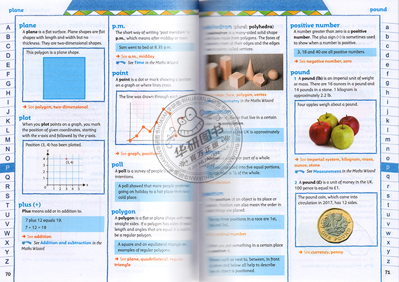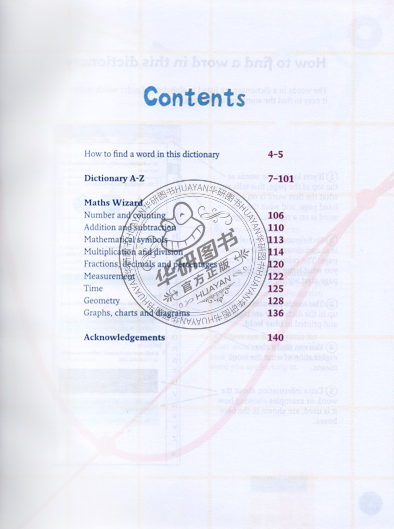 Collins Maths Dictionary《柯林斯小学数学词典》列出了重点的数学术语,并加以简洁明了的英语释义,包括加减乘除的运算、百分数、时间、几何等,鼓励学生将数学概念与日常生活联系起来,是7岁以上儿童理想的数学学习词典。