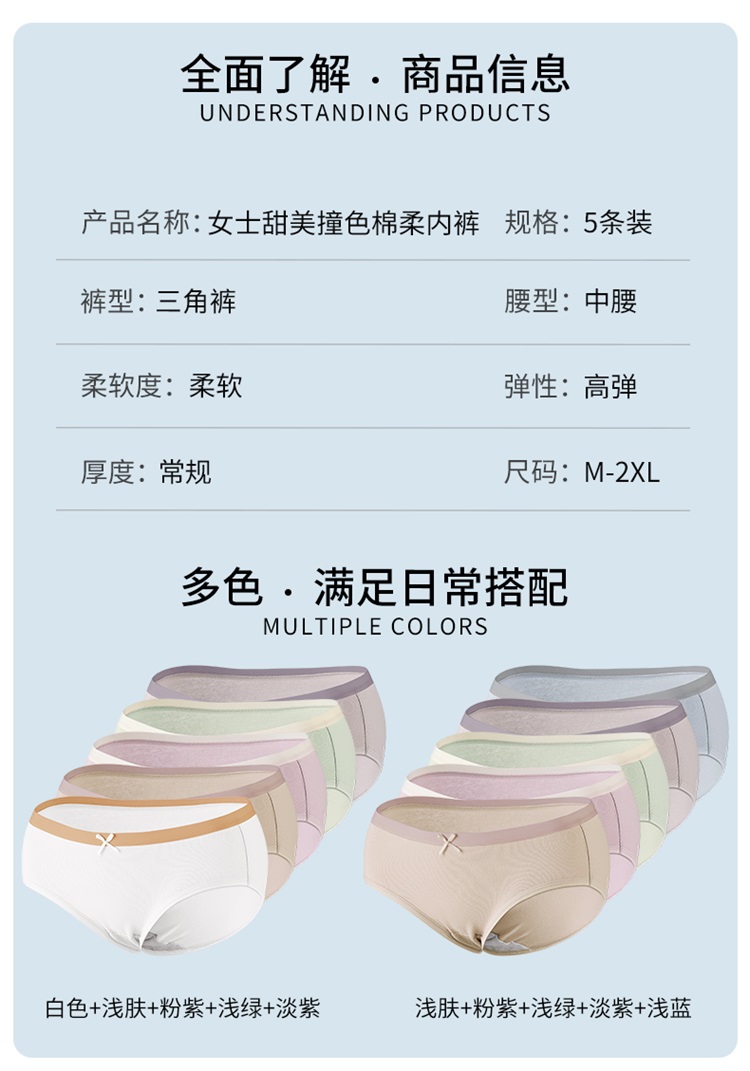 雅黛丽内裤女生纯棉亲肤透气柔软中腰三角裤夏季薄款高弹短裤头