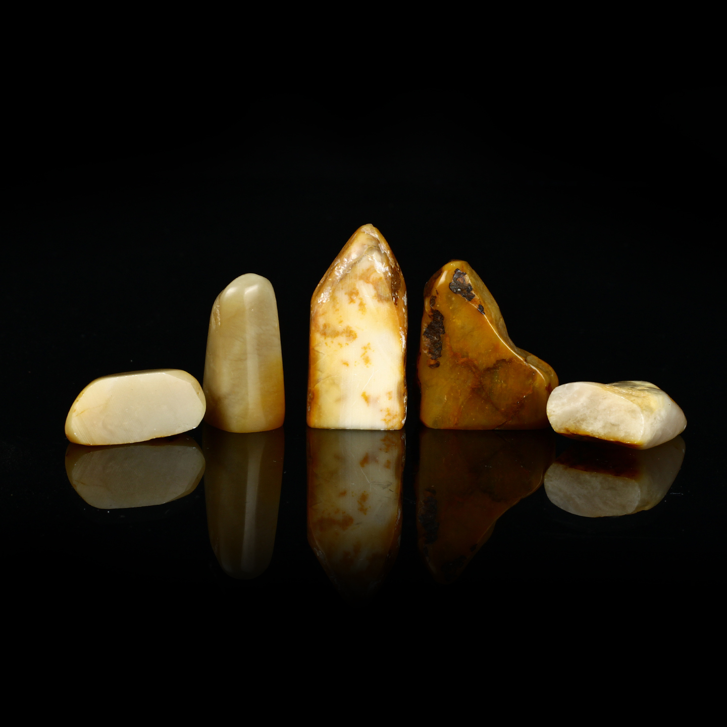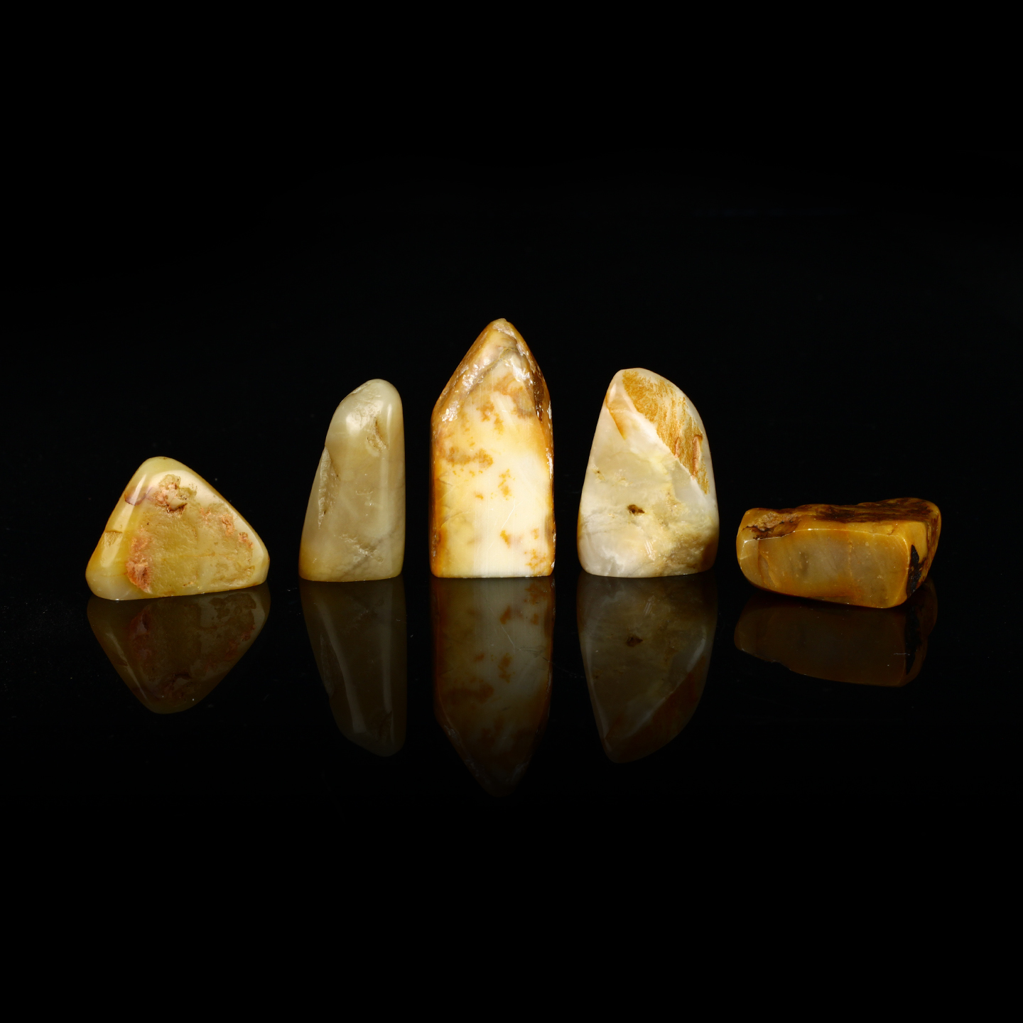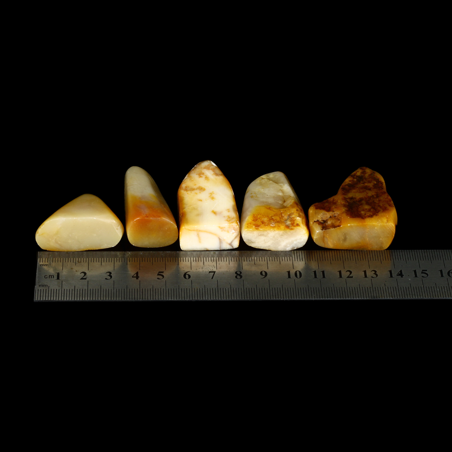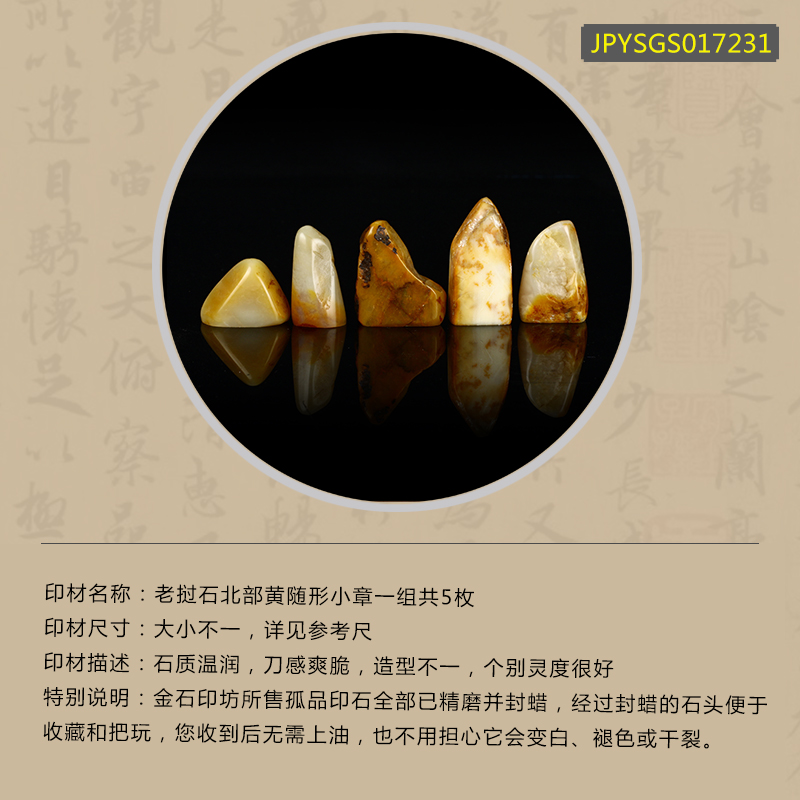 孤品017231老挝石北部黄随形小章一组共5枚-大小不一,详见参考尺