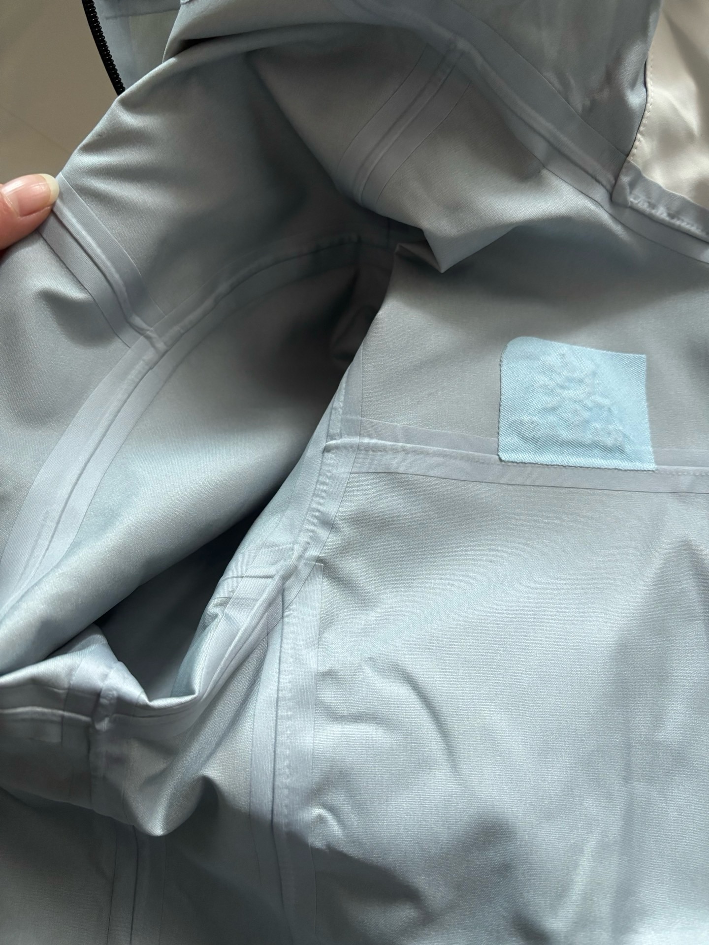 gore tex防水功能性面料,全压胶,内里见不到一条明线!绣花的logo字母,工整完美。