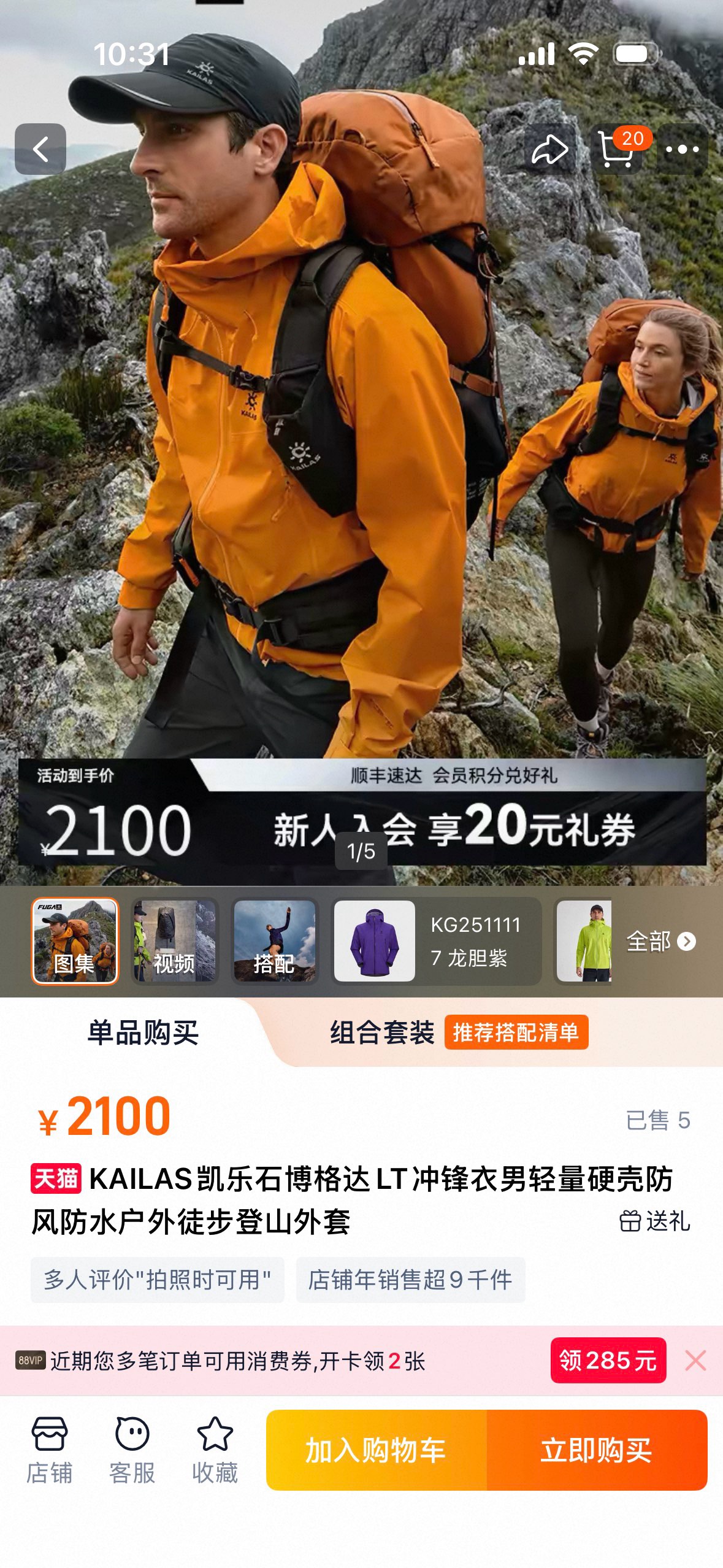 KAILAS 凯乐石博格达绣花户外六色连帽冲锋衣登山透气防风防水硬壳压胶冲锋衣