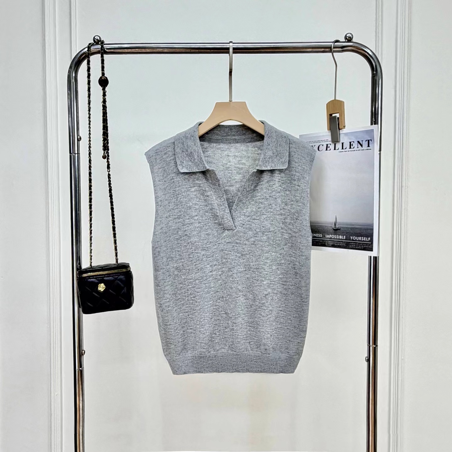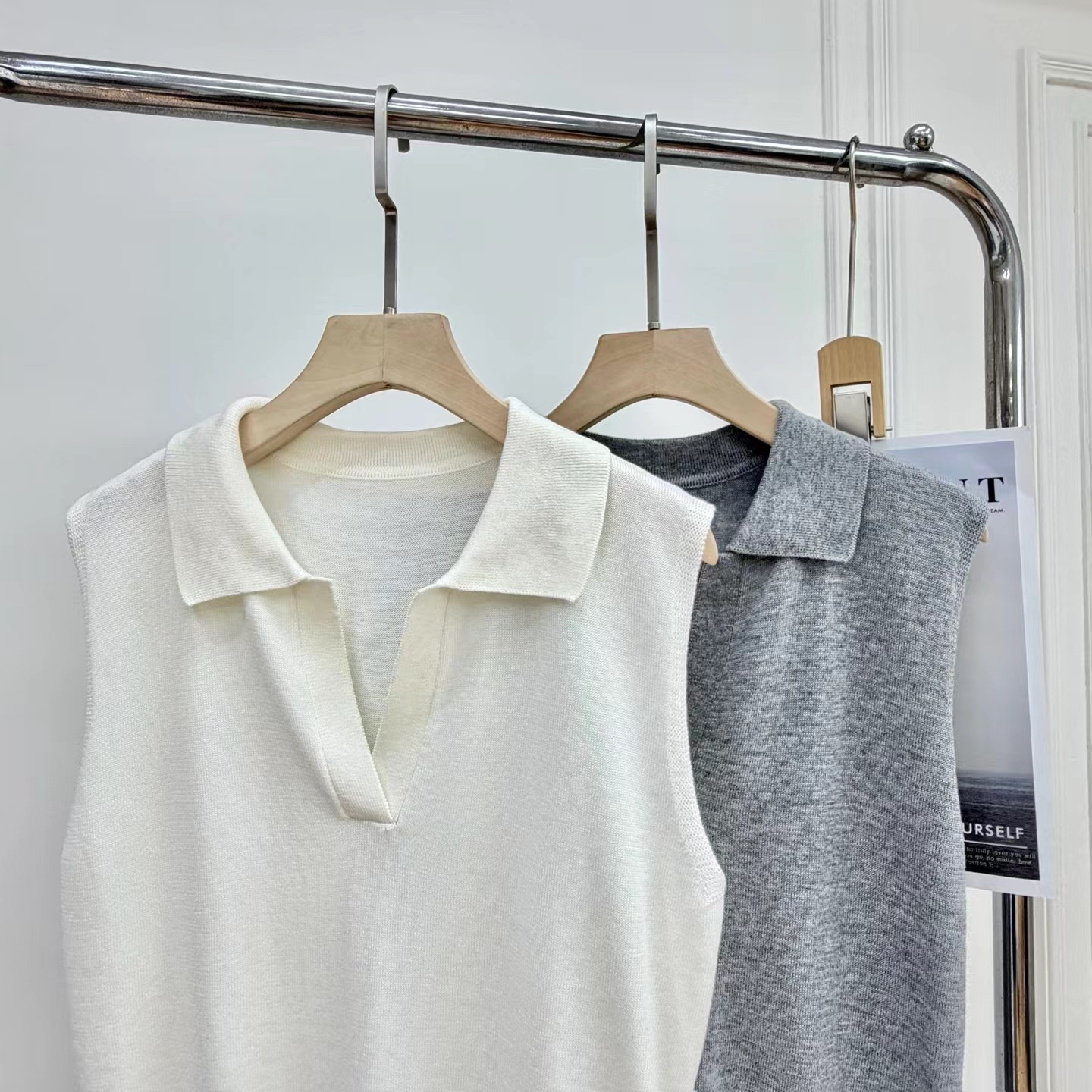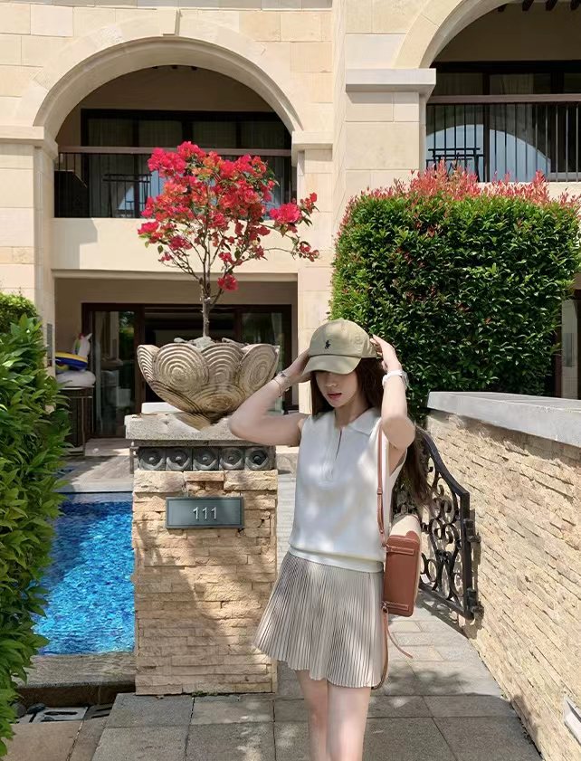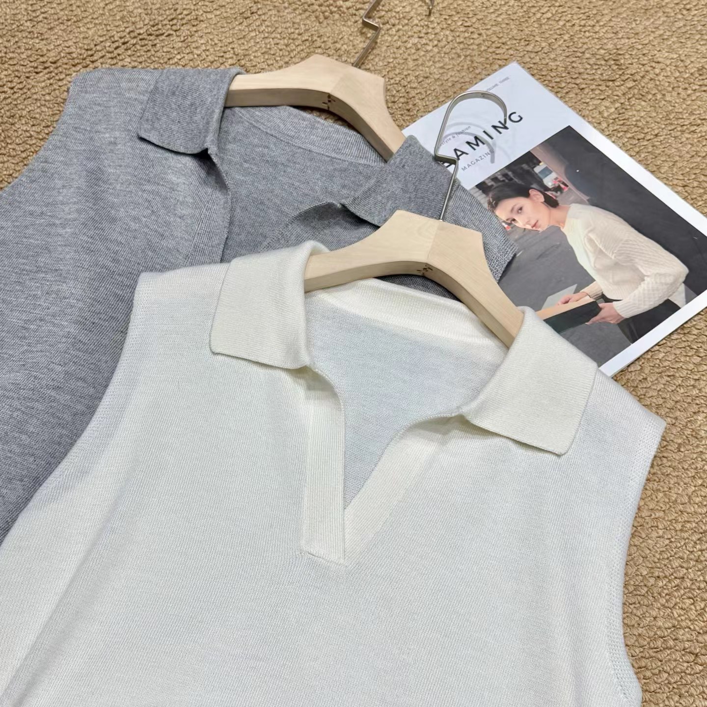 早春新款松弛老钱风polo领无袖羊毛背心针织上衣,羊毛老钱背心!复古POLO领!!面料上是多次对比调整,打了很多版本,精选含羊毛带来柔软亲肤的触感,贴身穿超舒适;锦纶负责抗造,不易皱不易起球,手感柔软舒适,细腻度弹力特别好,采用细腻针法,透氧性更没得说~在湿热的夏天穿也可以很舒服。领口的V领设计,恰到好处地拉长了颈部线条,视觉上让脸小了一圈,轻松打造天鹅颈既视感!而且V领的深度也把握得很好,不会过于暴露又能若隐若现地露出锁骨,增添一丝小性感同时,在视觉上弱化了宽肩,无袖坎肩不显肩宽。版型方面,它是经dian的直筒款式,不挑身材,既能藏住身上的小肉肉又不会显得过于拖沓,整体风格简约大气,没有过多繁杂的装饰却处处透露着高ji感,属于那种穿几年都不会过时的款式。做了两个颜色,都很推荐气质灰~可以轻松驾驭各种场合,低调又高ji,散发着一种清冷的气质月光白 ~干净纯洁,又好搭配,平常穿去上班、逛街,还是约会 都可以!