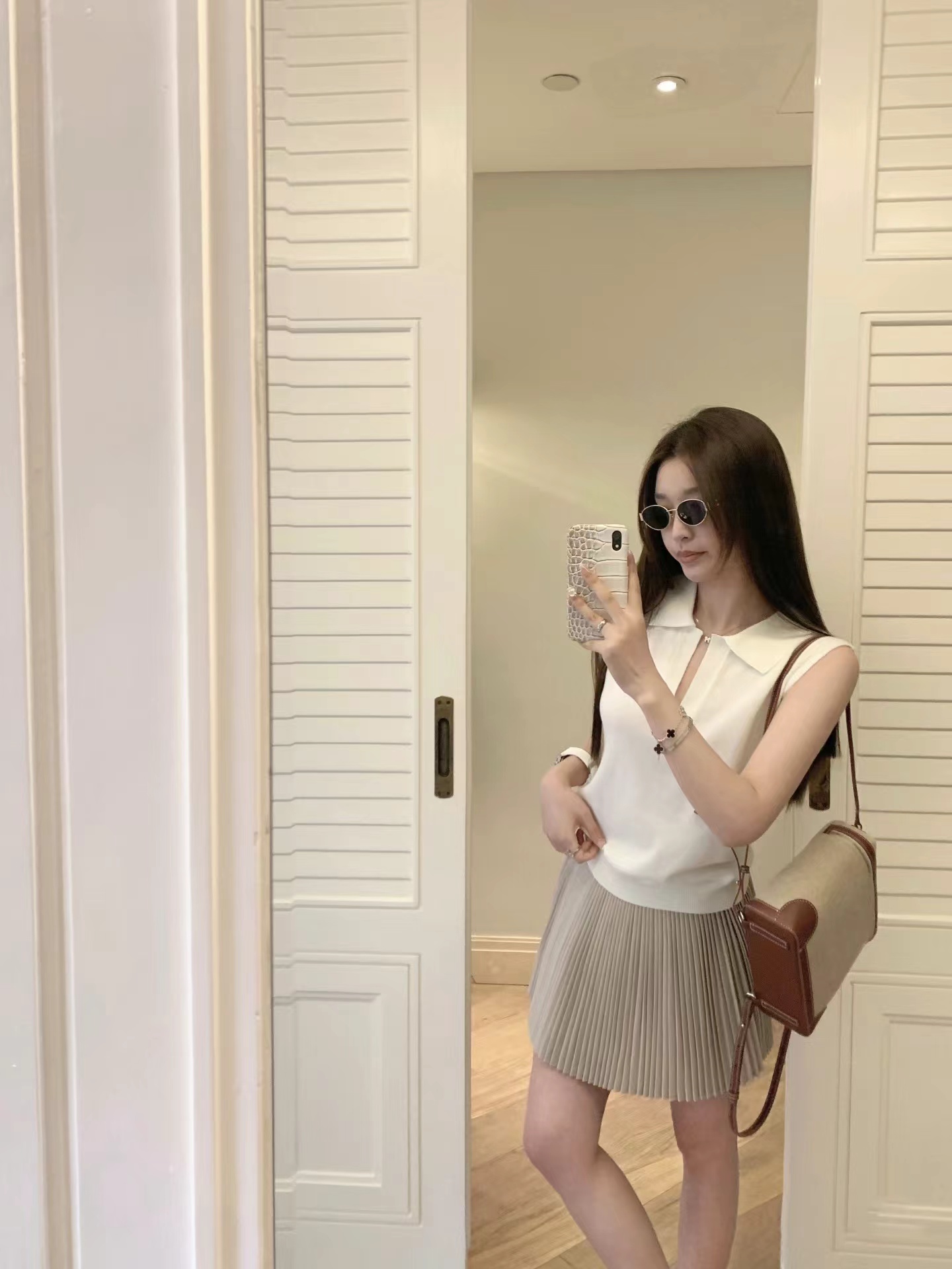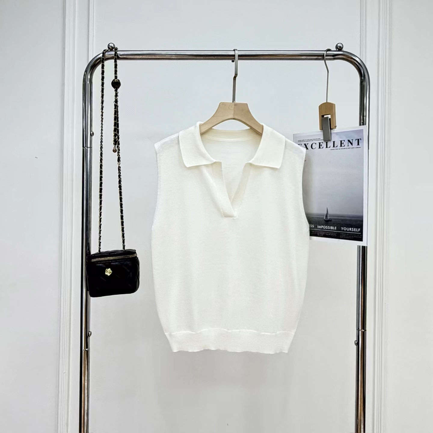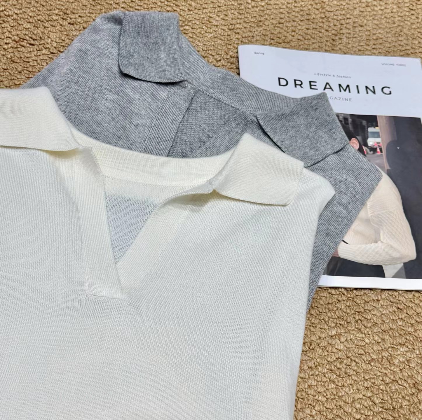早春新款松弛老钱风polo领无袖羊毛背心针织上衣,羊毛老钱背心!复古POLO领!!面料上是多次对比调整,打了很多版本,精选含羊毛带来柔软亲肤的触感,贴身穿超舒适;锦纶负责抗造,不易皱不易起球,手感柔软舒适,细腻度弹力特别好,采用细腻针法,透氧性更没得说~在湿热的夏天穿也可以很舒服。领口的V领设计,恰到好处地拉长了颈部线条,视觉上让脸小了一圈,轻松打造天鹅颈既视感!而且V领的深度也把握得很好,不会过于暴露又能若隐若现地露出锁骨,增添一丝小性感同时,在视觉上弱化了宽肩,无袖坎肩不显肩宽。版型方面,它是经dian的直筒款式,不挑身材,既能藏住身上的小肉肉又不会显得过于拖沓,整体风格简约大气,没有过多繁杂的装饰却处处透露着高ji感,属于那种穿几年都不会过时的款式。做了两个颜色,都很推荐气质灰~可以轻松驾驭各种场合,低调又高ji,散发着一种清冷的气质月光白 ~干净纯洁,又好搭配,平常穿去上班、逛街,还是约会 都可以!