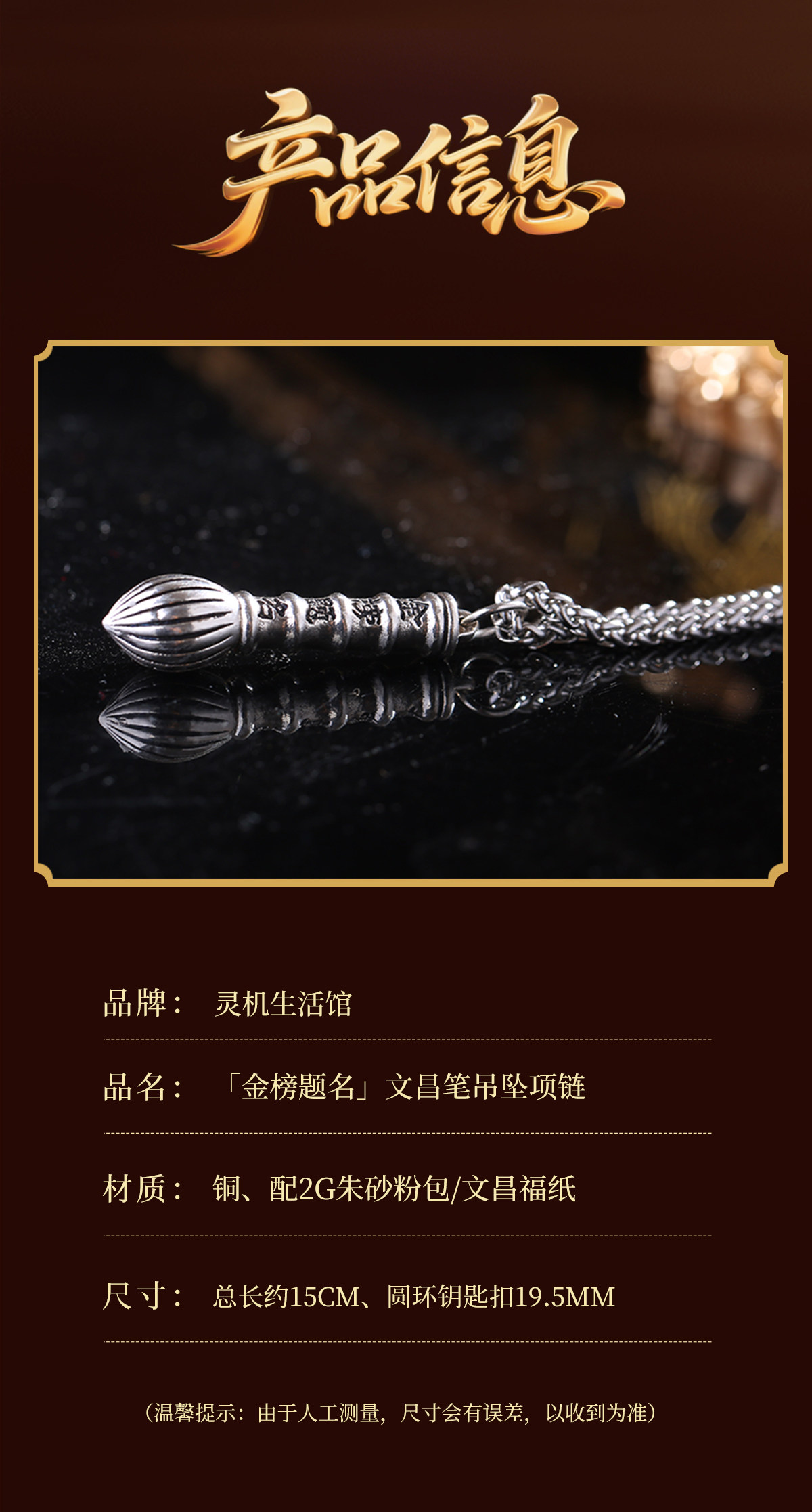 【祈愿吉品】文昌笔项链金榜题名成人礼励志吊坠中高考寓意好的礼物