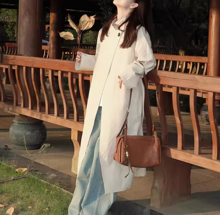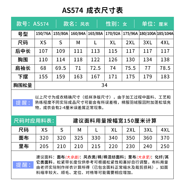 裁缝学苑AS574韩系立领中长款风衣纸样大衣系带外套打版裁剪