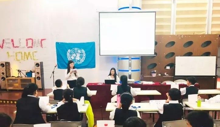 “小小联合国”开始前,老师会进行培训讲解模拟联合国的环节、规则、发言礼仪等相关知识。