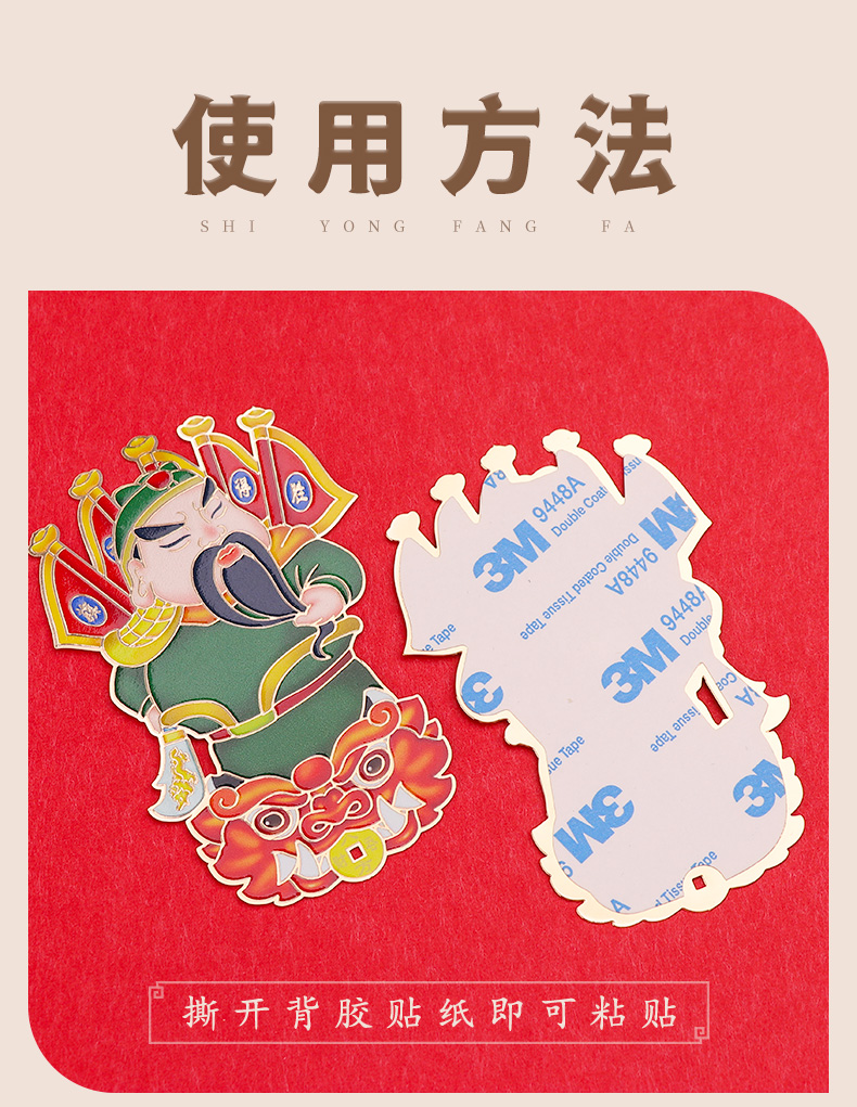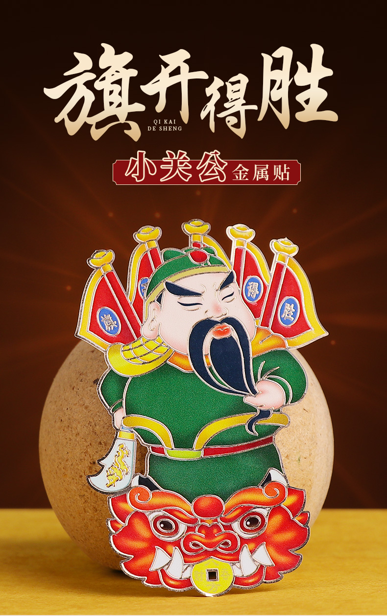 旗开得胜黄铜关公彩色金属贴