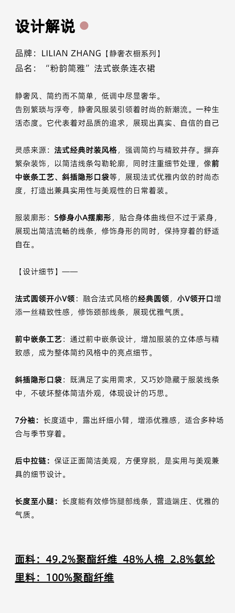 E“定制”——静奢风——风尚之选 “粉韵简雅”法式嵌条连衣裙 2501055