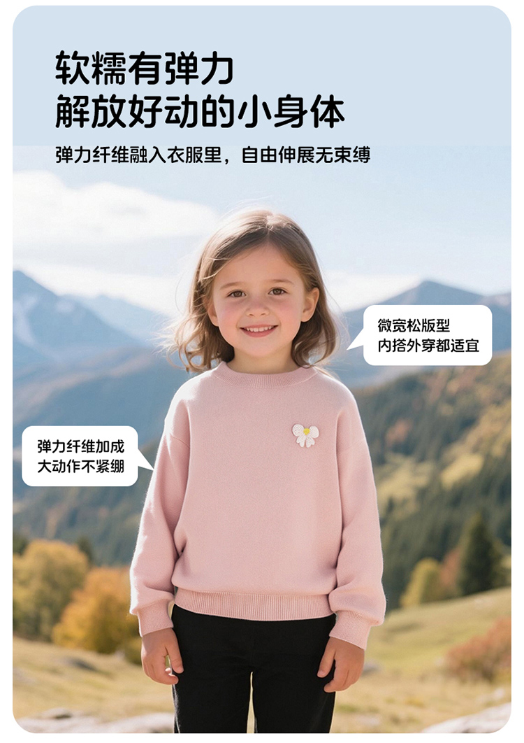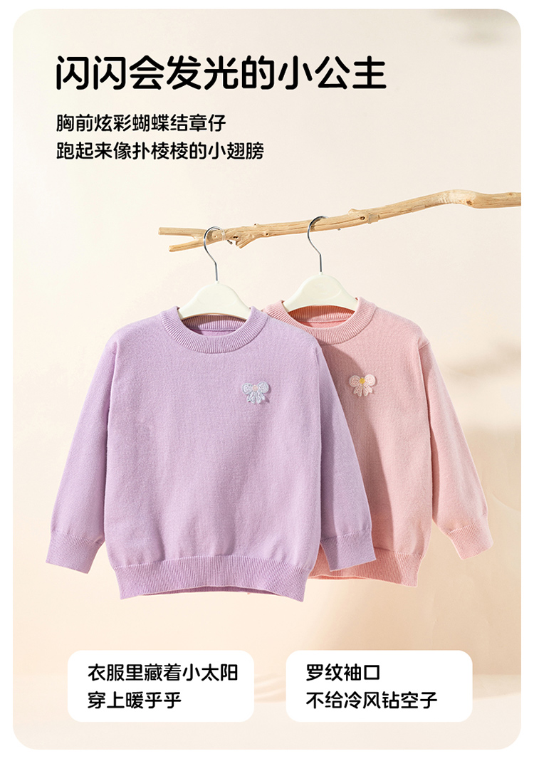 贝贝怡春秋新款女童纯色线衫女孩休闲毛衣外穿内搭上衣ZB3ES025