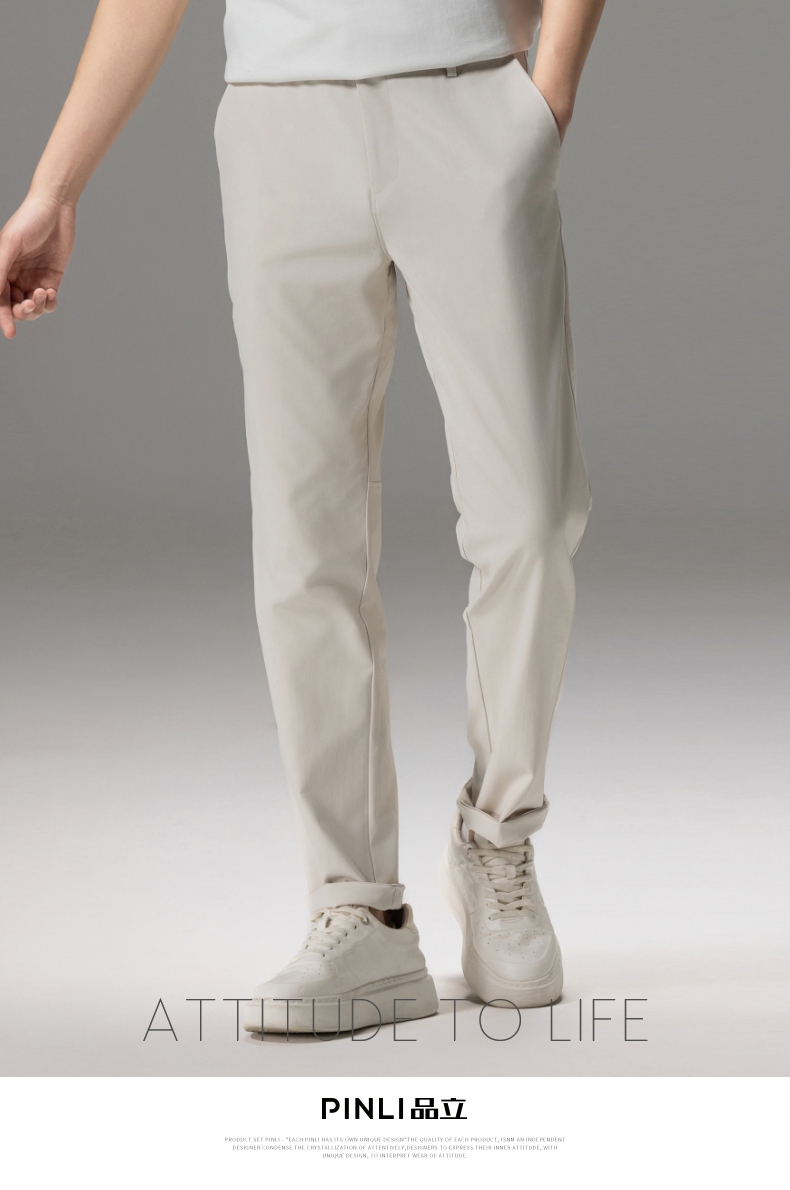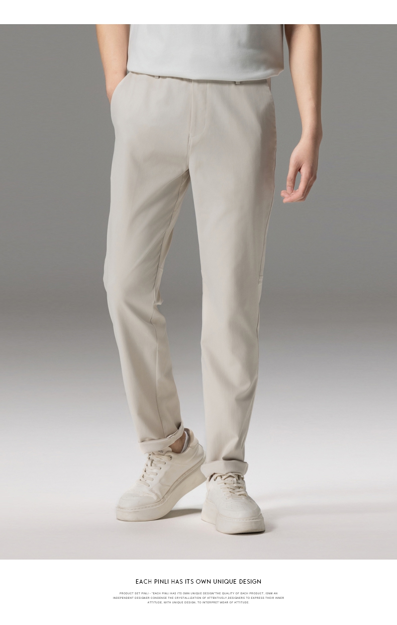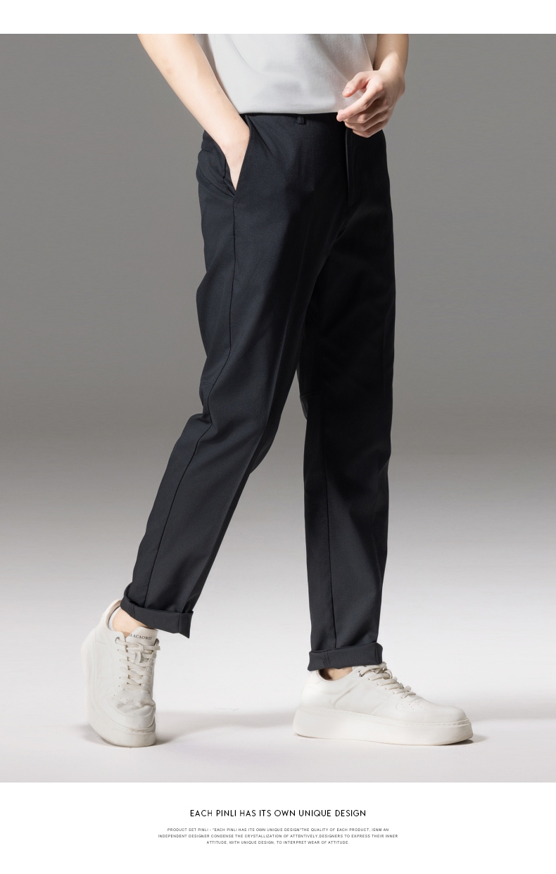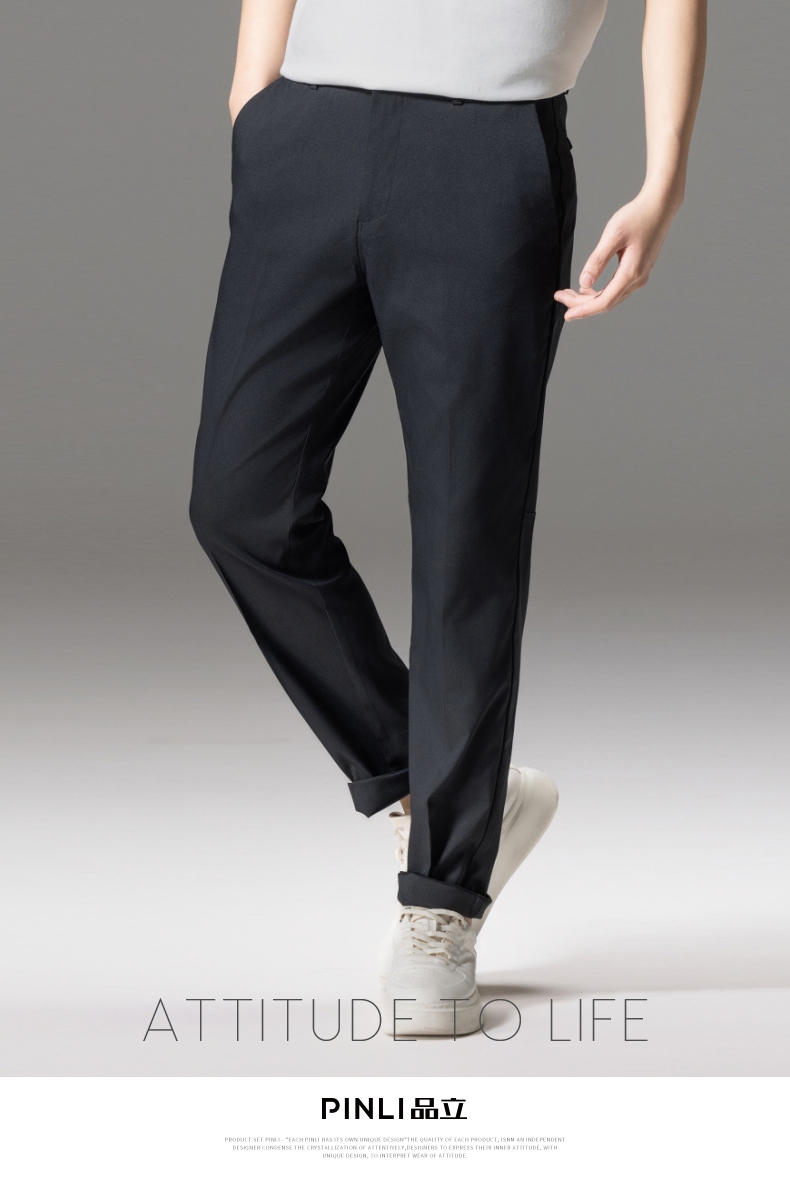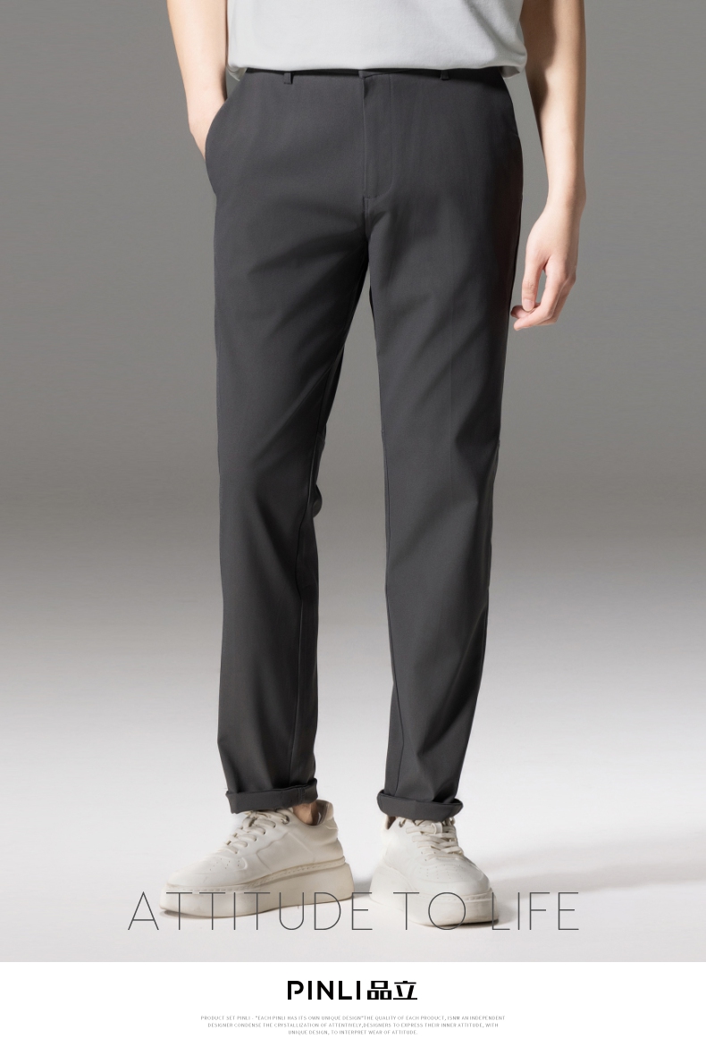 PINLI品立秋季新款男士修身百搭纯色直筒休闲长裤GD242417335