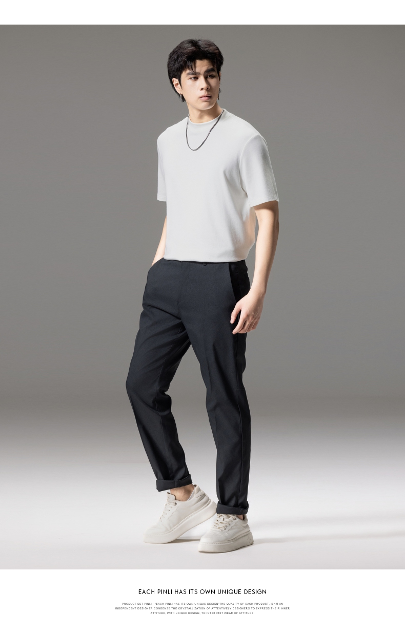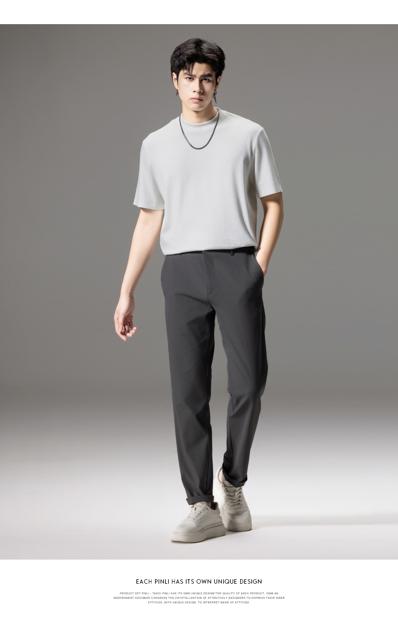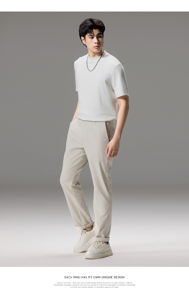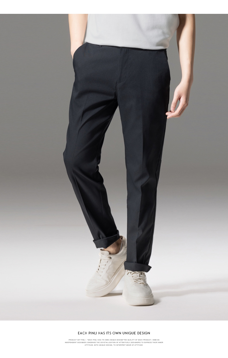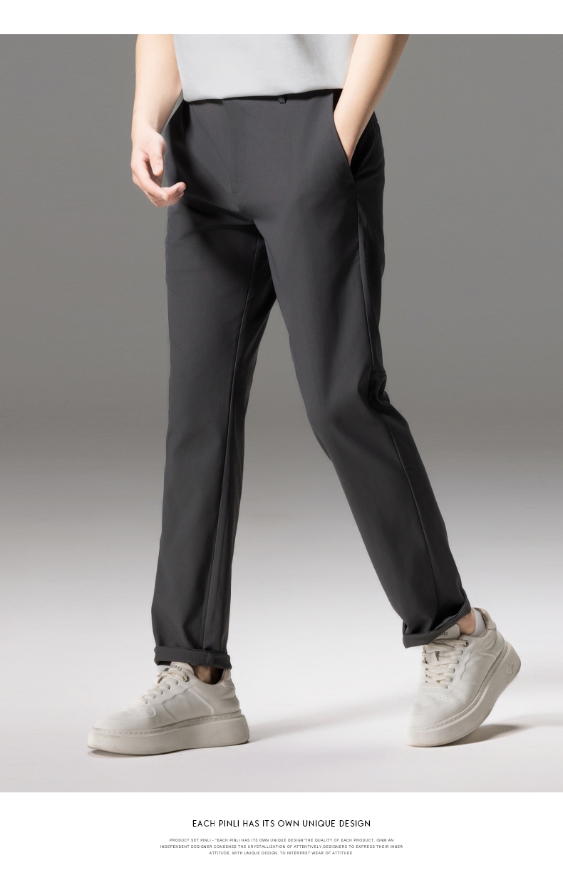 PINLI品立秋季新款男士修身百搭纯色直筒休闲长裤GD242417335