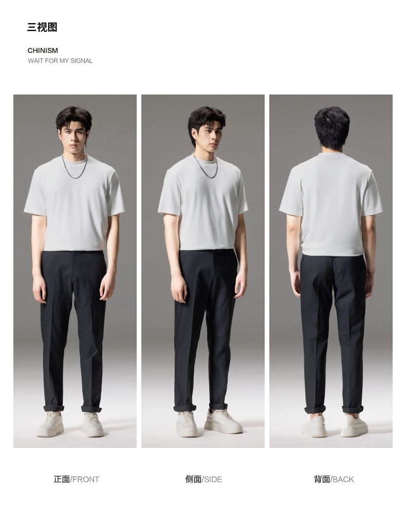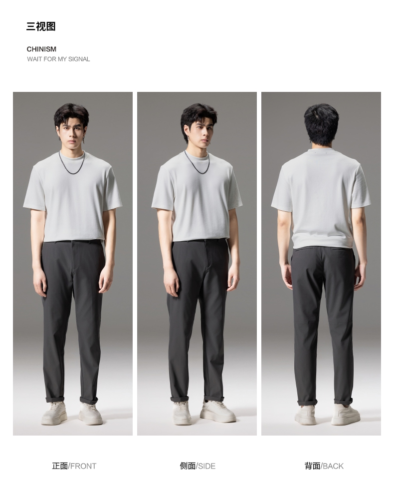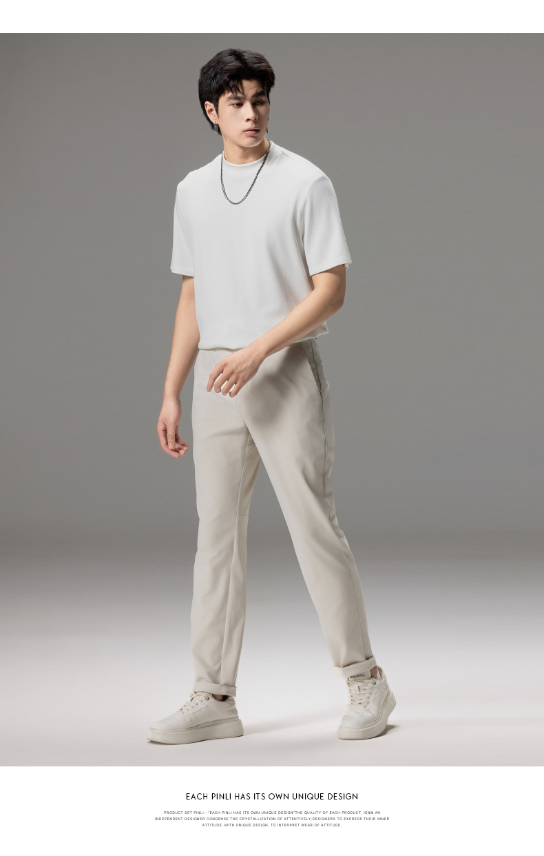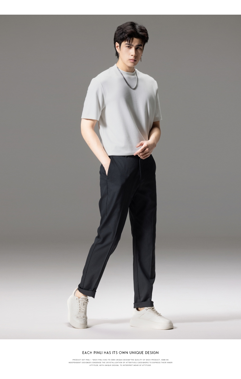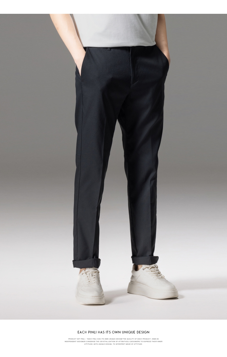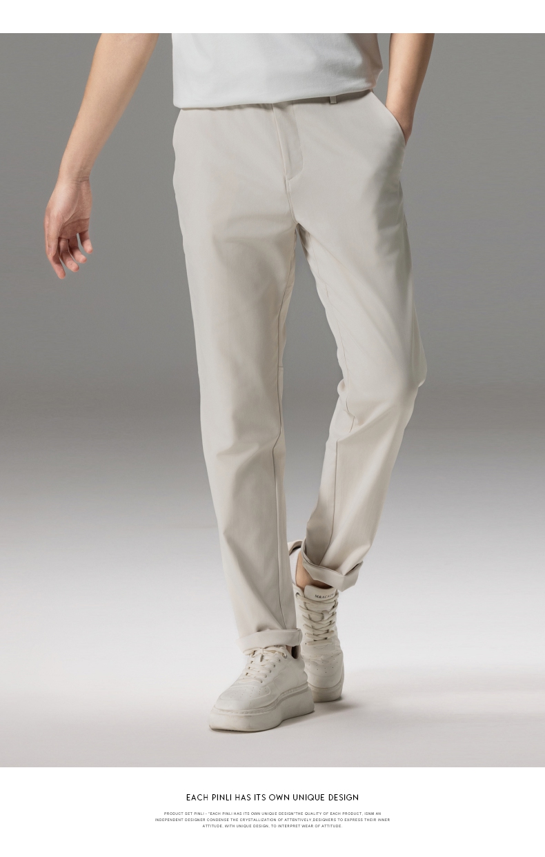 PINLI品立秋季新款男士修身百搭纯色直筒休闲长裤GD242417335