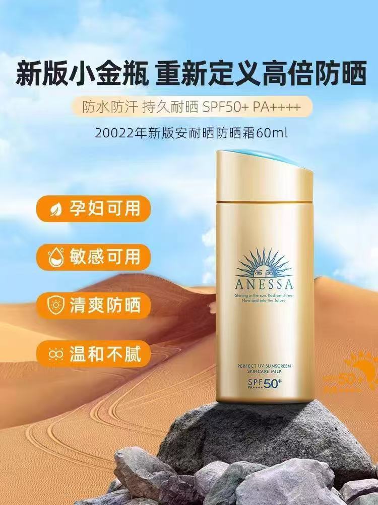 新日期28年~安耐晒防晒霜90ml,号称“zui强防晒”防水防汗效果。比较适合水上娱乐运动,及出汗多的夏天。