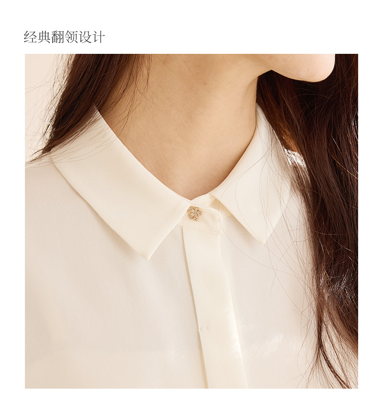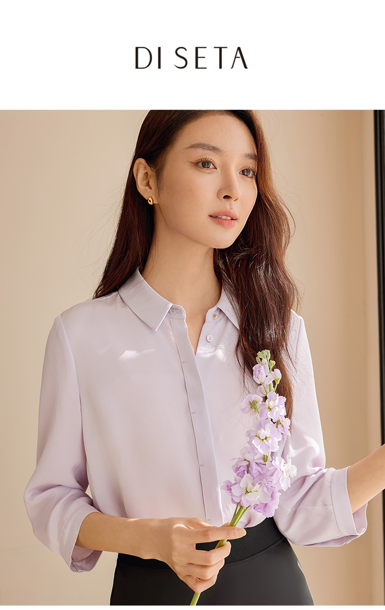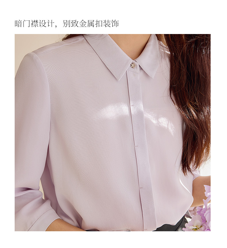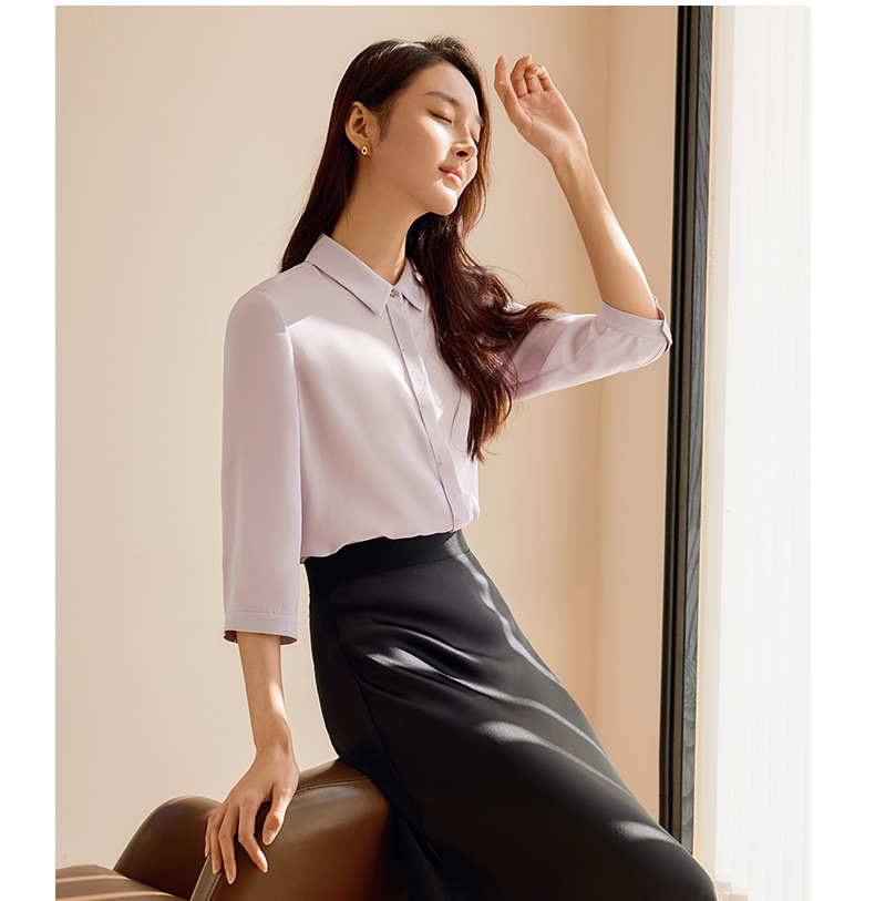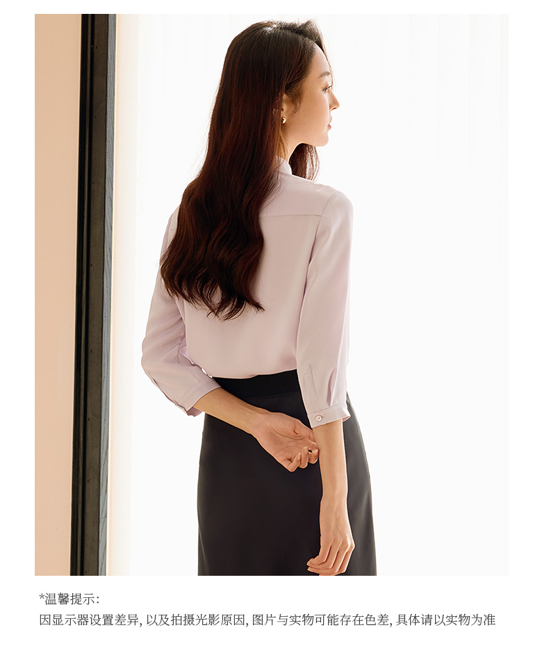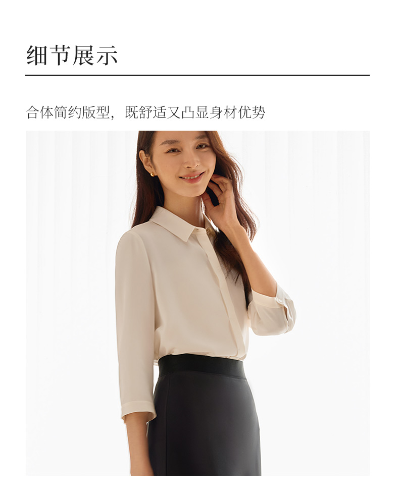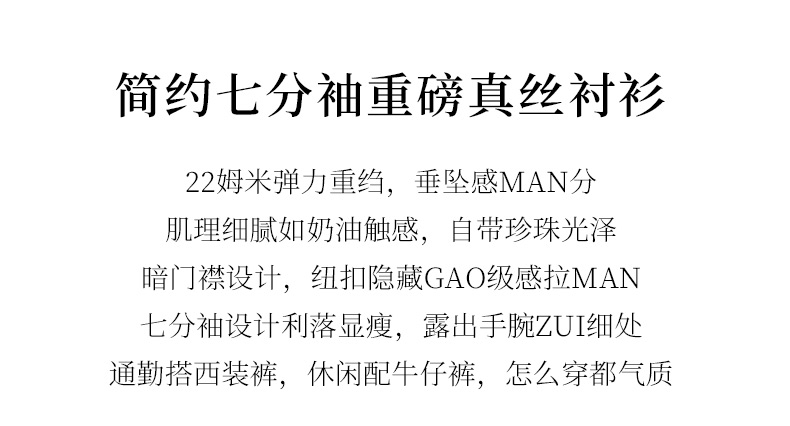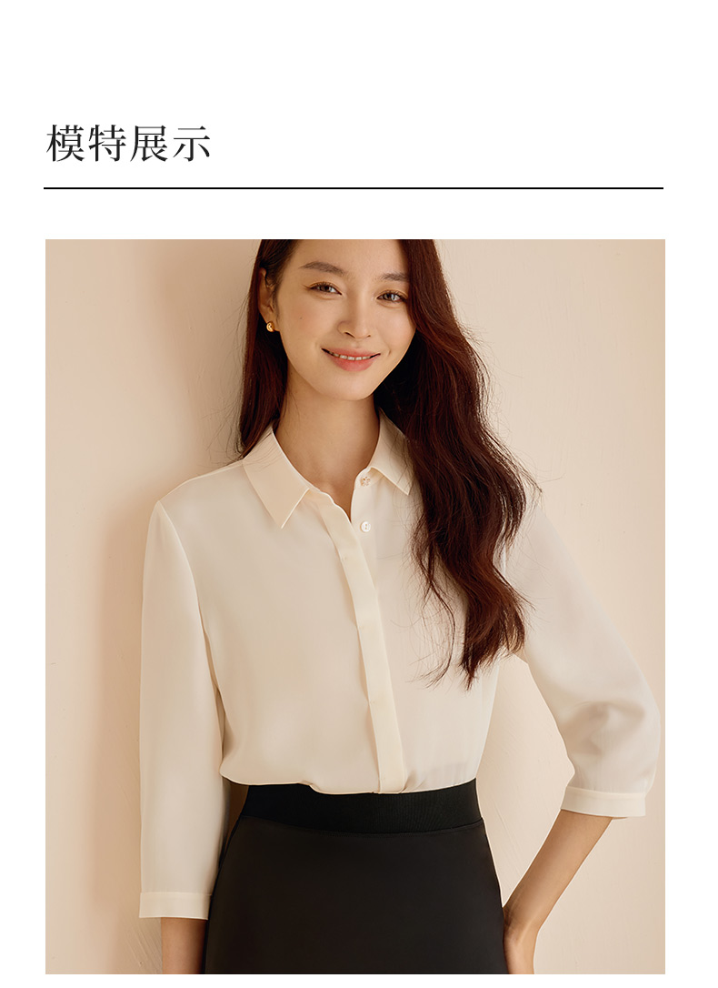 玳莎简约重磅真丝衬衫女通勤气质七分袖方领上衣2025年春季新款 FA31310