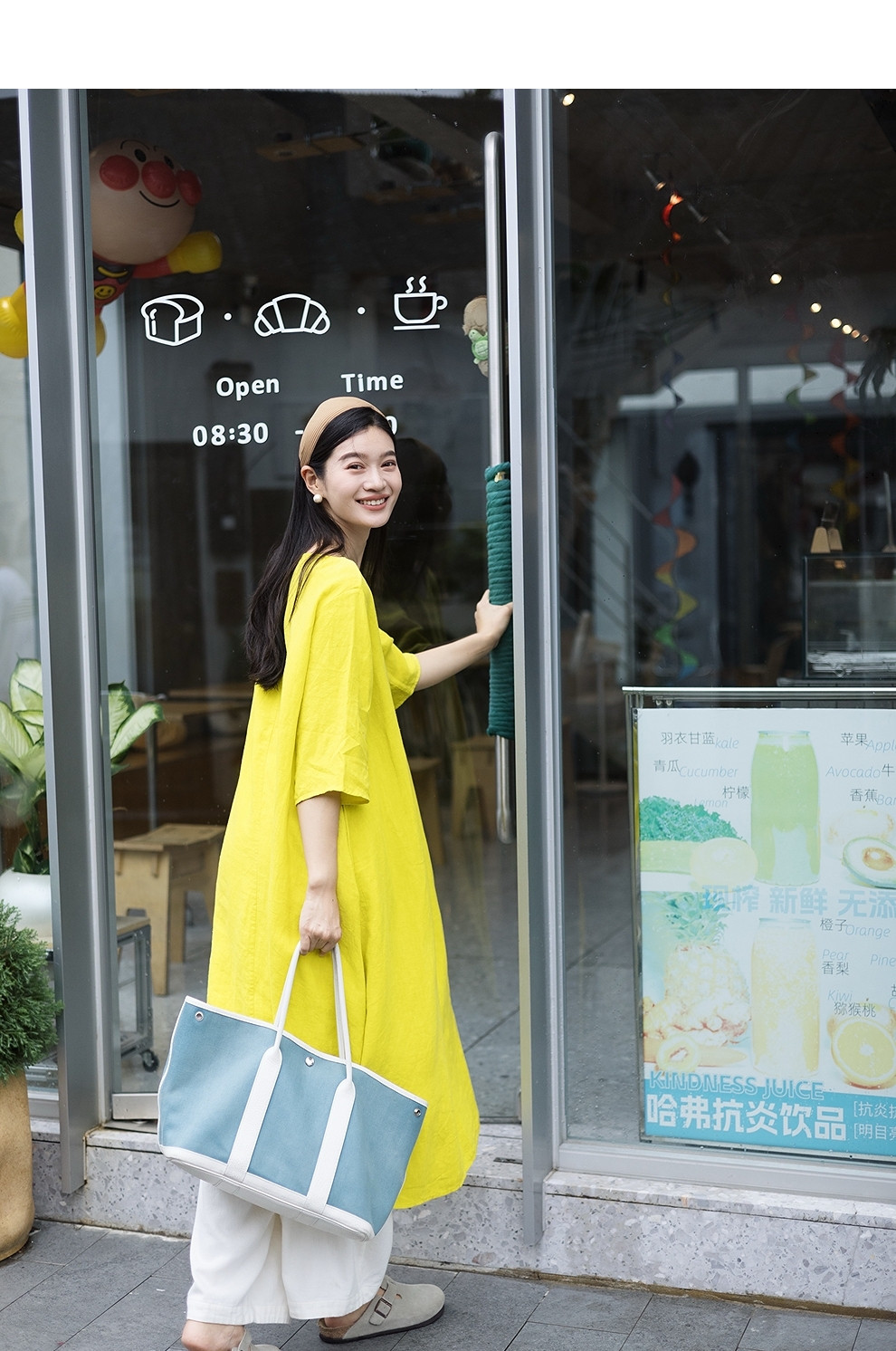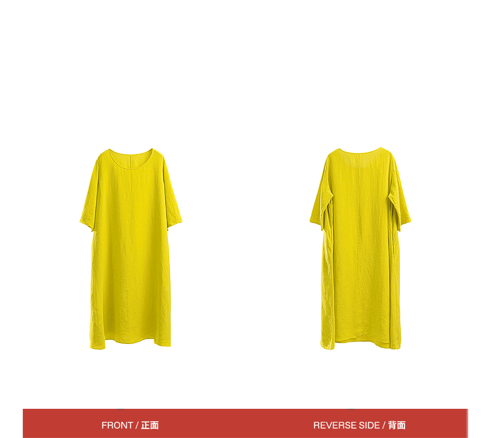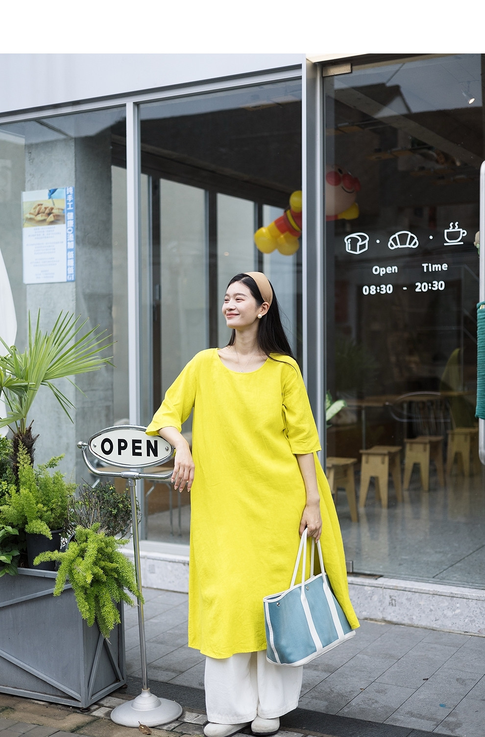 绽放女装552朵/高端加密水果酵素洗亚麻中袖多巴胺连衣裙女度假裙