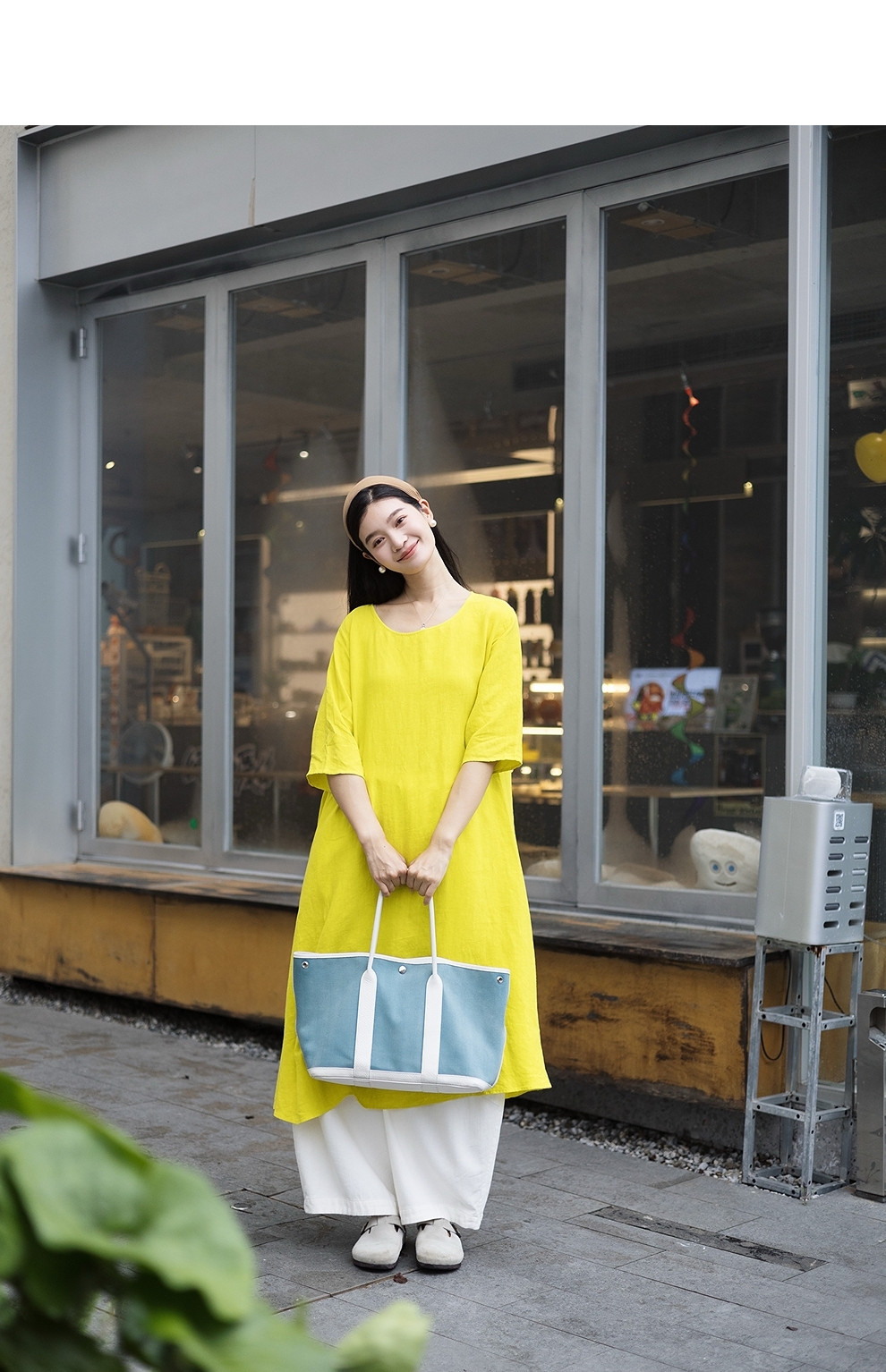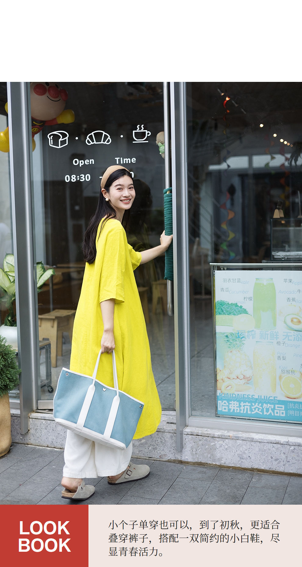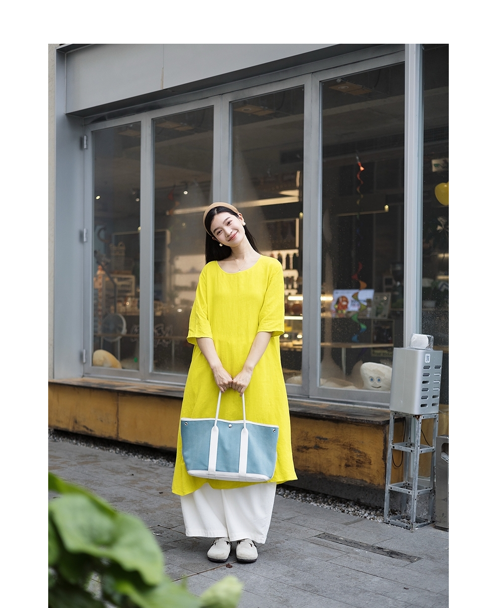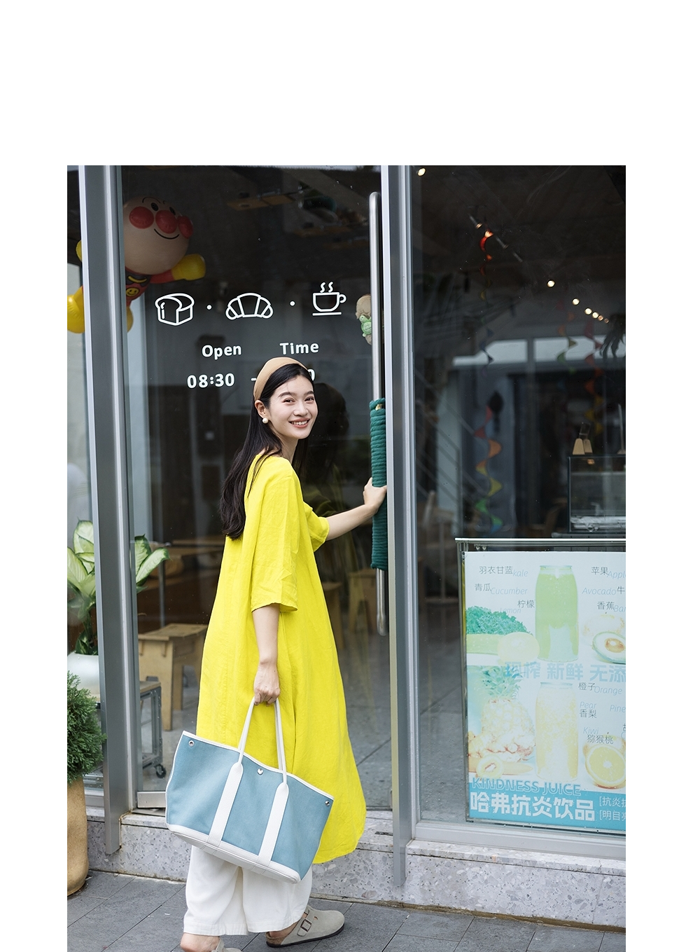 绽放女装552朵/高端加密水果酵素洗亚麻中袖多巴胺连衣裙女度假裙