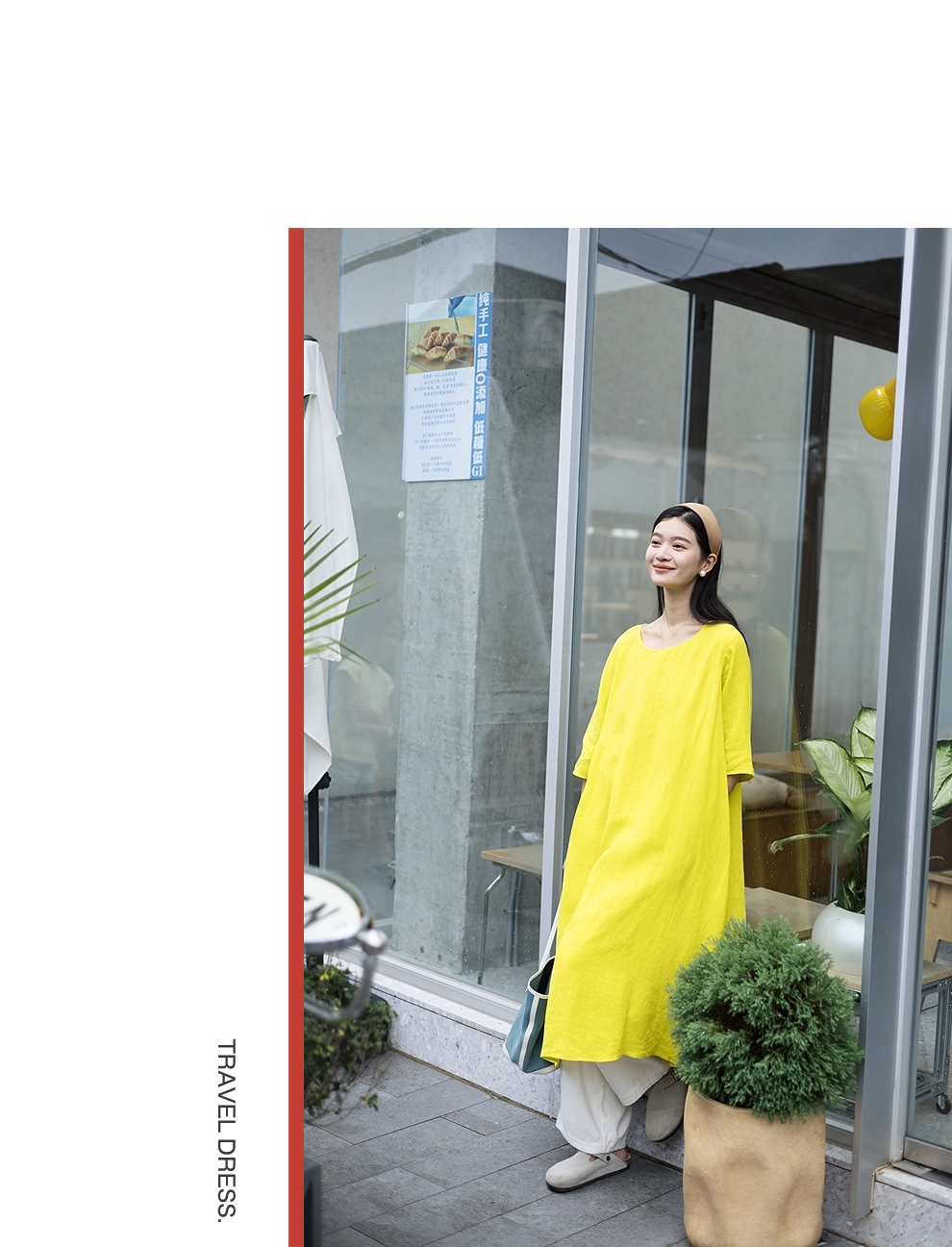 以天然亚麻为载体,融合热烈色彩与自在剪裁为身在城市、心怀远方的女性提供兼具美学与舒适的旅行着装
