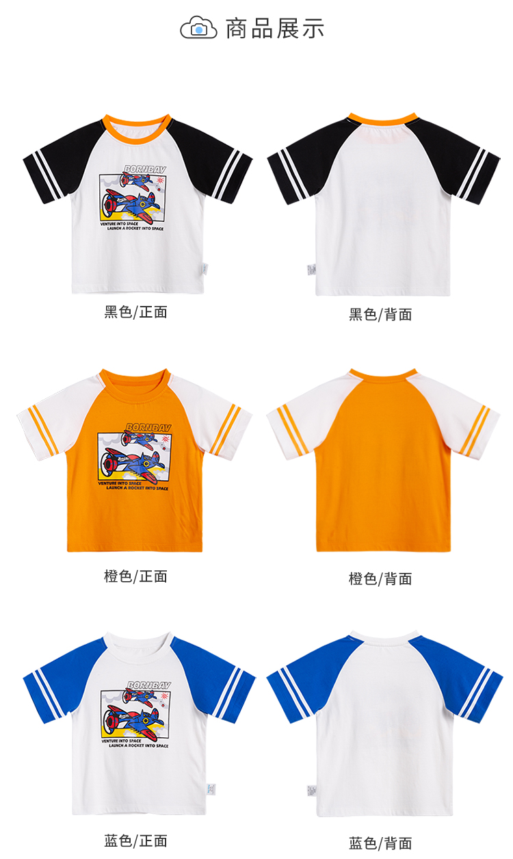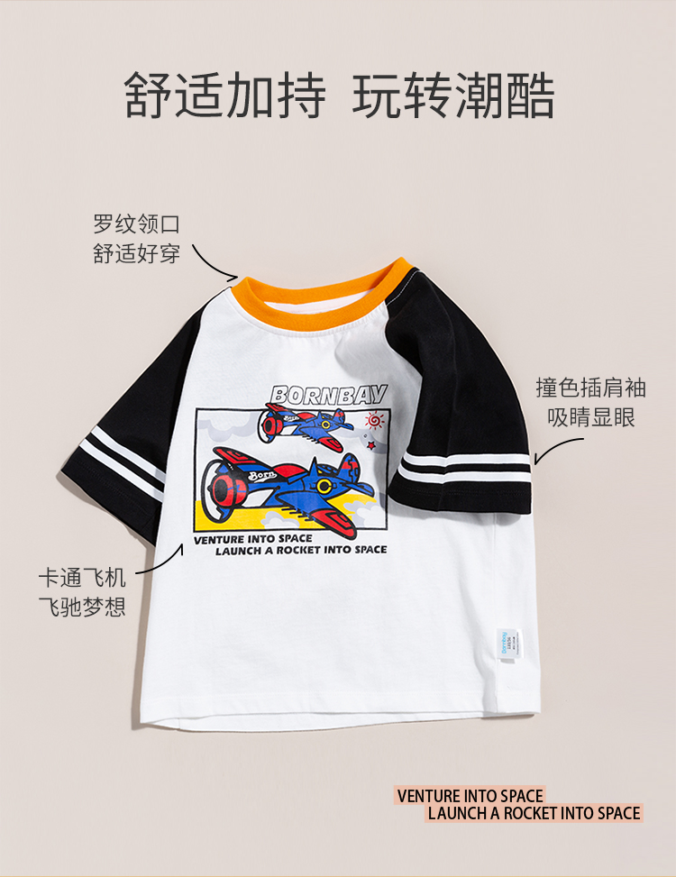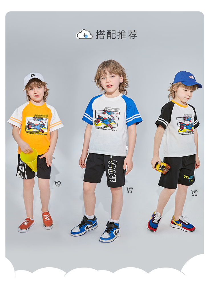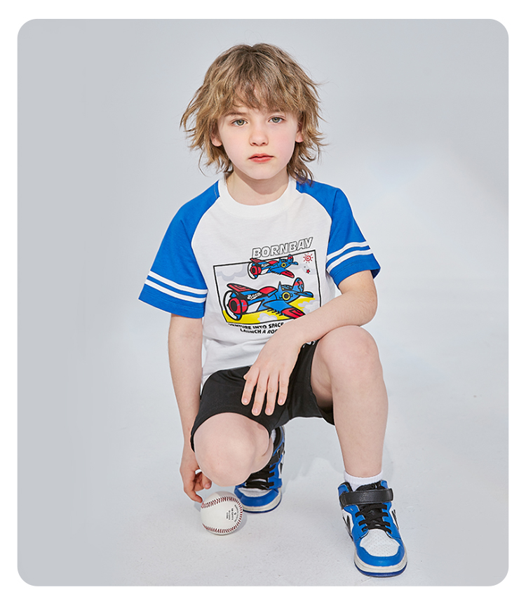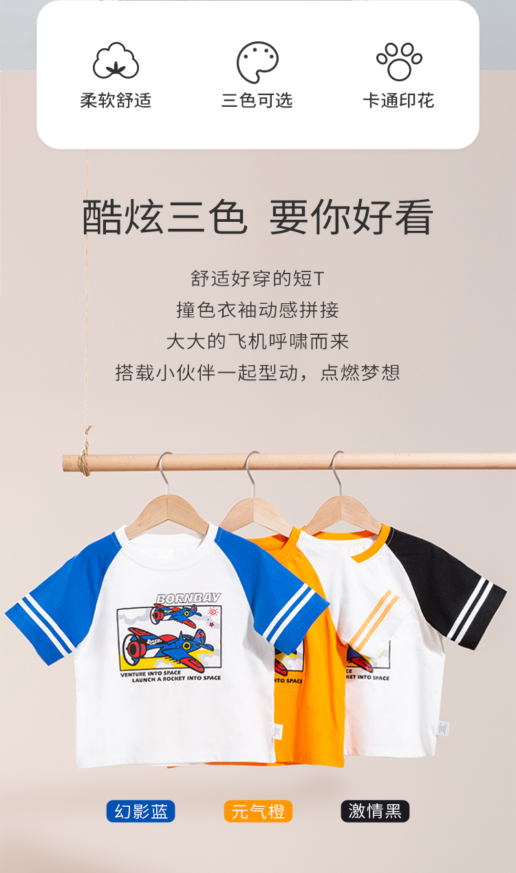 贝贝怡男童短袖T恤夏装宝宝半袖上衣洋气中大童儿童夏季短t衫薄款