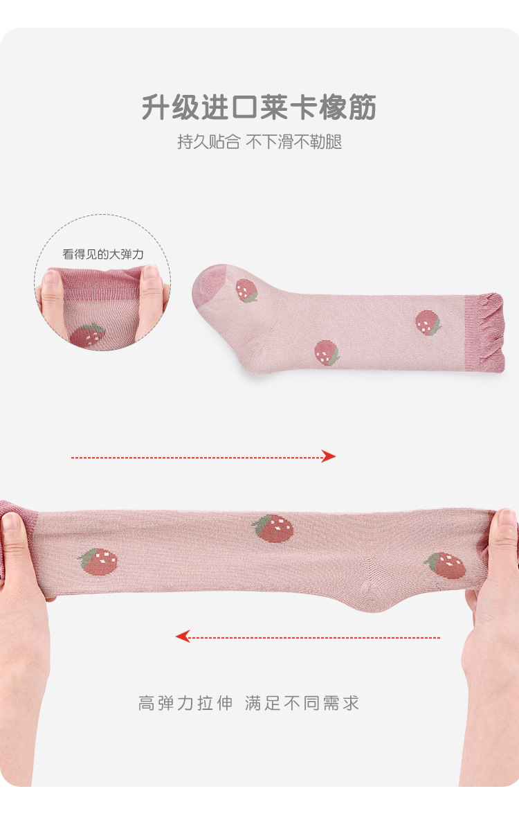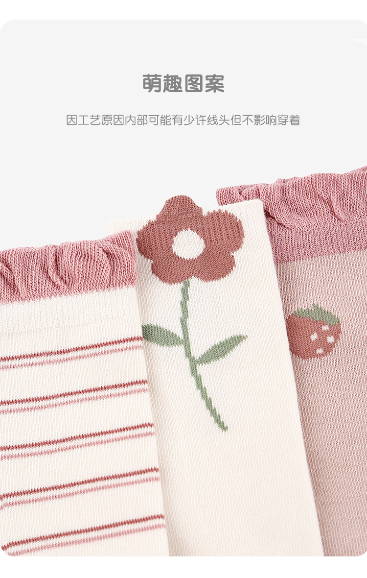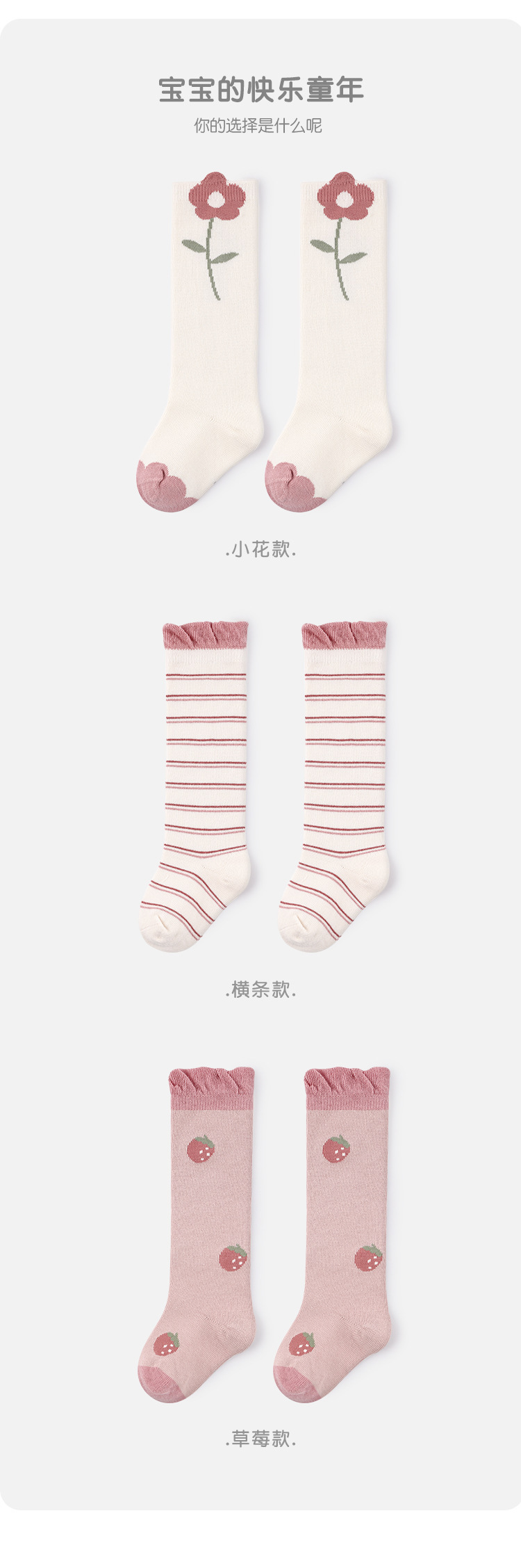 【质感天然 软糯亲肤】婴儿袜子春夏2023精梳棉草莓中筒袜无骨新生儿宝宝袜子