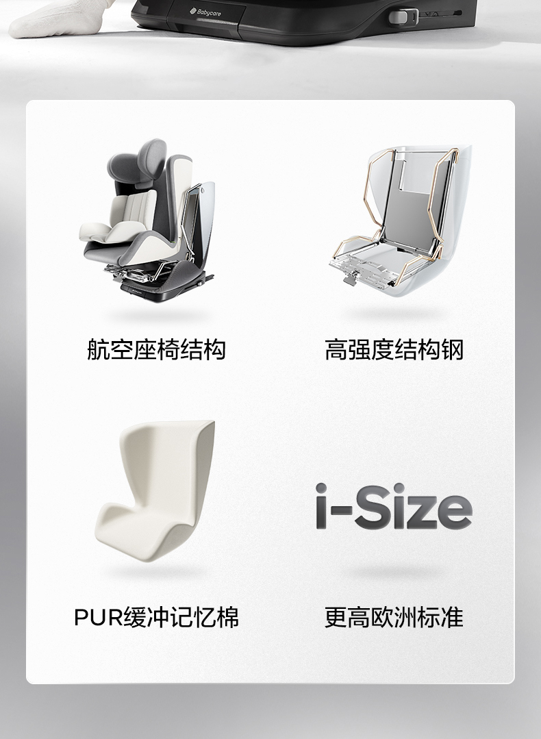 babycare成长儿童安全座椅9M-12岁宝宝婴儿车载汽车用180度旋转