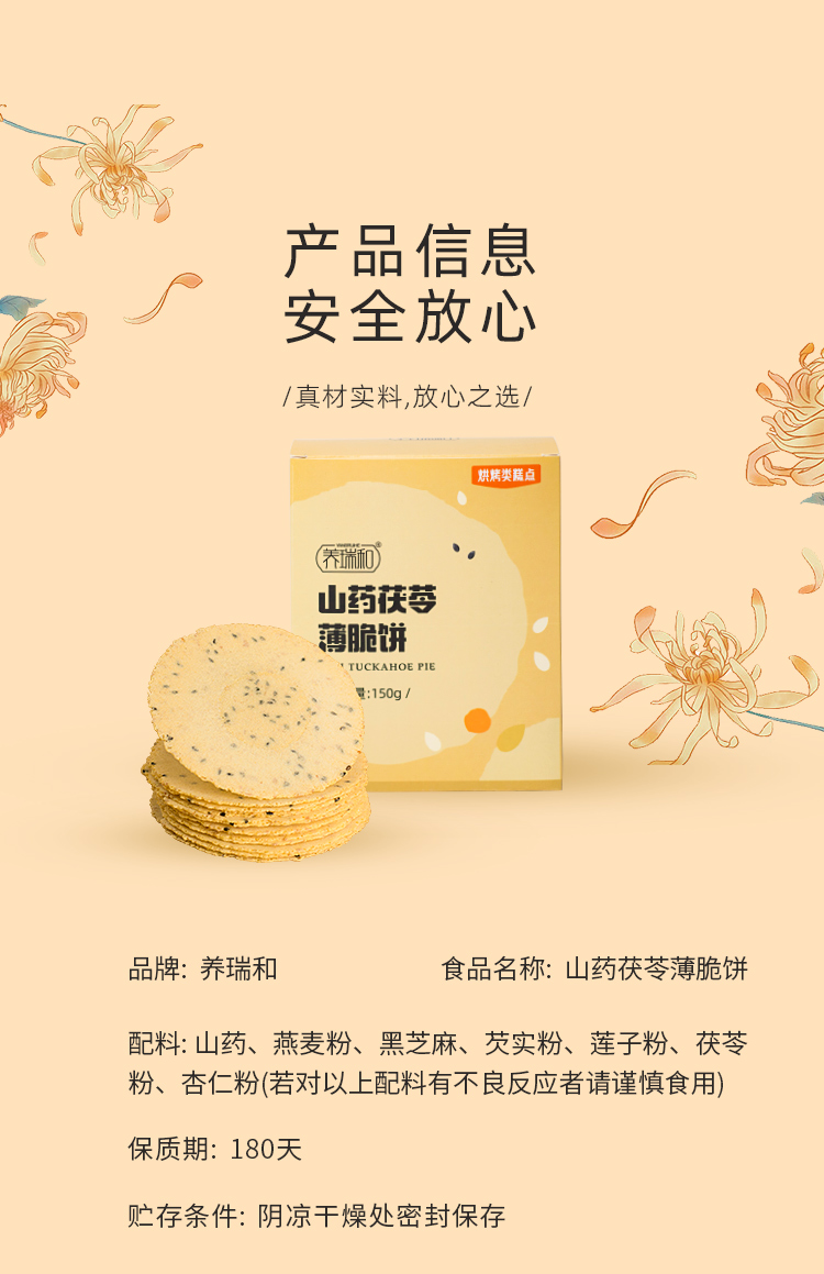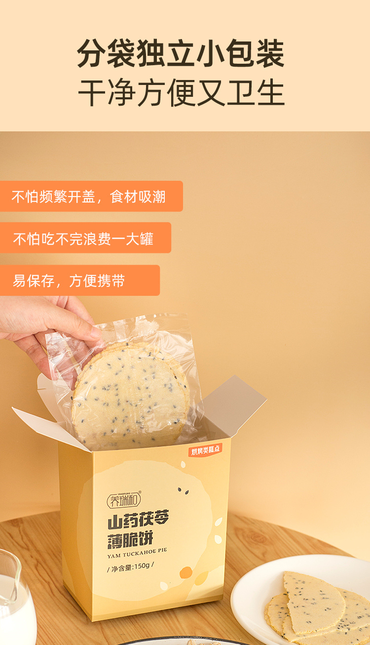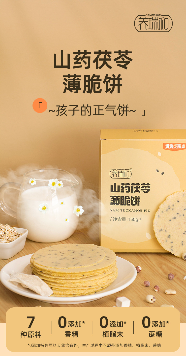 养瑞和丨山药茯苓薄脆饼·150g/盒·独立包装·铁棍山药·茯苓·黑芝麻·燕麦·莲子·杏仁·芡实