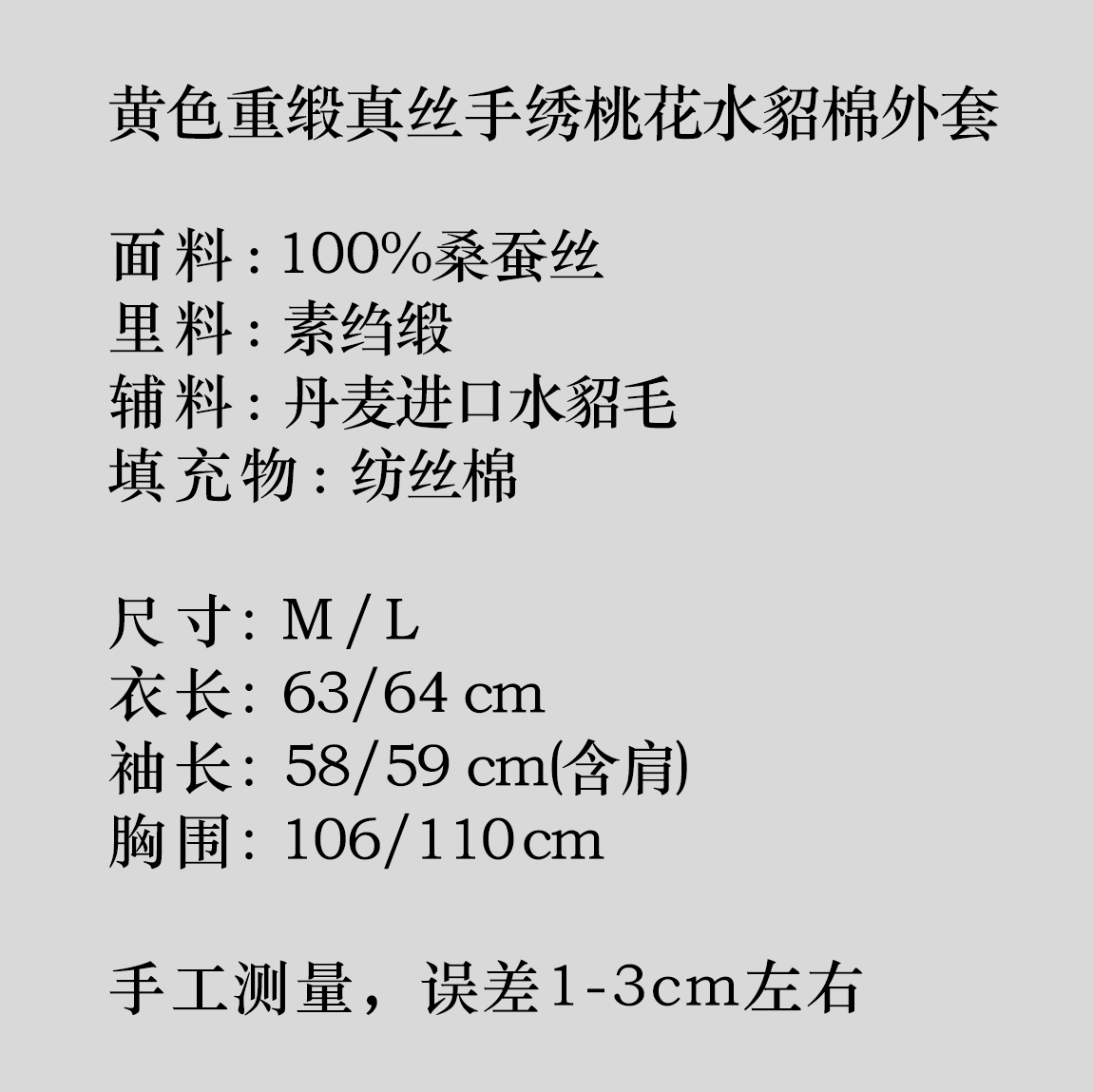 大师系列| 黄色重缎真丝手绣桃花水貂棉外套