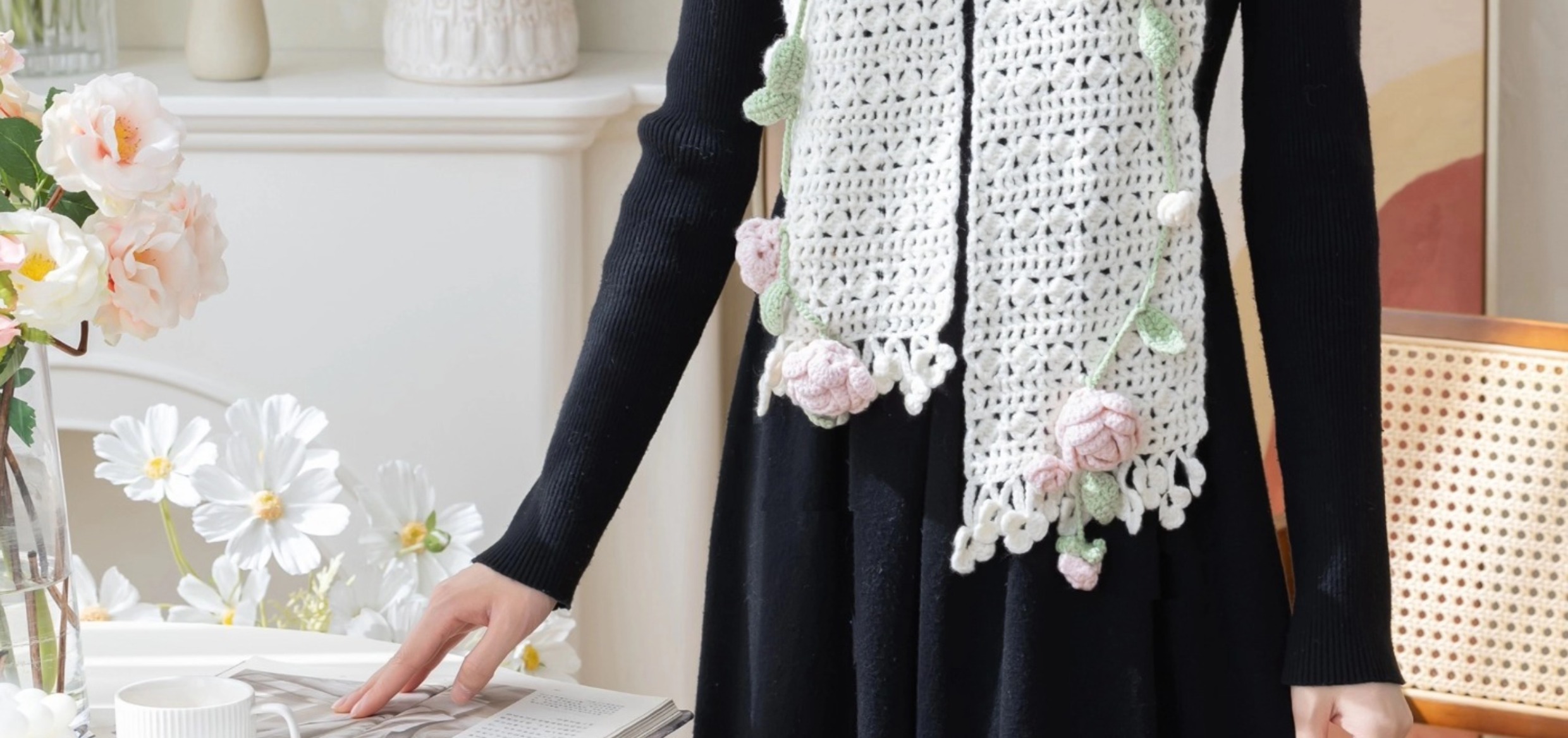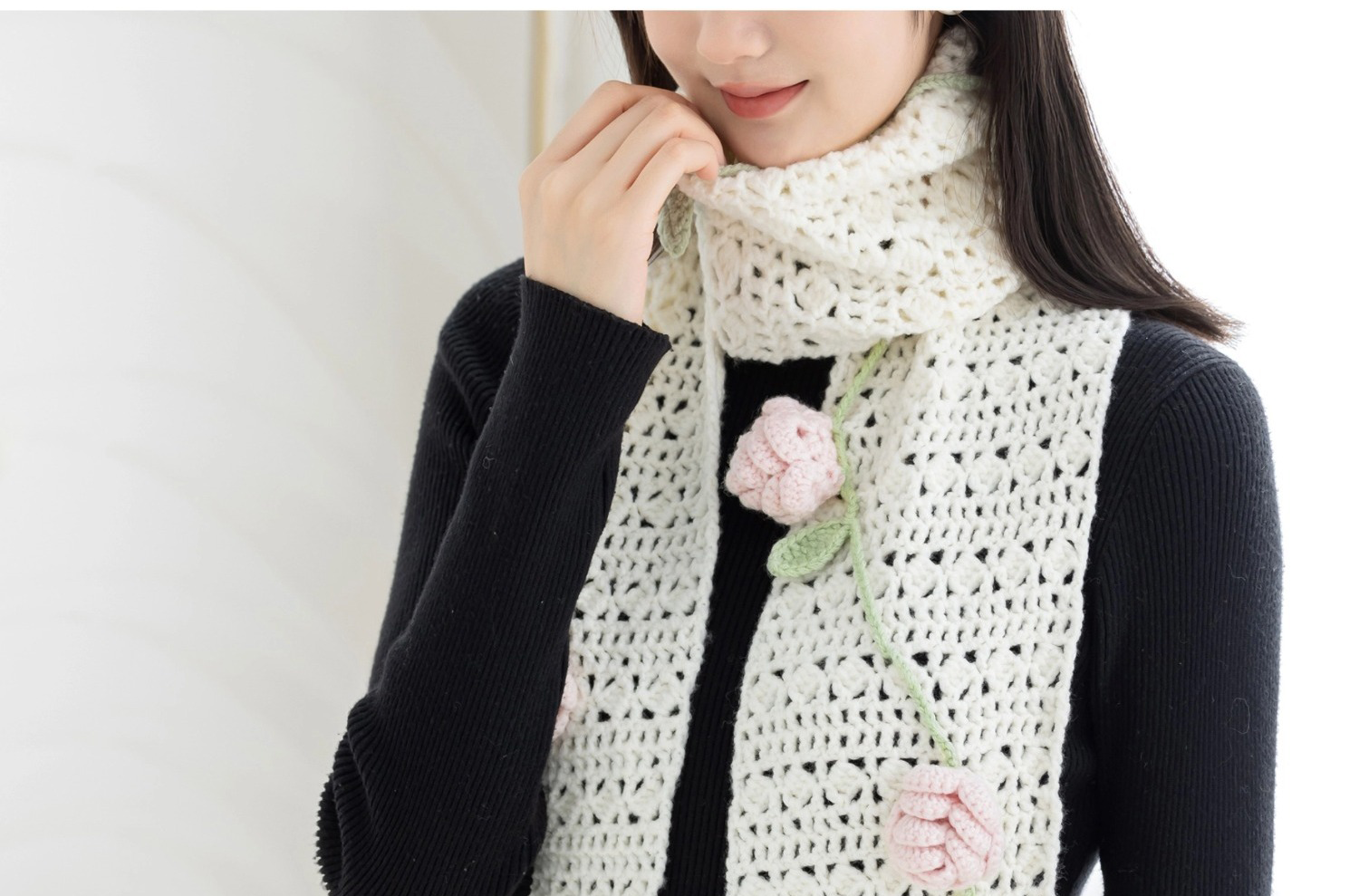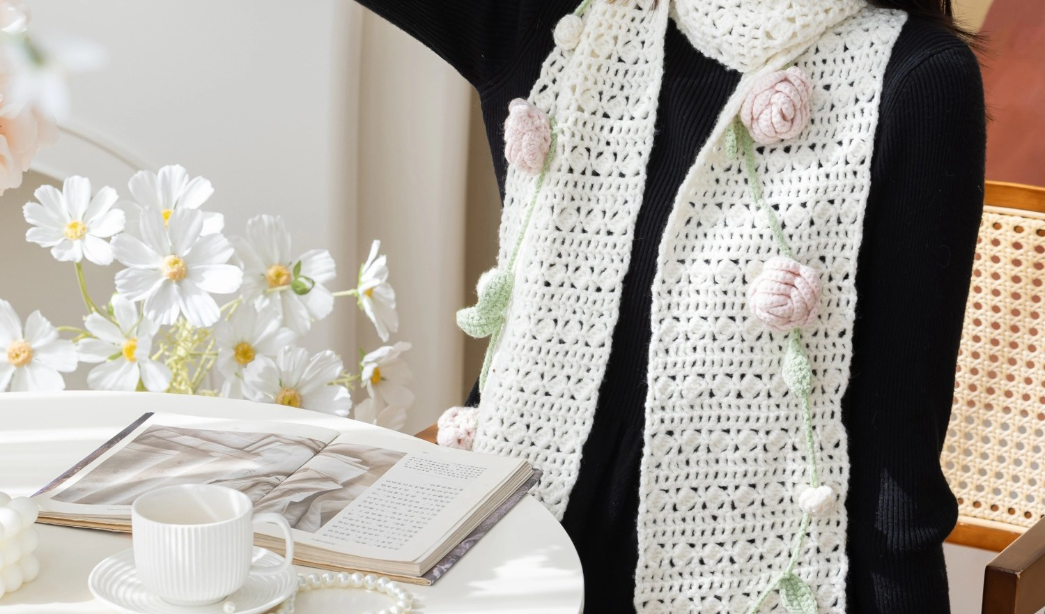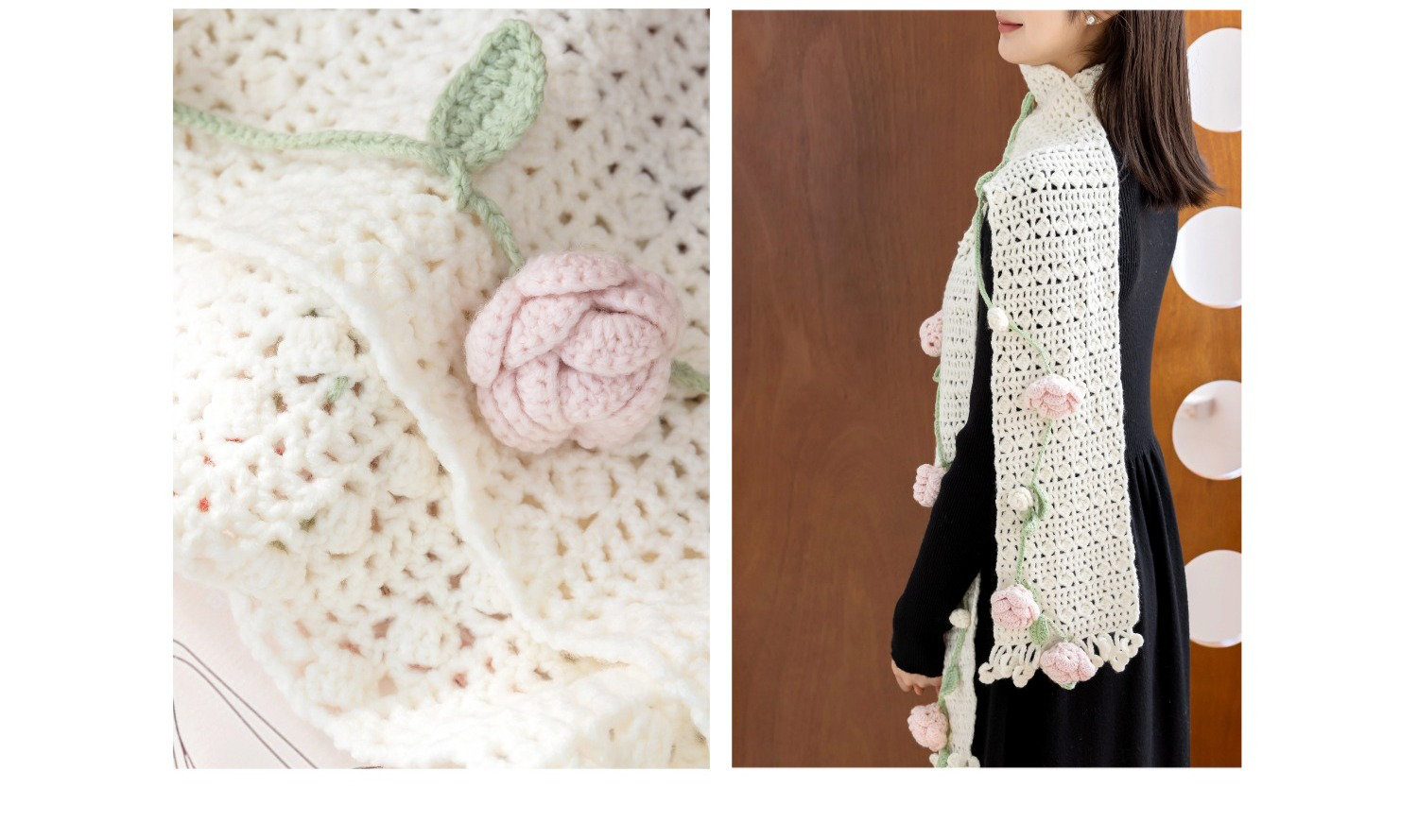 苏苏姐家玫瑰花藤围巾手工diy钩针编织礼物羊毛线毛线团材料包