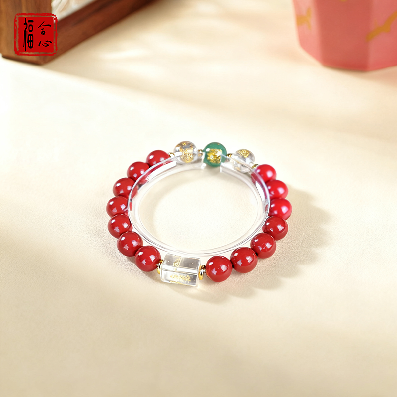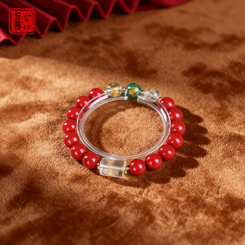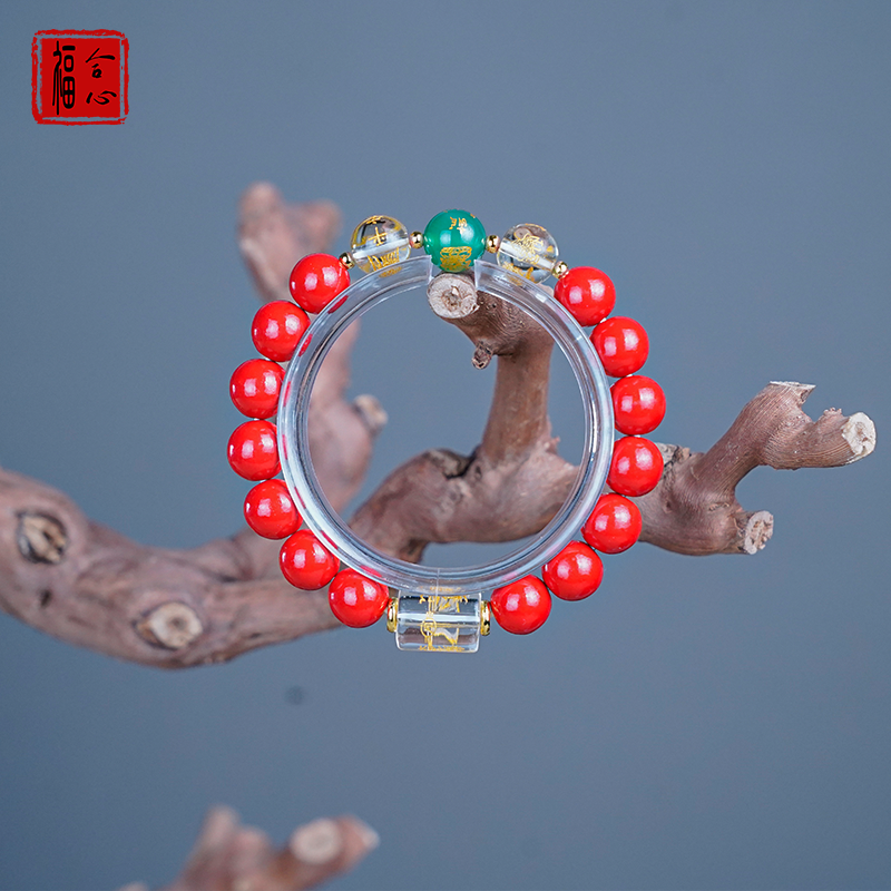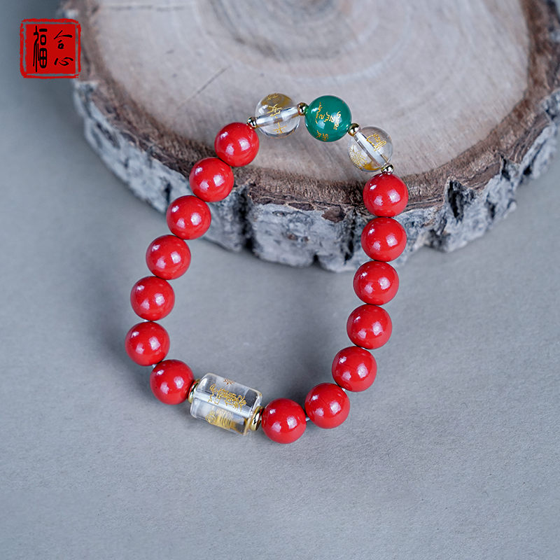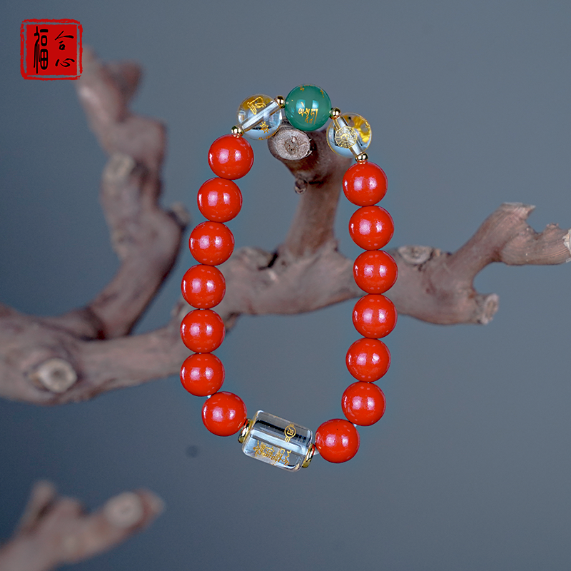 【新年本命年福牌朱砂手链】天然珍zhu紫金砂转运zhu 小福牌手串礼物