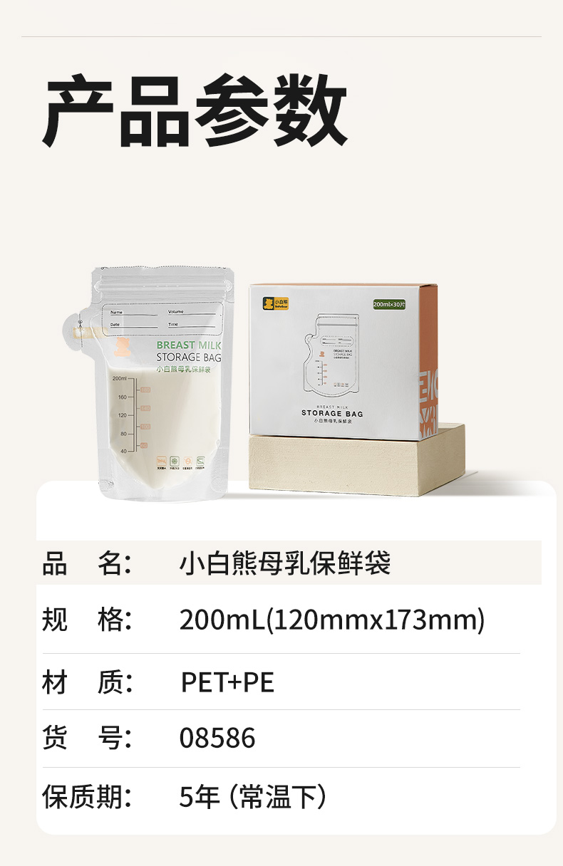 小白熊30片装母乳保鲜袋08586 单片容量200ml